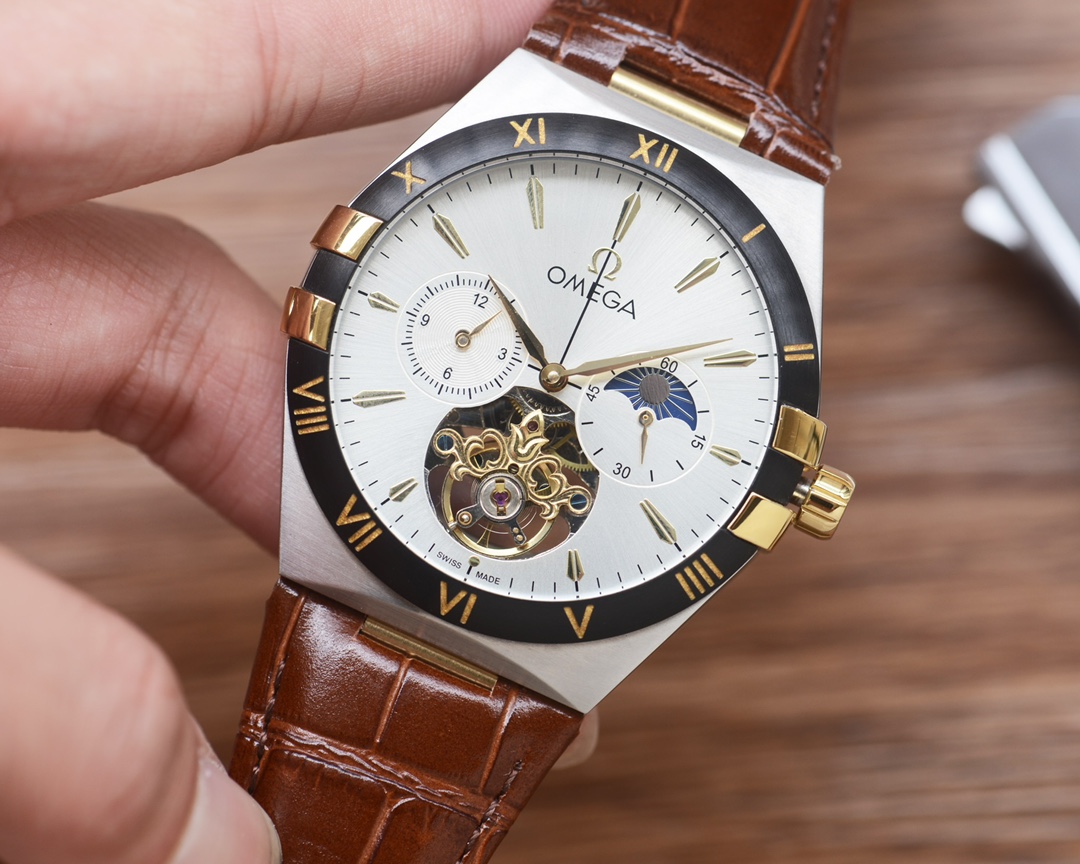 这款手表是AAAAA 1:1 质量 (非常棒). 使用了和原版一模一样的材料. 商标部分也保持了和欧米茄/Omega一样. 图片拍摄是实物手表拍摄, 您所收到的实物保证和我们图片一模一样.