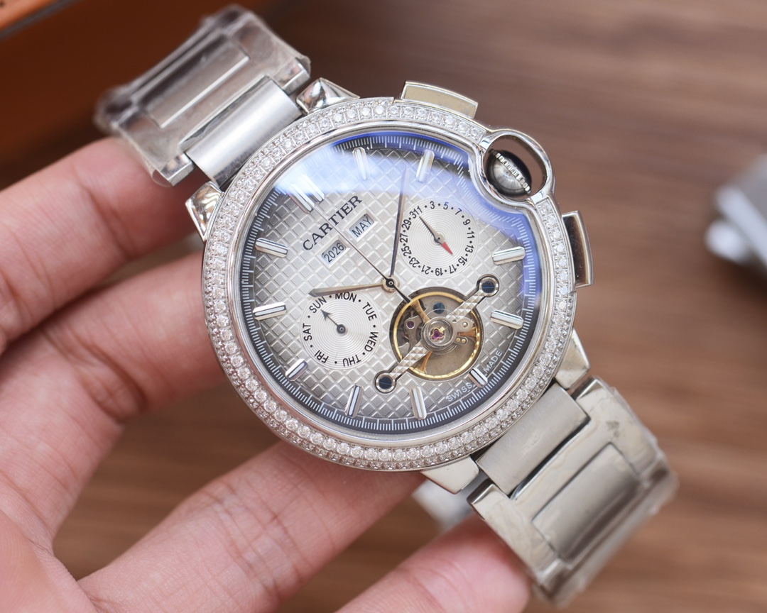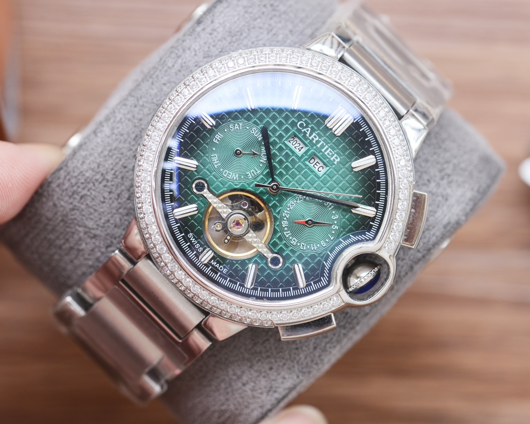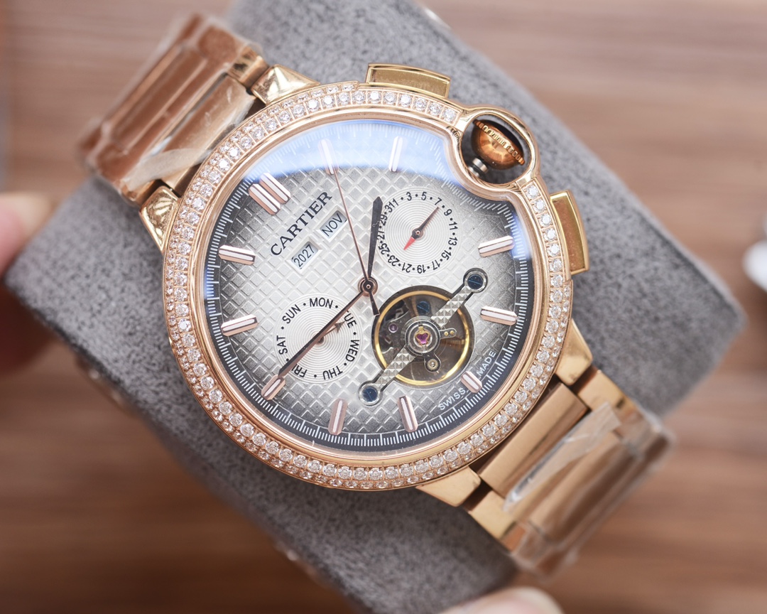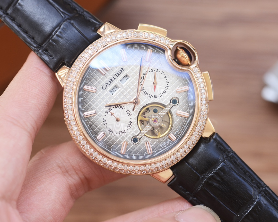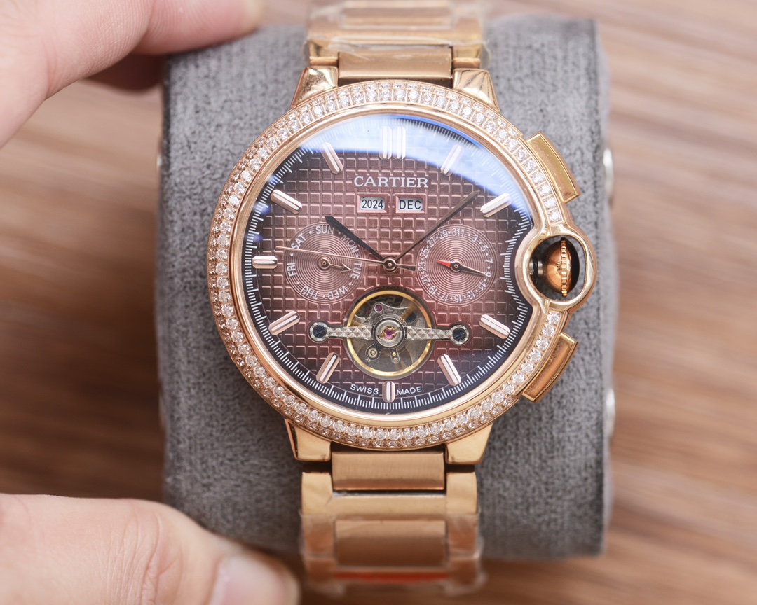 这款手表是AAAAA 1:1 质量 (非常棒). 使用了和原版一模一样的材料. 商标部分也保持了和卡地亚/Cartier一样. 图片拍摄是实物手表拍摄, 您所收到的实物保证和我们图片一模一样.