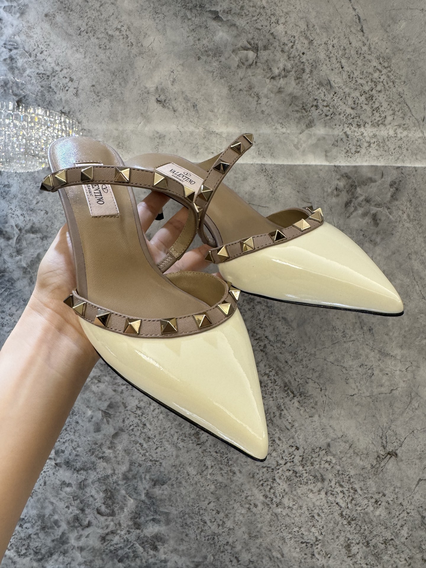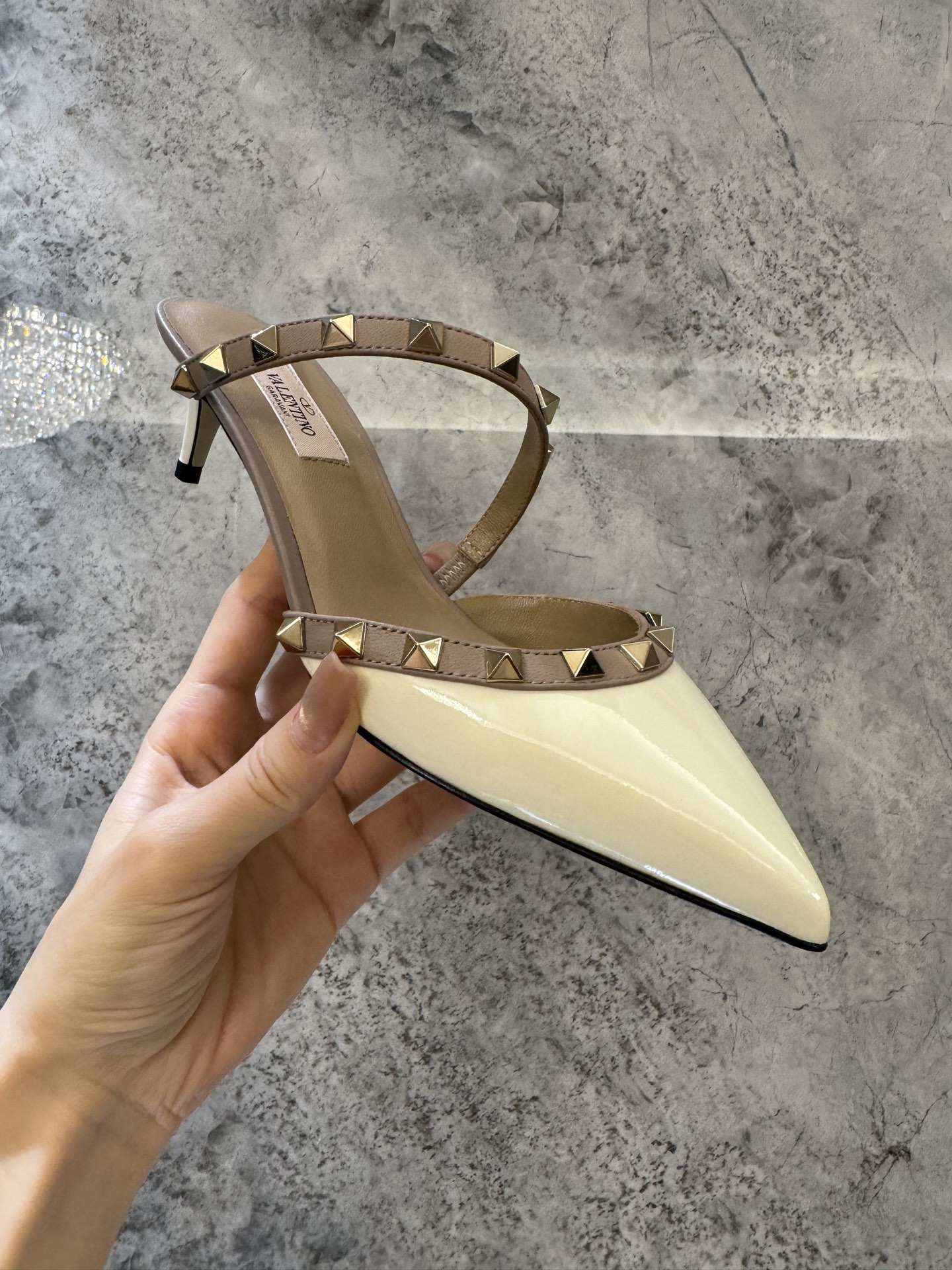 这款鞋子是AAAAA 1:1 质量 (非常棒). 使用了和原版一模一样的材料. 商标部分也保持了和华伦天奴/Valentino一样. 图片拍摄是实物鞋子拍摄, 您所收到的实物保证和我们图片一模一样.