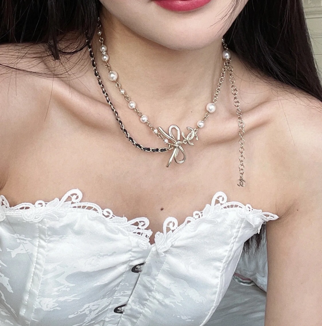 Chanel - diamond & pearl necklace, $ 27