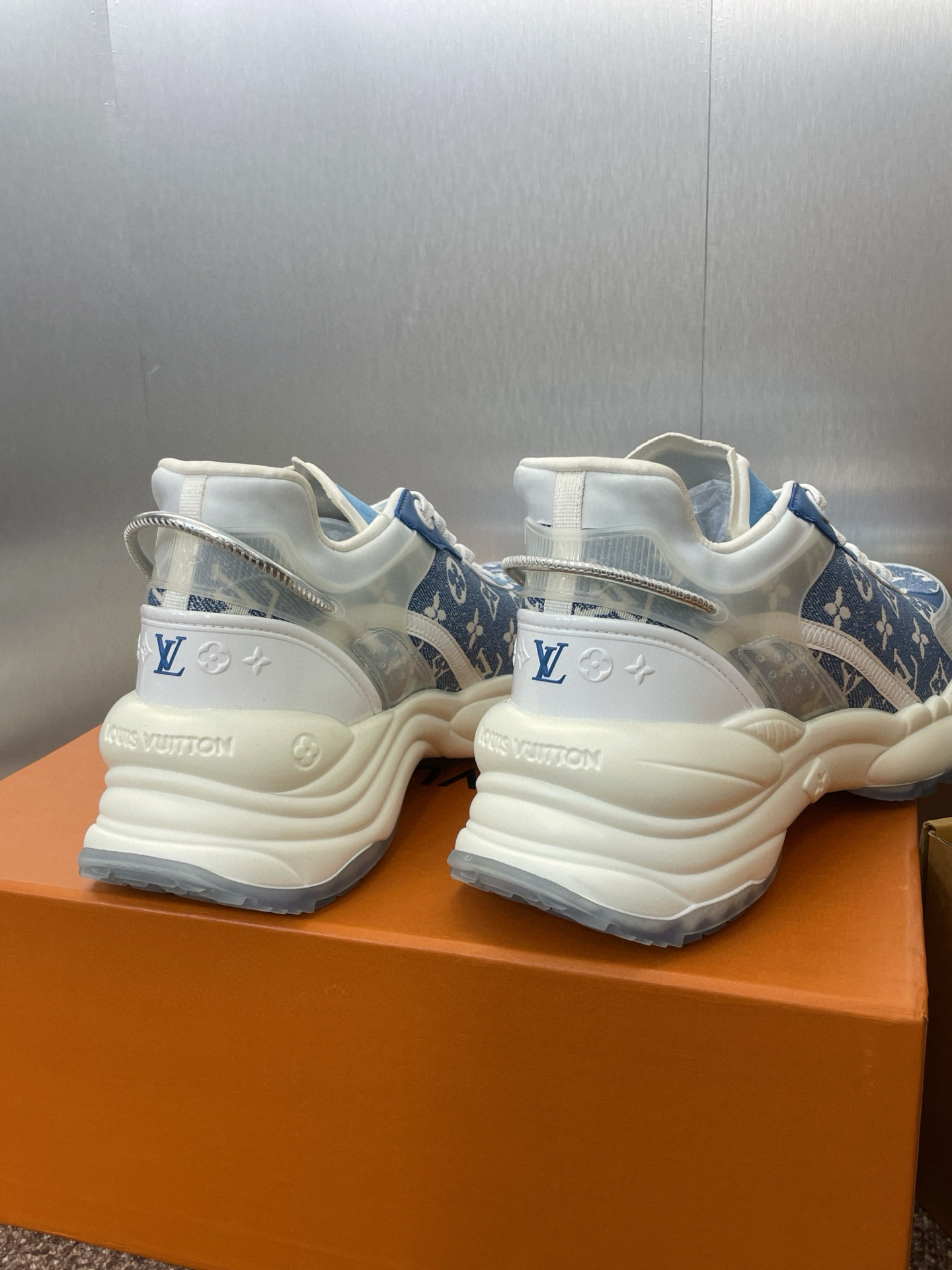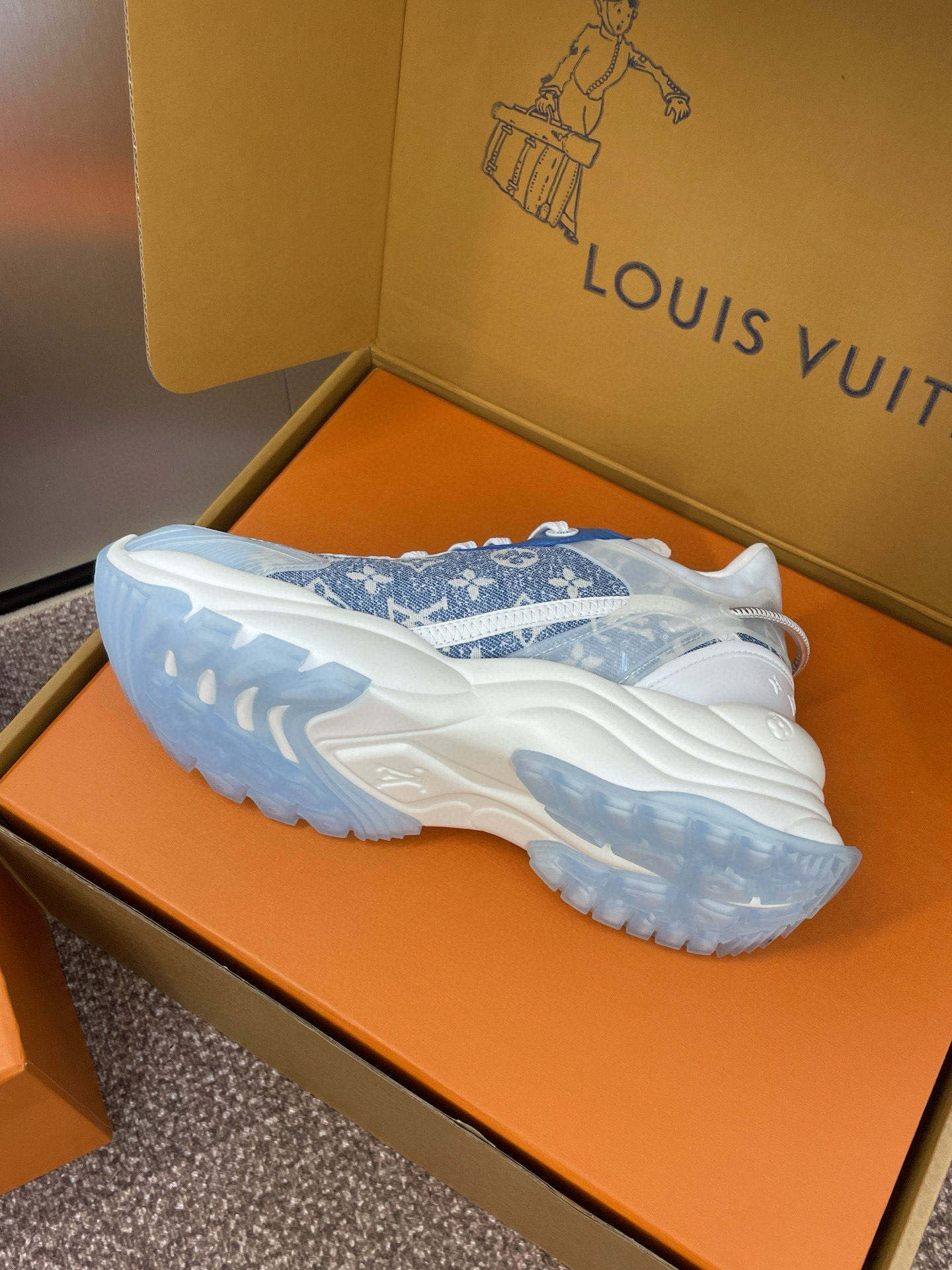 这款鞋子是AAAAA 1:1 质量 (非常棒). 使用了和原版一模一样的材料. 商标部分也保持了和路易威登/Louis Vuitton一样. 图片拍摄是实物鞋子拍摄, 您所收到的实物保证和我们图片一模一样.