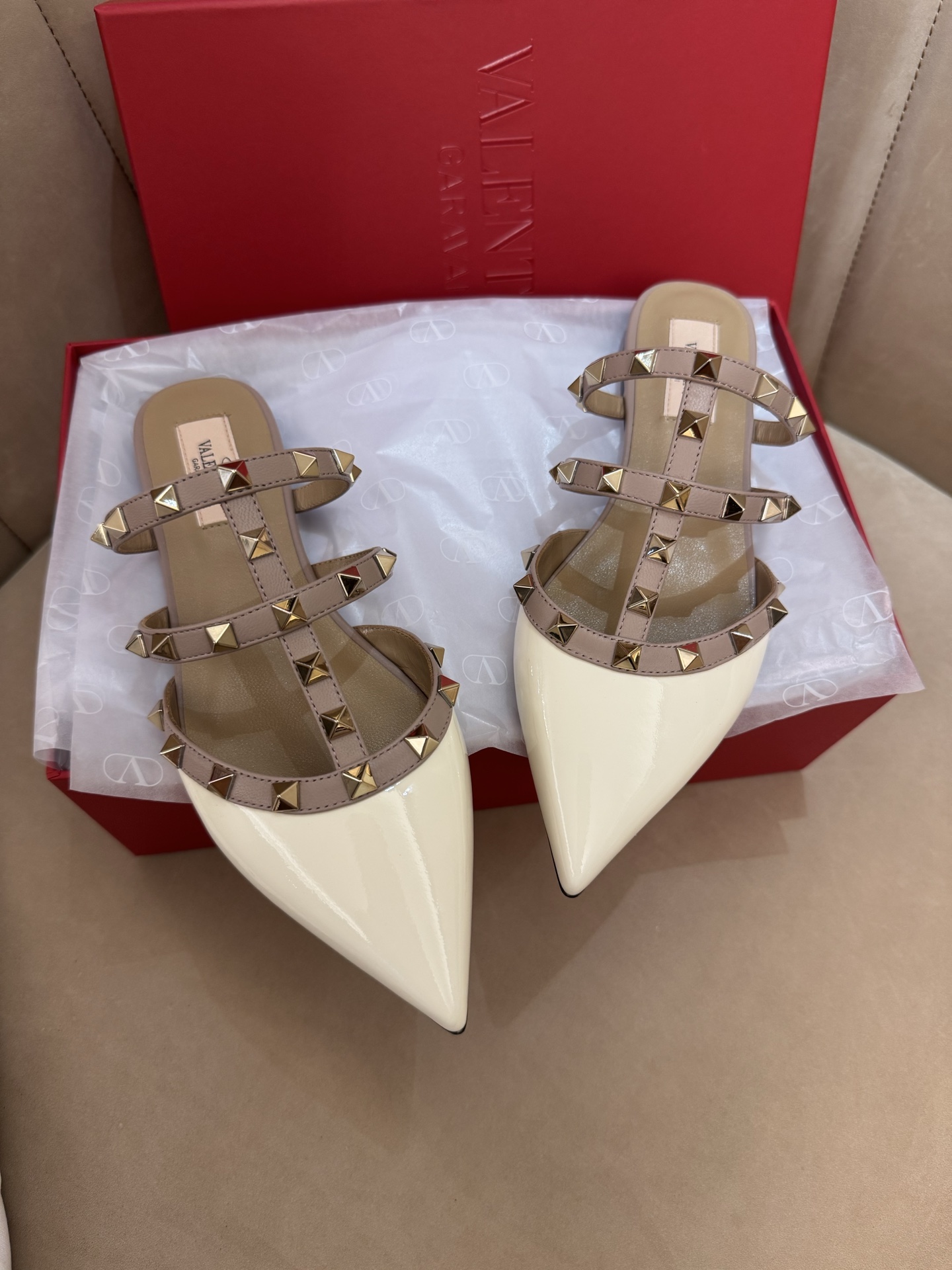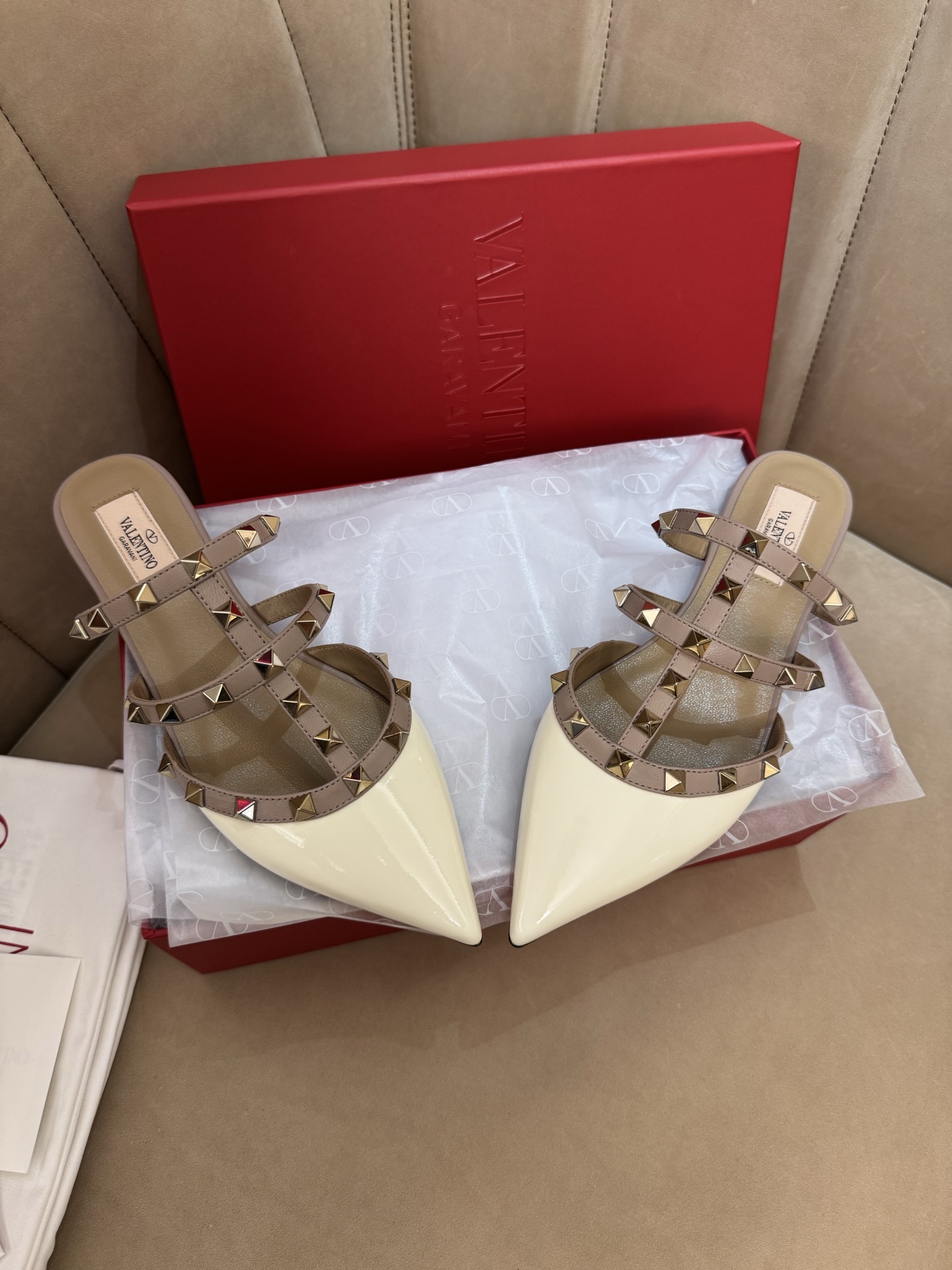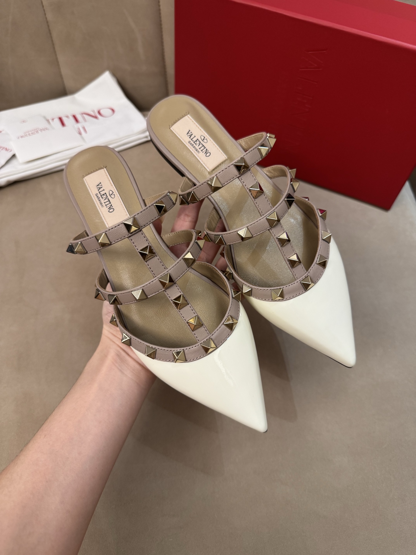 这款鞋子是AAAAA 1:1 质量 (非常棒). 使用了和原版一模一样的材料. 商标部分也保持了和华伦天奴/Valentino一样. 图片拍摄是实物鞋子拍摄, 您所收到的实物保证和我们图片一模一样.