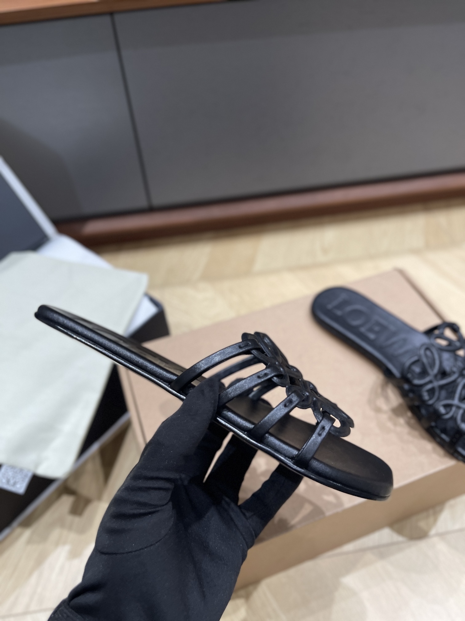 这款鞋子是AAAAA 1:1 质量 (非常棒). 使用了和原版一模一样的材料. 商标部分也保持了和罗意威/Loewe一样. 图片拍摄是实物鞋子拍摄, 您所收到的实物保证和我们图片一模一样.