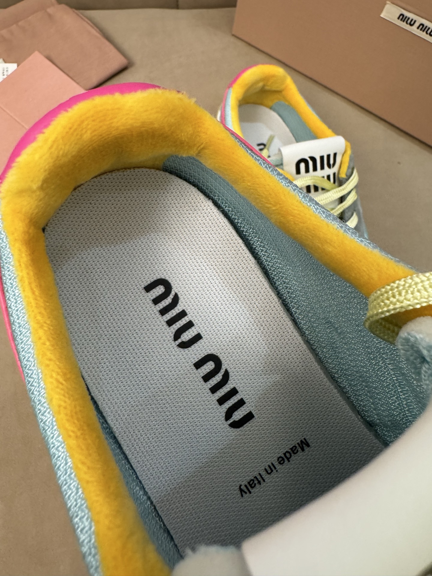 这款鞋子是AAAAA 1:1 质量 (非常棒). 使用了和原版一模一样的材料. 商标部分也保持了和缪缪/Miu Miu一样. 图片拍摄是实物鞋子拍摄, 您所收到的实物保证和我们图片一模一样.