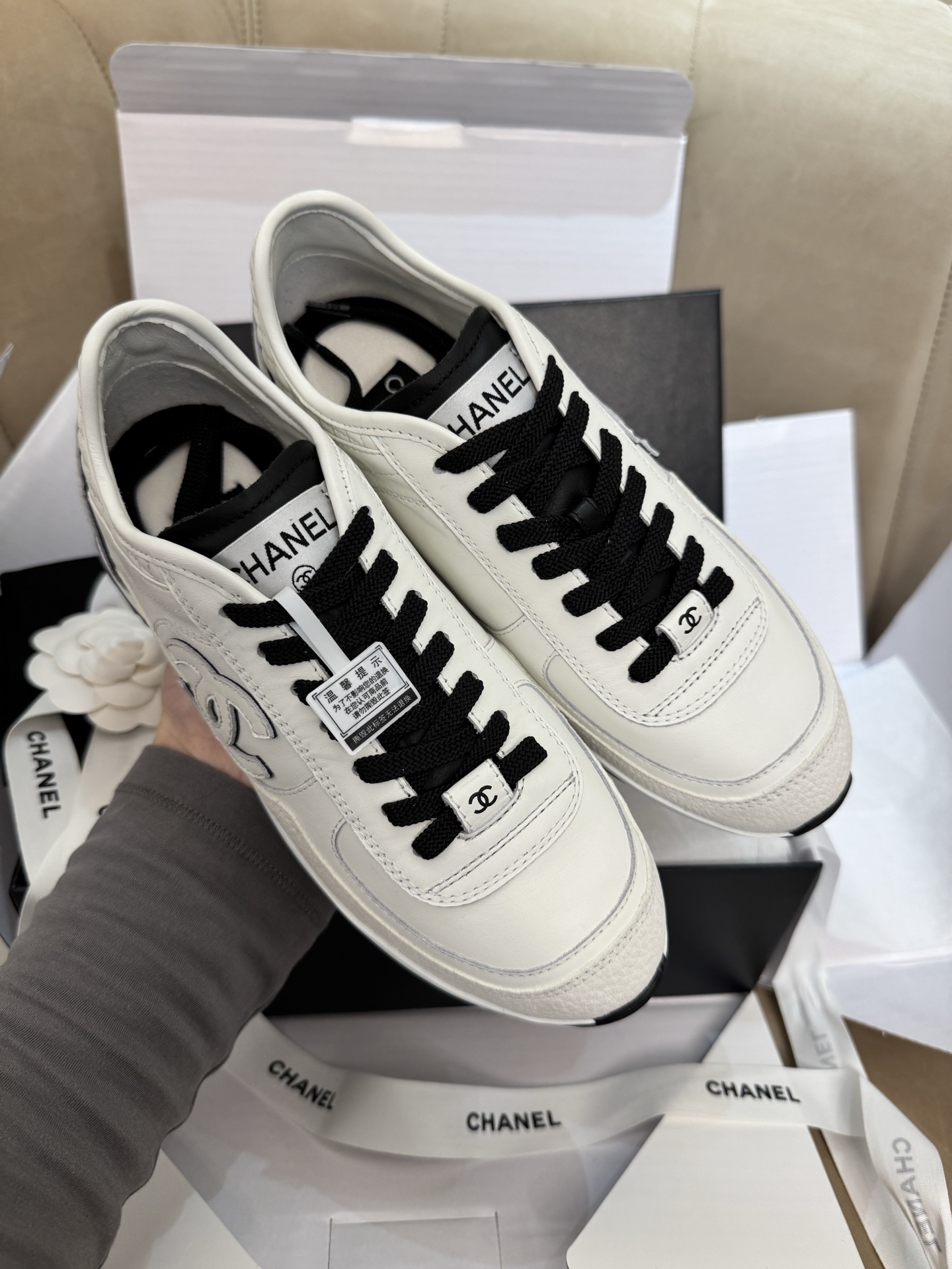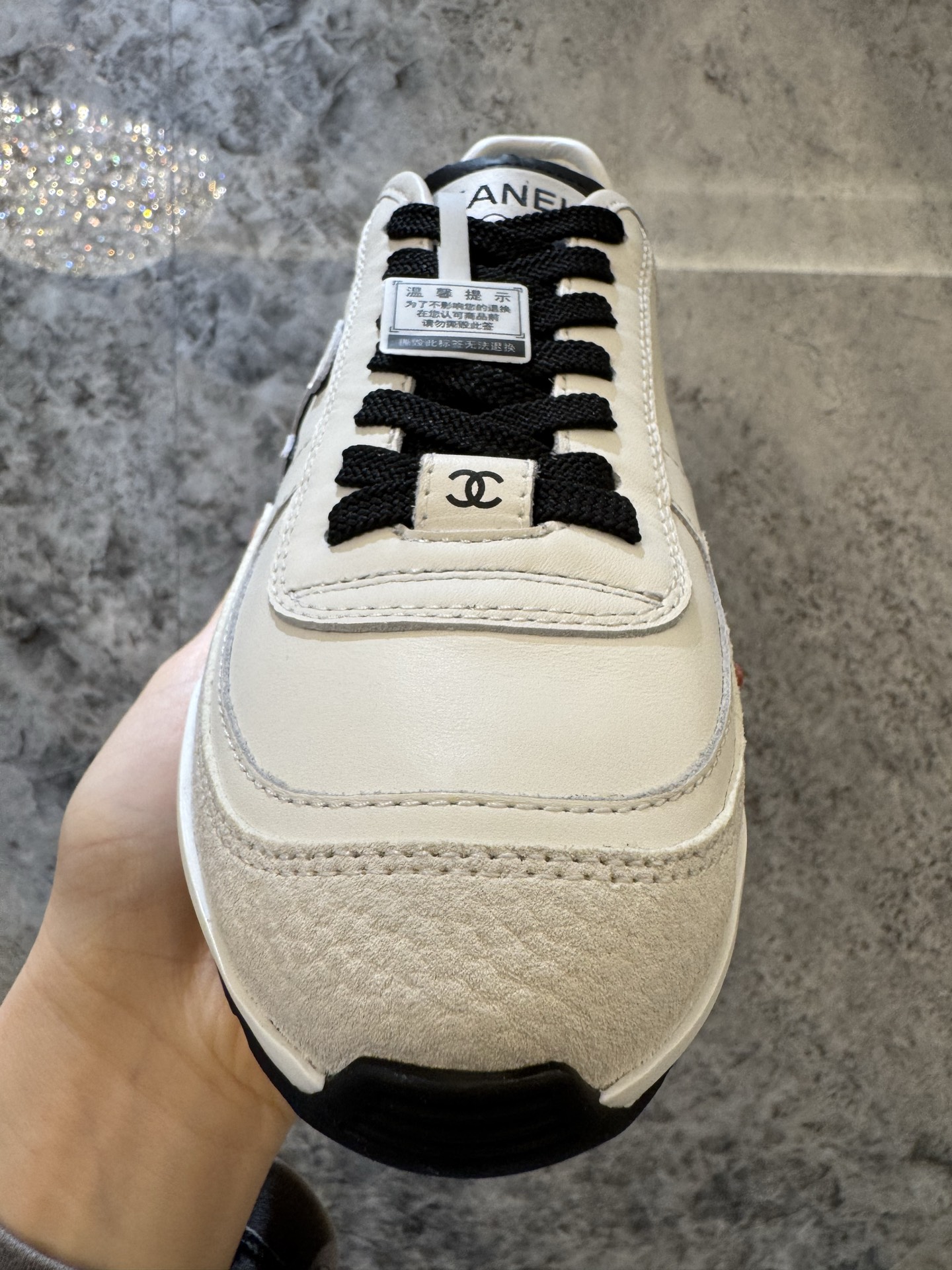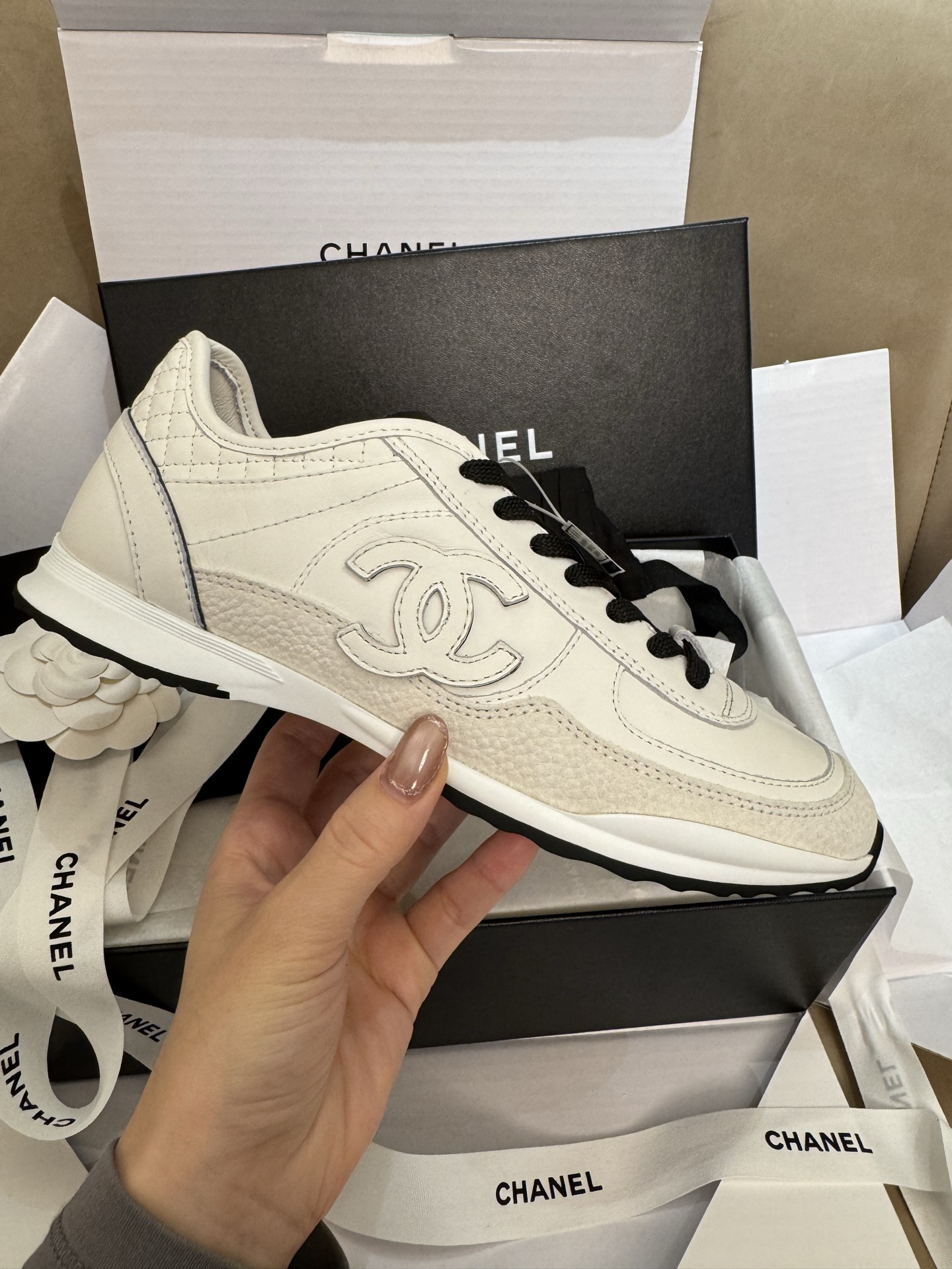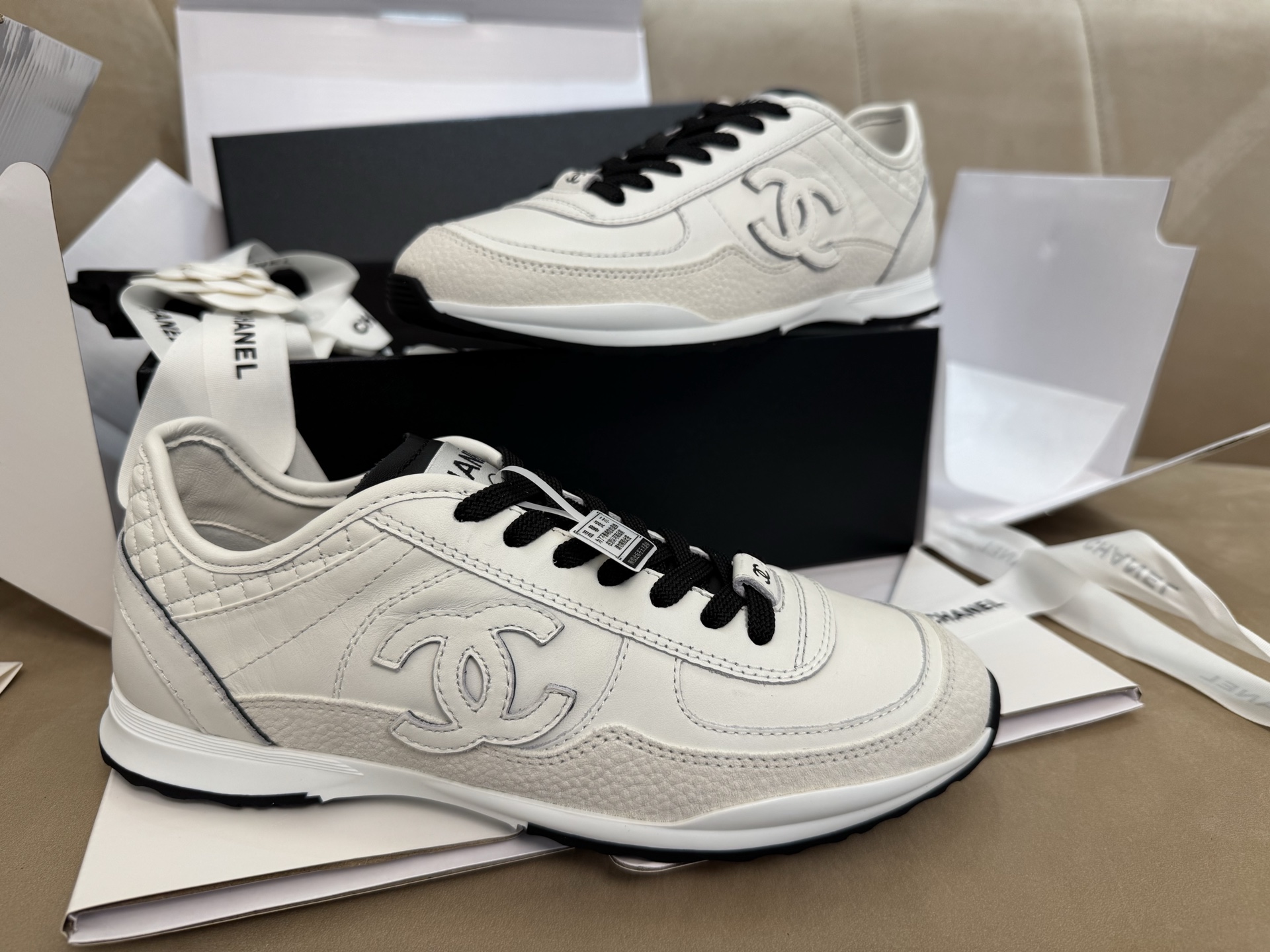 这款鞋子是AAAAA 1:1 质量 (非常棒). 使用了和原版一模一样的材料. 商标部分也保持了和香奈儿/Chanel一样. 图片拍摄是实物鞋子拍摄, 您所收到的实物保证和我们图片一模一样.