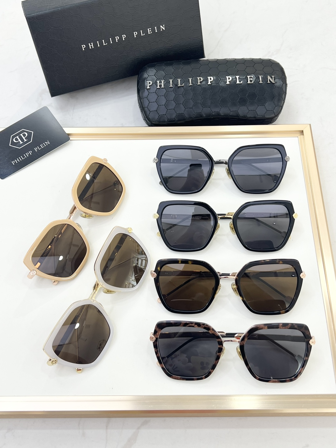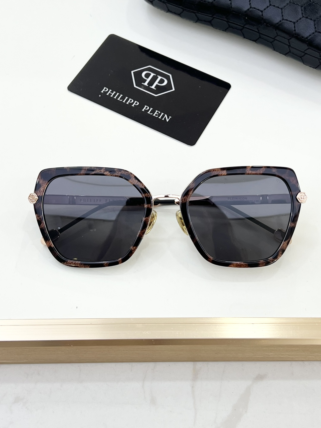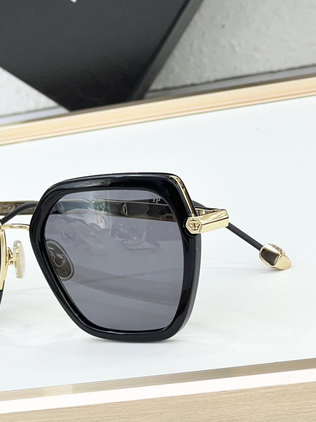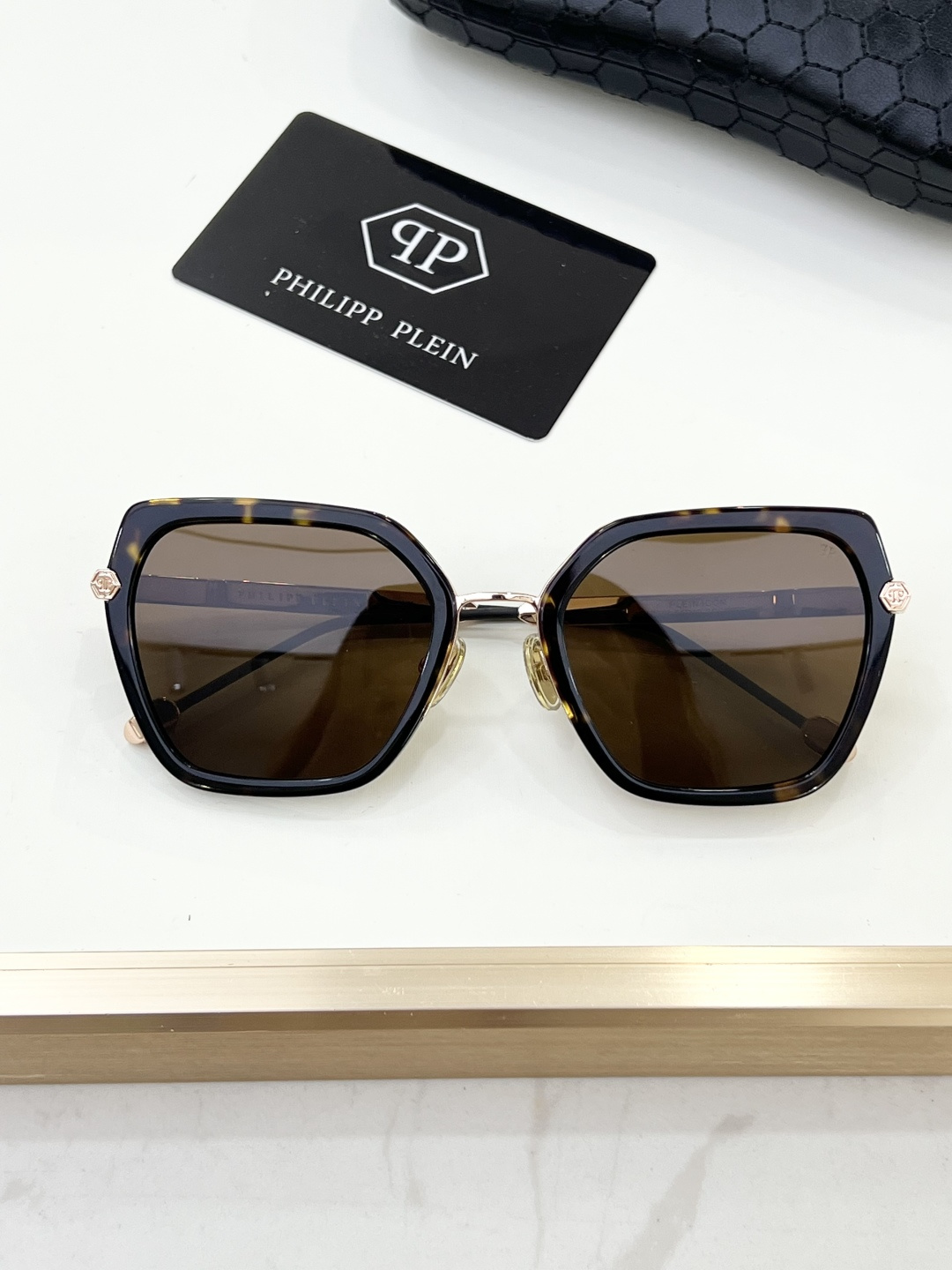 这款太阳眼镜是AAAAA 1:1 质量 (非常棒). 使用了和原版一模一样的材料. 商标部分也保持了和菲利普·普林/Philipp Plein一样. 图片拍摄是实物太阳眼镜拍摄, 您所收到的实物保证和我们图片一模一样.