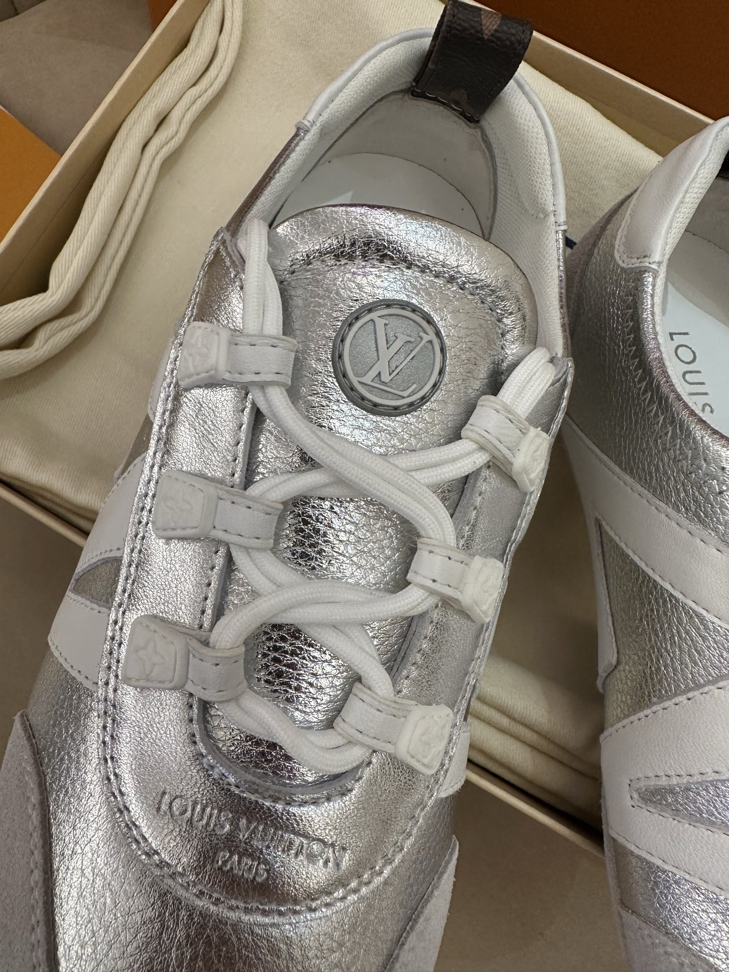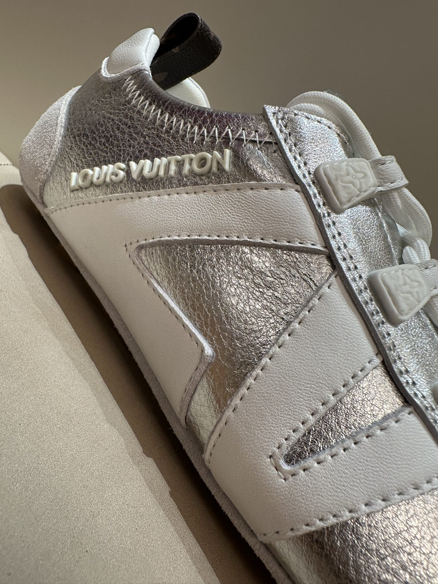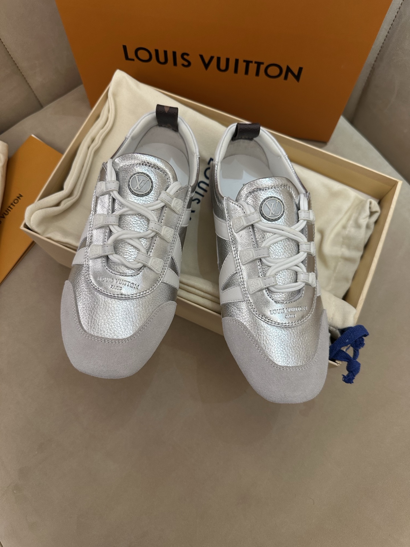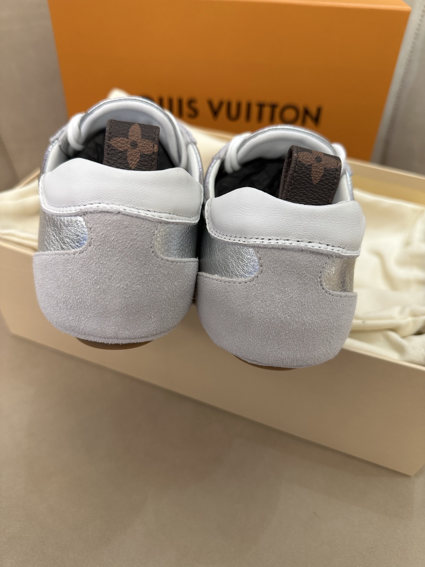 这款鞋子是AAAAA 1:1 质量 (非常棒). 使用了和原版一模一样的材料. 商标部分也保持了和路易威登/Louis Vuitton一样. 图片拍摄是实物鞋子拍摄, 您所收到的实物保证和我们图片一模一样.