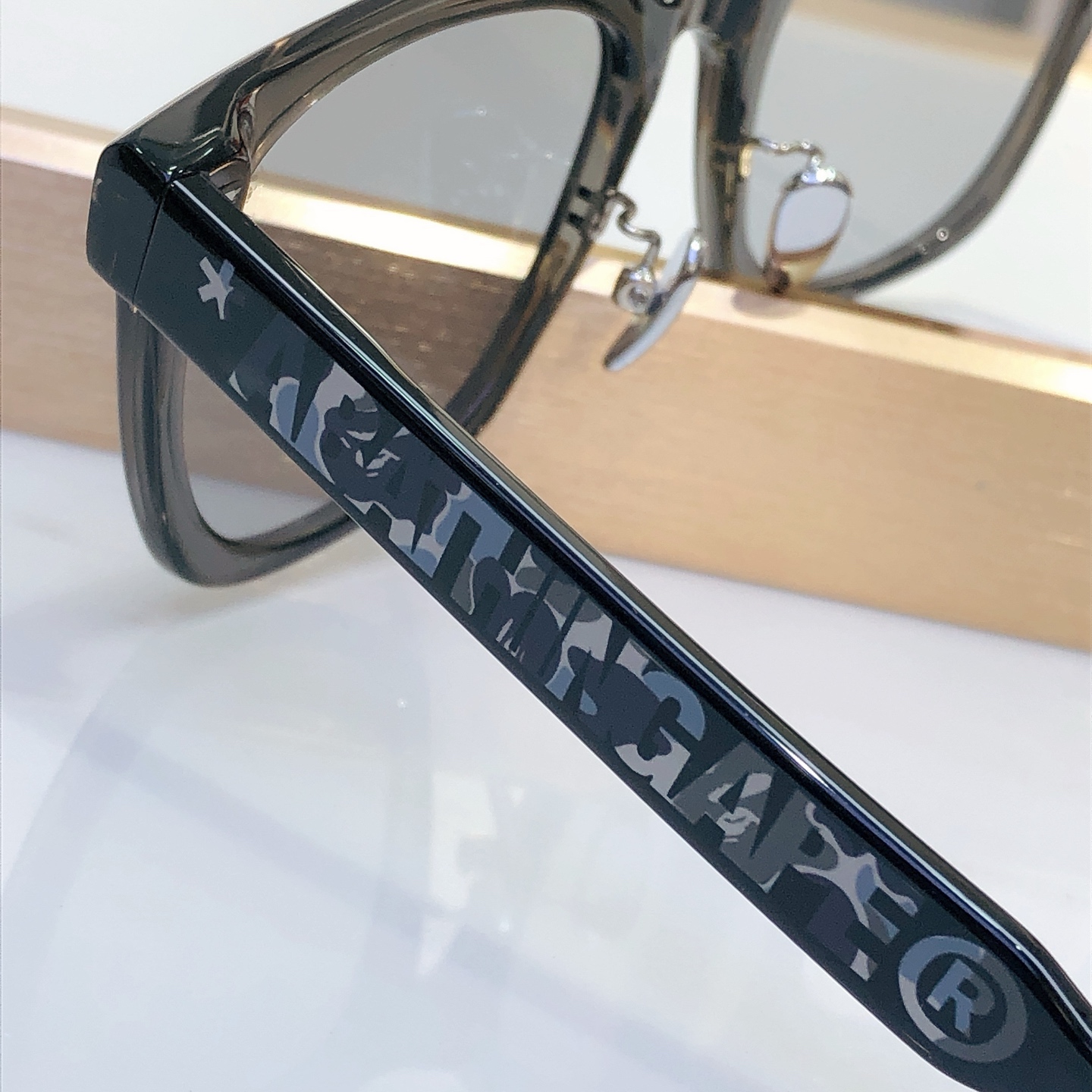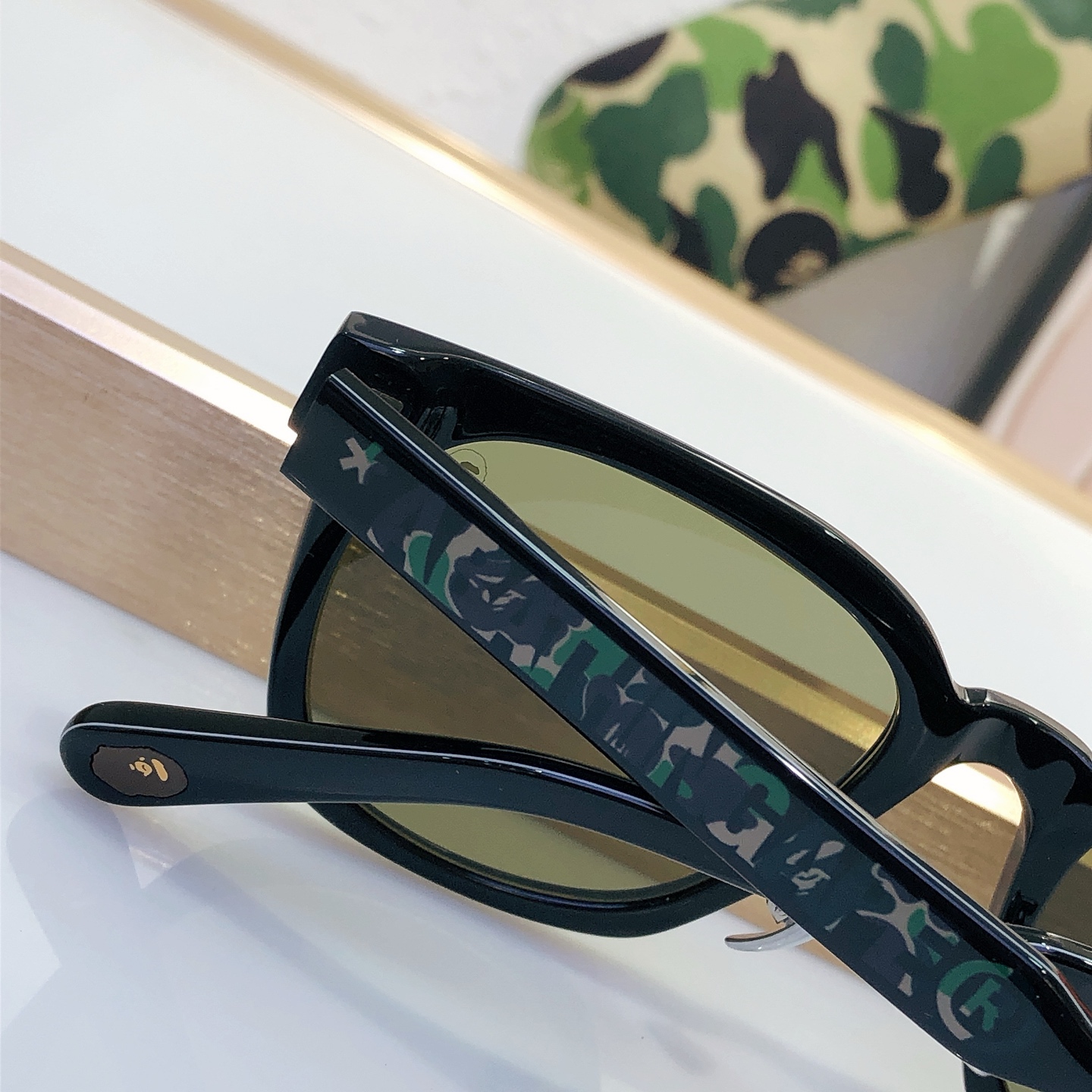 这款太阳眼镜是AAAAA 1:1 质量 (非常棒). 使用了和原版一模一样的材料. 商标部分也保持了和Bape一样. 图片拍摄是实物太阳眼镜拍摄, 您所收到的实物保证和我们图片一模一样.