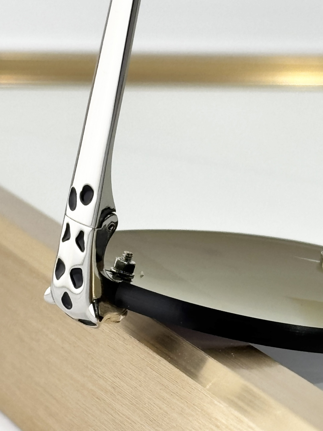 这款太阳眼镜是AAAAA 1:1 质量 (非常棒). 使用了和原版一模一样的材料. 商标部分也保持了和卡地亚/Cartier一样. 图片拍摄是实物太阳眼镜拍摄, 您所收到的实物保证和我们图片一模一样.