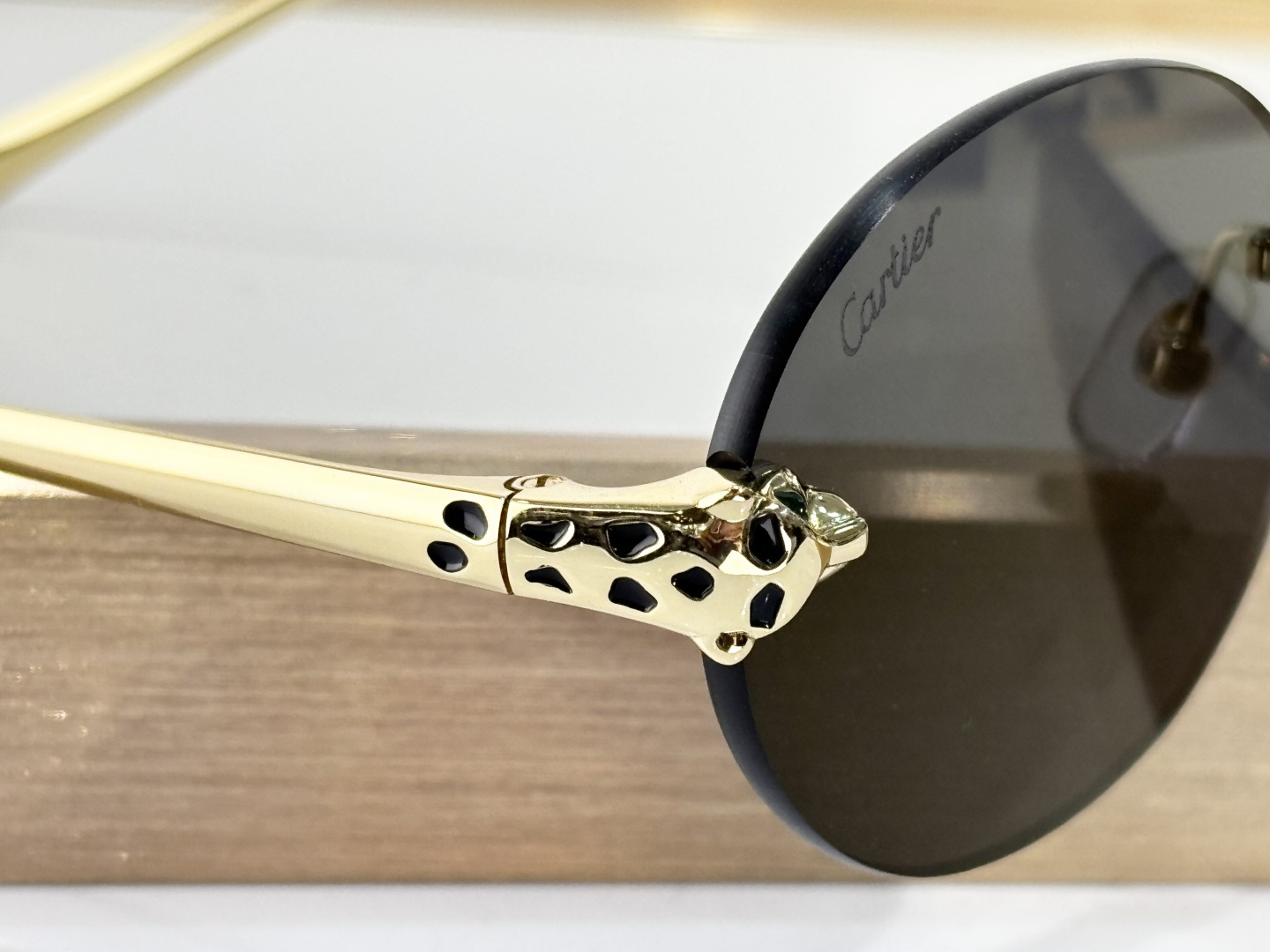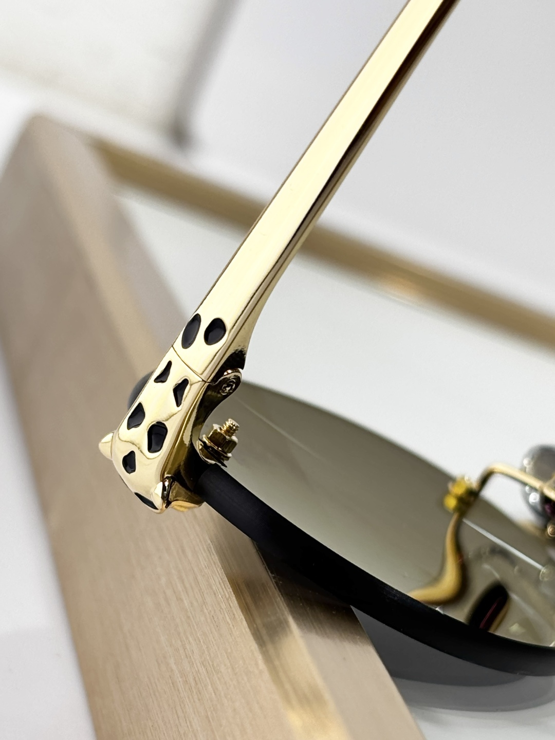 这款太阳眼镜是AAAAA 1:1 质量 (非常棒). 使用了和原版一模一样的材料. 商标部分也保持了和卡地亚/Cartier一样. 图片拍摄是实物太阳眼镜拍摄, 您所收到的实物保证和我们图片一模一样.