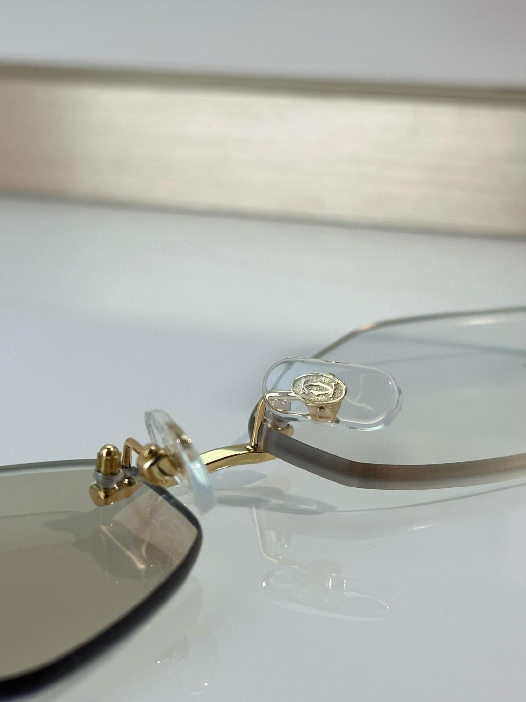 这款太阳眼镜是AAAAA 1:1 质量 (非常棒). 使用了和原版一模一样的材料. 商标部分也保持了和卡地亚/Cartier一样. 图片拍摄是实物太阳眼镜拍摄, 您所收到的实物保证和我们图片一模一样.