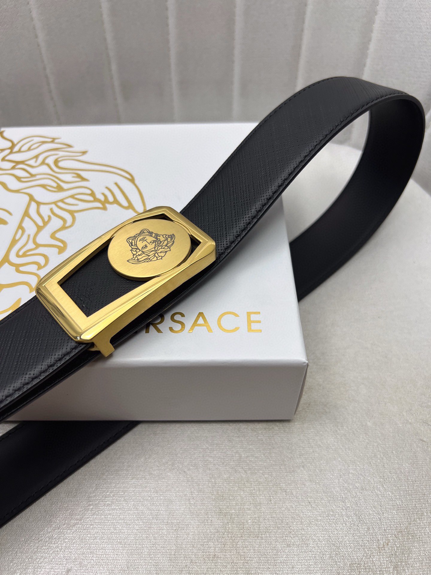 这款皮带是AAAAA 1:1 质量 (非常棒). 使用了和原版一模一样的材料. 商标部分也保持了和范思哲/Versace一样. 图片拍摄是实物皮带拍摄, 您所收到的实物保证和我们图片一模一样.