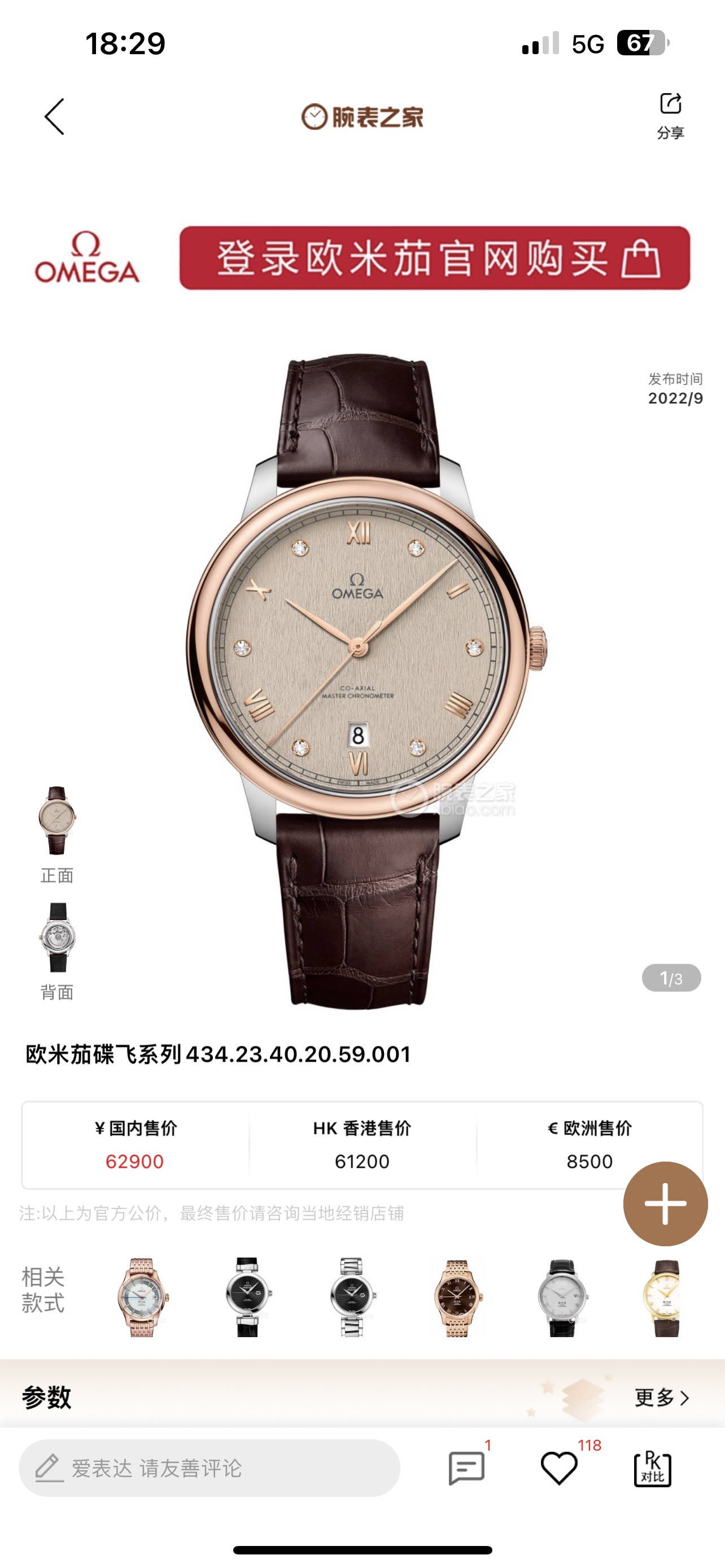这款手表是AAAAA 1:1 质量 (非常棒). 使用了和原版一模一样的材料. 商标部分也保持了和欧米茄/Omega一样. 图片拍摄是实物手表拍摄, 您所收到的实物保证和我们图片一模一样.