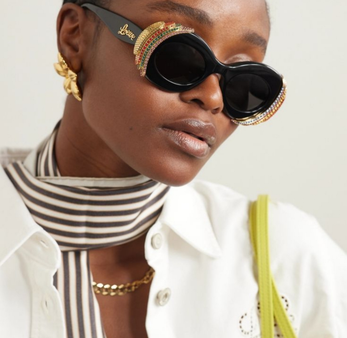 这款太阳眼镜是AAAAA 1:1 质量 (非常棒). 使用了和原版一模一样的材料. 商标部分也保持了和罗意威/Loewe一样. 图片拍摄是实物太阳眼镜拍摄, 您所收到的实物保证和我们图片一模一样.