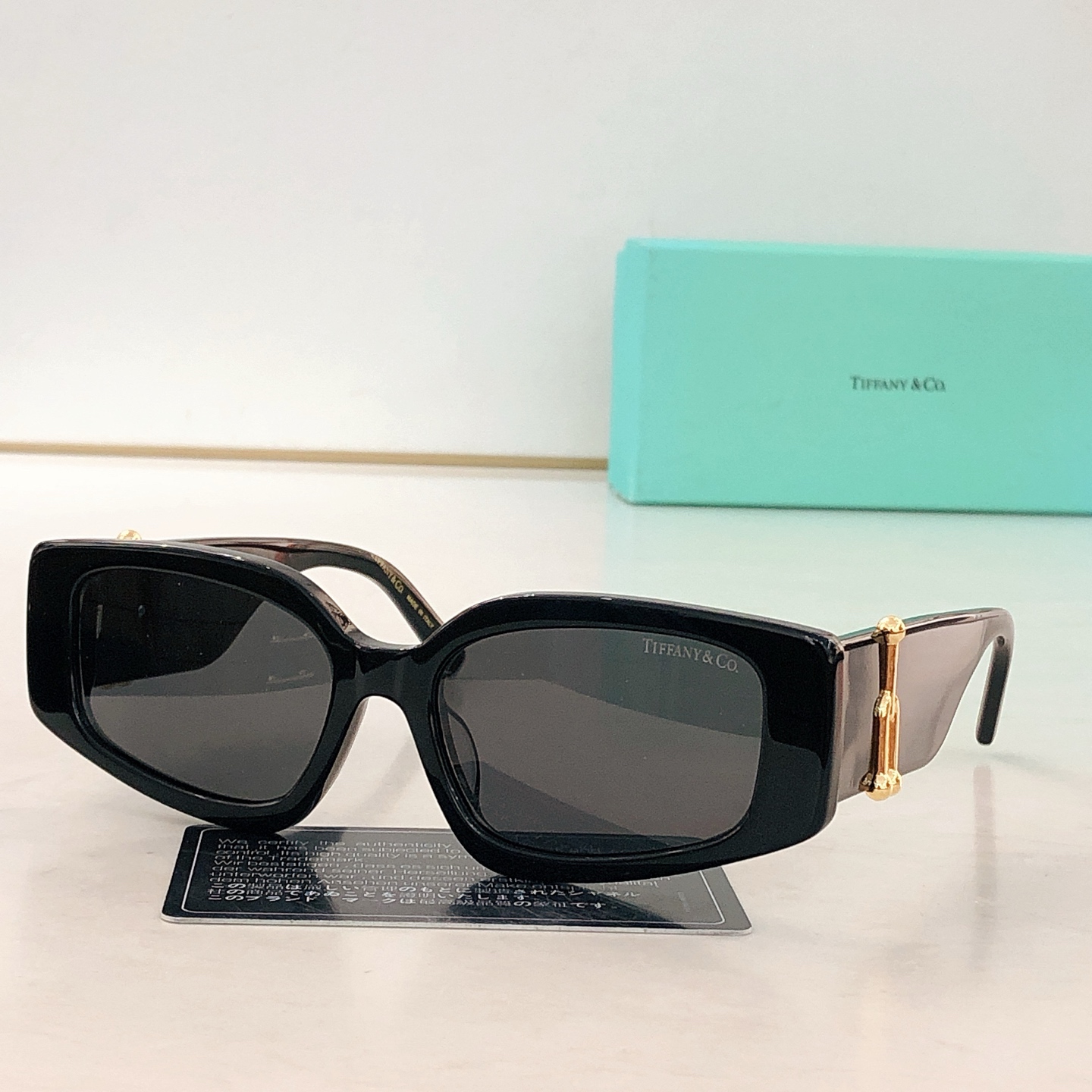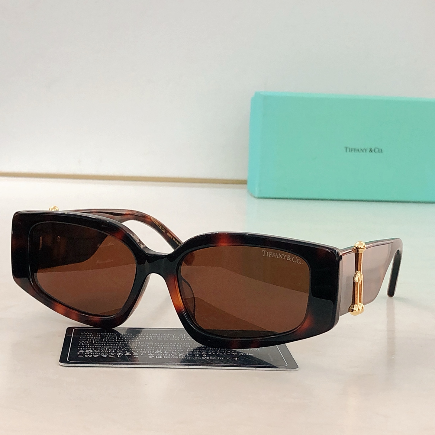 这款太阳眼镜是AAAAA 1:1 质量 (非常棒). 使用了和原版一模一样的材料. 商标部分也保持了和蒂芙尼/Tiffany一样. 图片拍摄是实物太阳眼镜拍摄, 您所收到的实物保证和我们图片一模一样.
