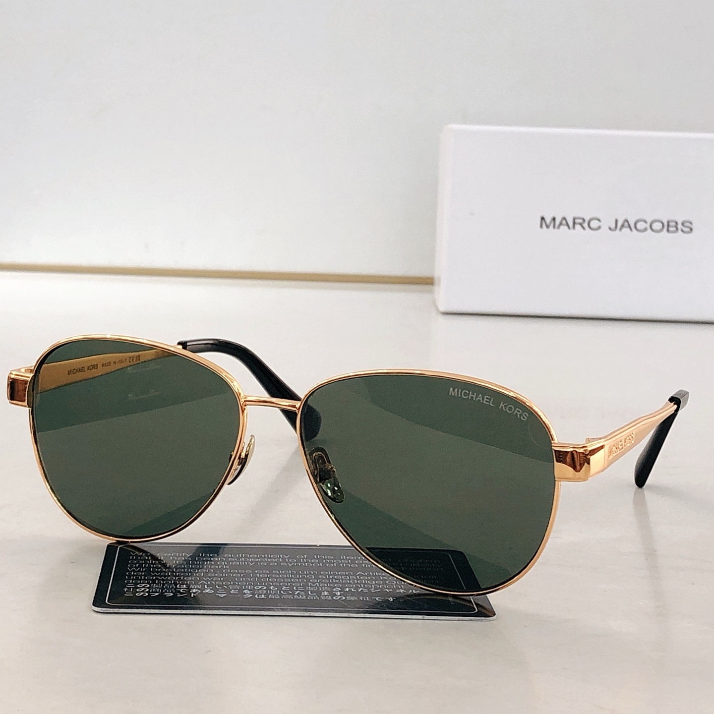 这款太阳眼镜是AAAAA 1:1 质量 (非常棒). 使用了和原版一模一样的材料. 商标部分也保持了和迈克尔·科斯/Michael Kors一样. 图片拍摄是实物太阳眼镜拍摄, 您所收到的实物保证和我们图片一模一样.