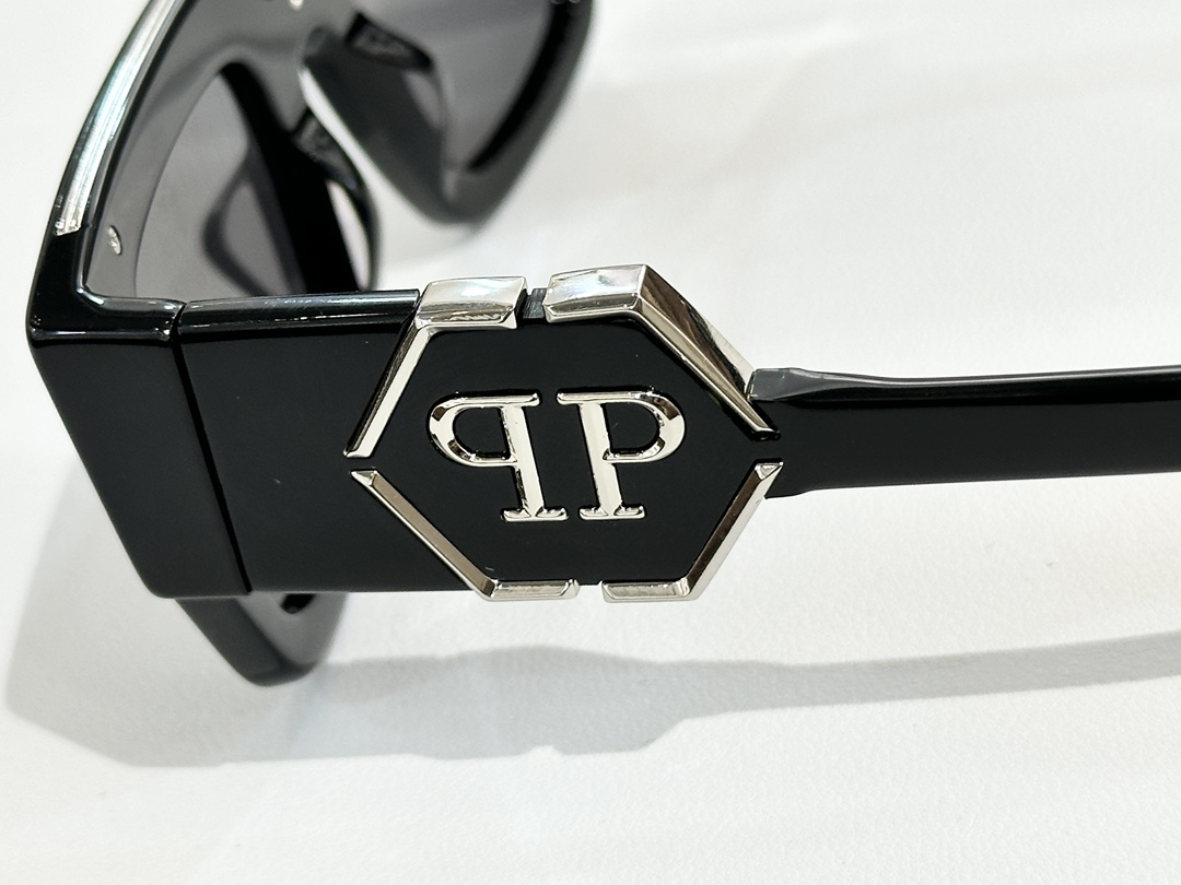 这款太阳眼镜是AAAAA 1:1 质量 (非常棒). 使用了和原版一模一样的材料. 商标部分也保持了和菲利普·普林/Philipp Plein一样. 图片拍摄是实物太阳眼镜拍摄, 您所收到的实物保证和我们图片一模一样.