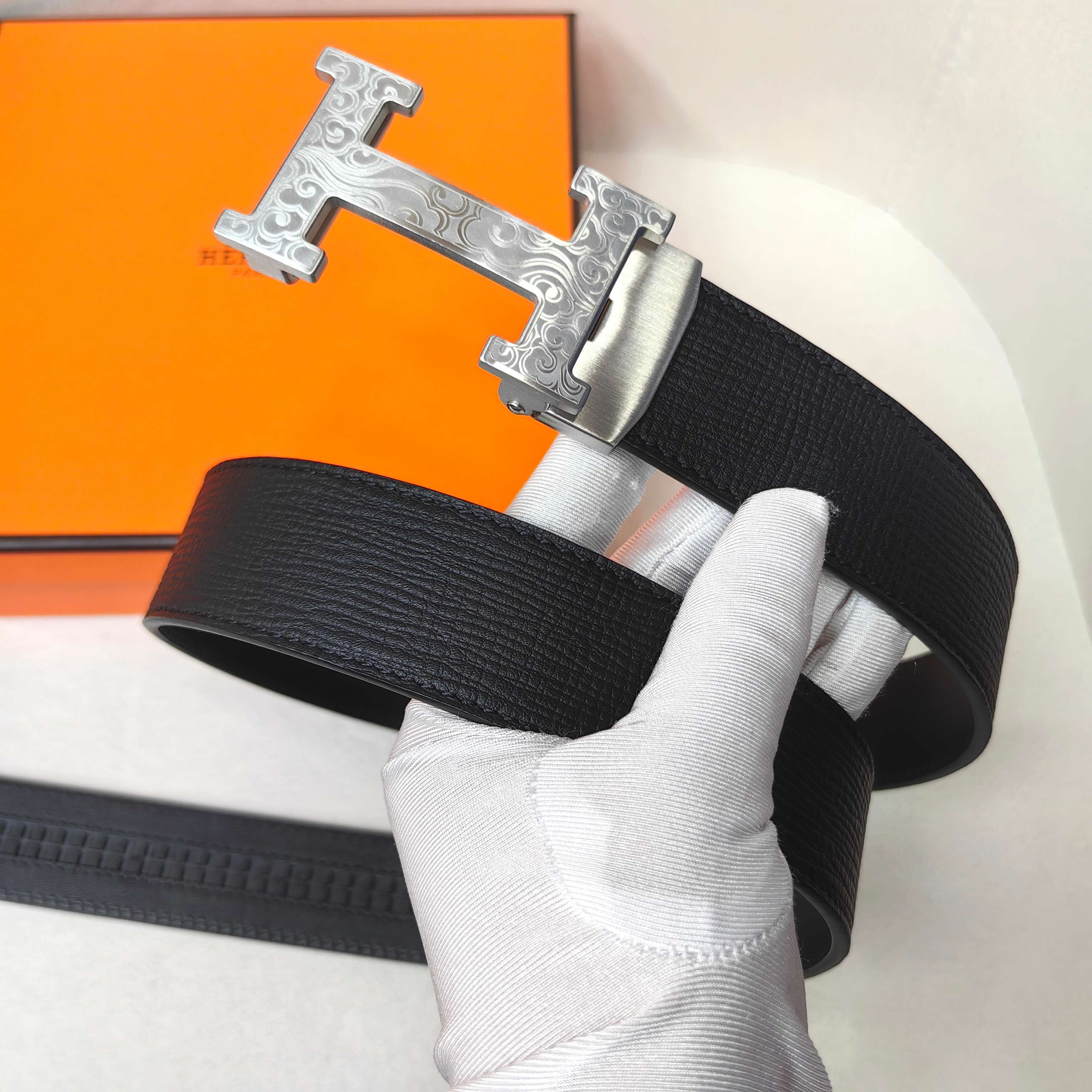 这款皮带是AAAAA 1:1 质量 (非常棒). 使用了和原版一模一样的材料. 商标部分也保持了和一样. 图片拍摄是实物皮带拍摄, 您所收到的实物保证和我们图片一模一样.