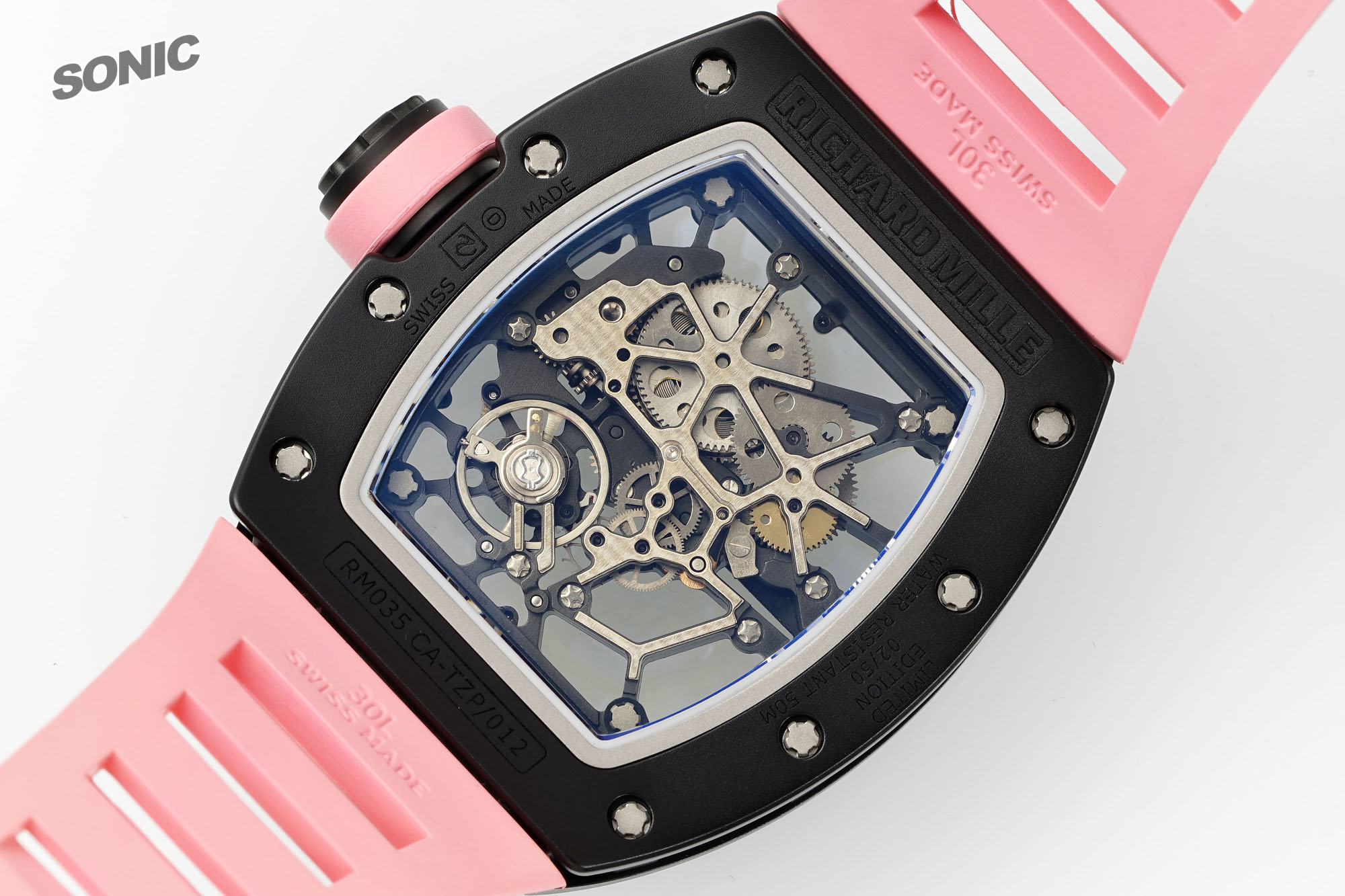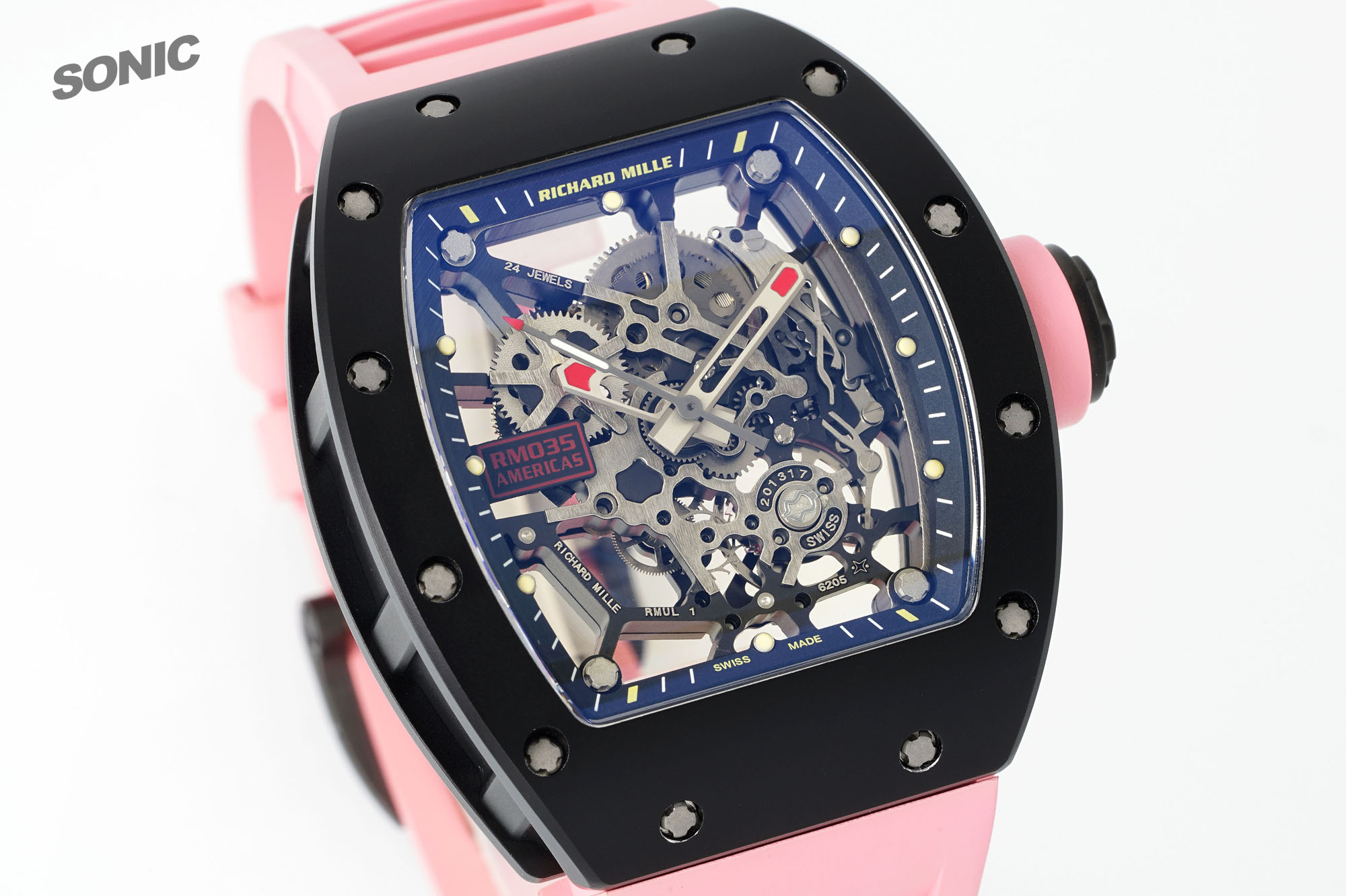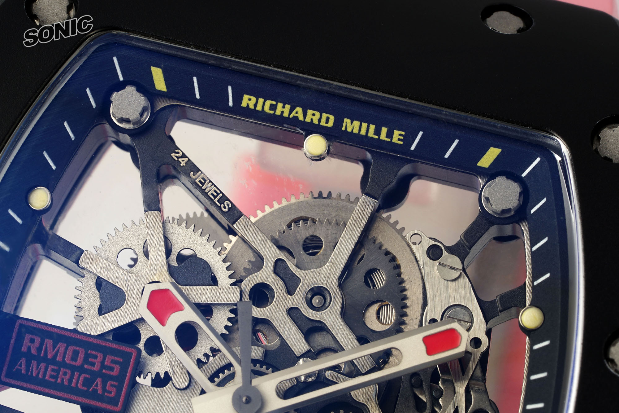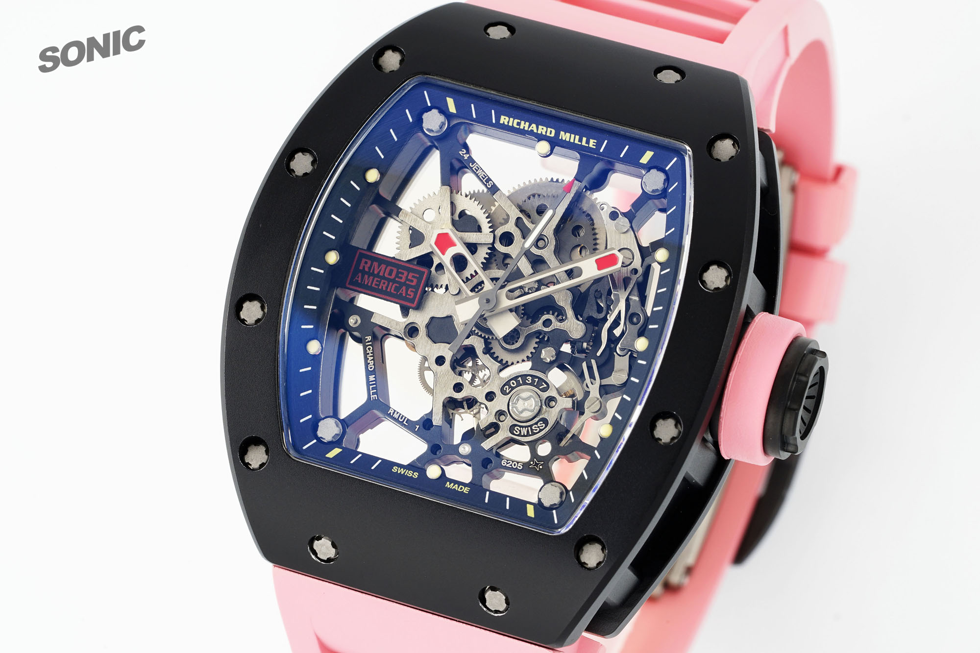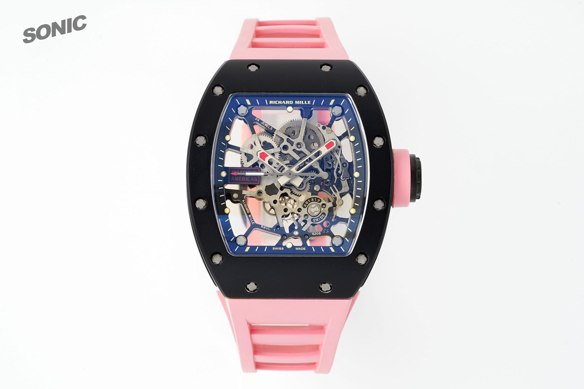 这款手表是AAAAA 1:1 质量 (非常棒). 使用了和原版一模一样的材料. 商标部分也保持了和理查德·米尔/Richard Mille一样. 图片拍摄是实物手表拍摄, 您所收到的实物保证和我们图片一模一样.