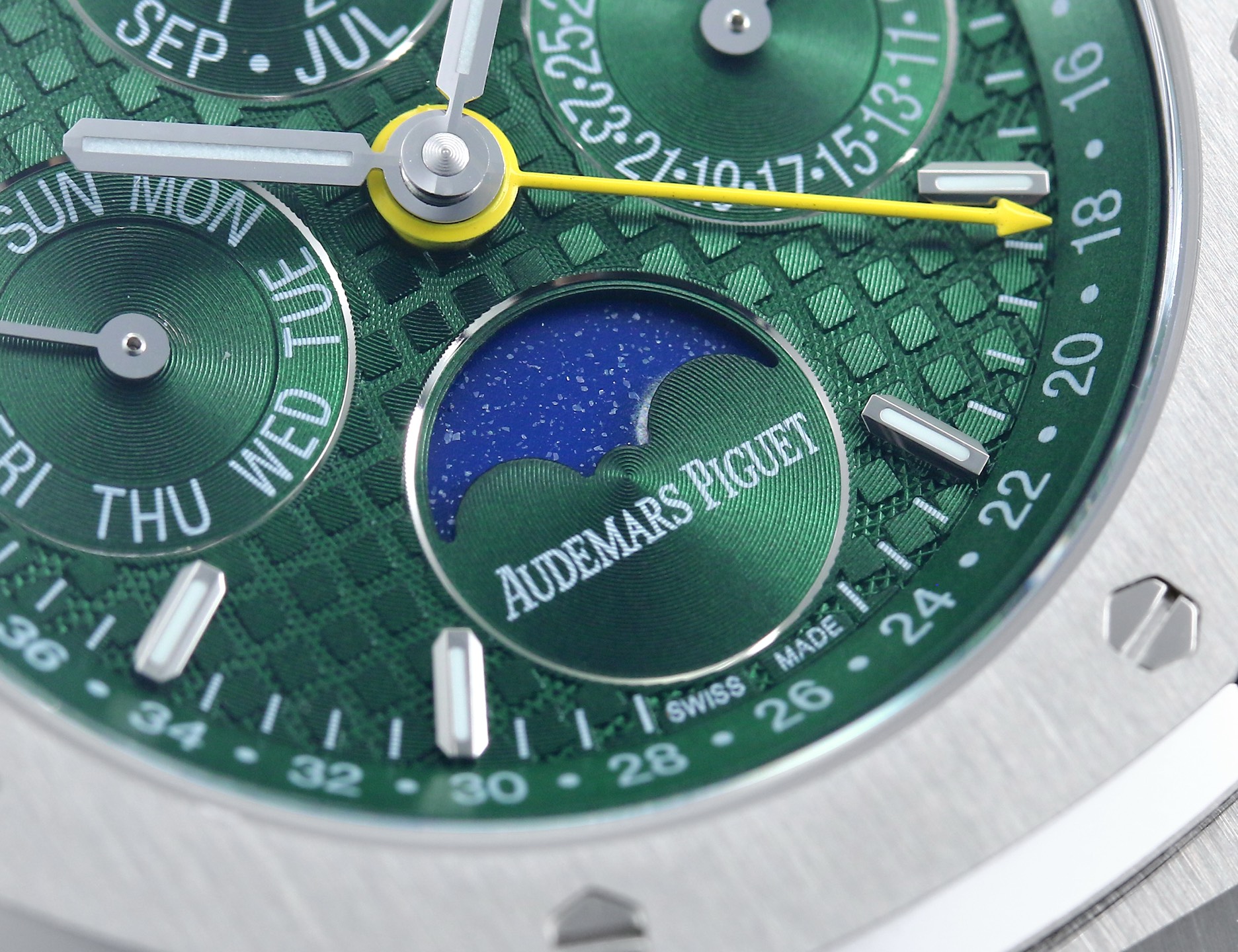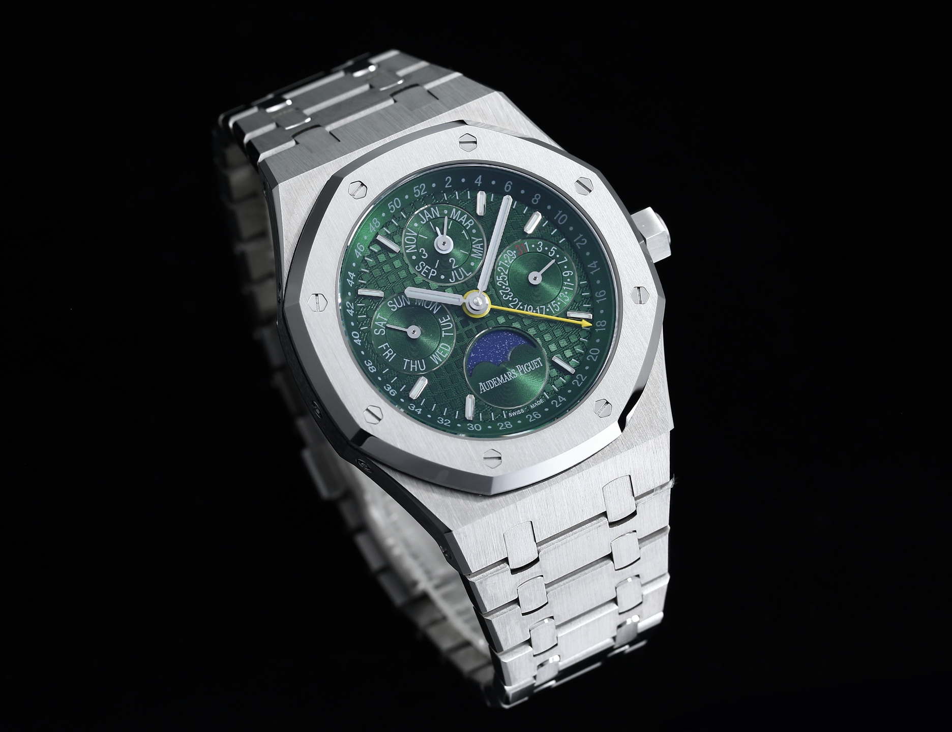 这款手表是AAAAA 1:1 质量 (非常棒). 使用了和原版一模一样的材料. 商标部分也保持了和爱彼/Audemars Piguet一样. 图片拍摄是实物手表拍摄, 您所收到的实物保证和我们图片一模一样.