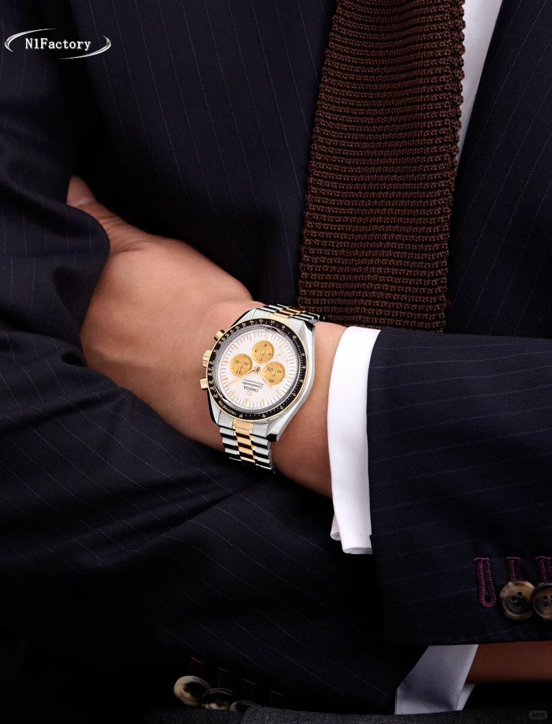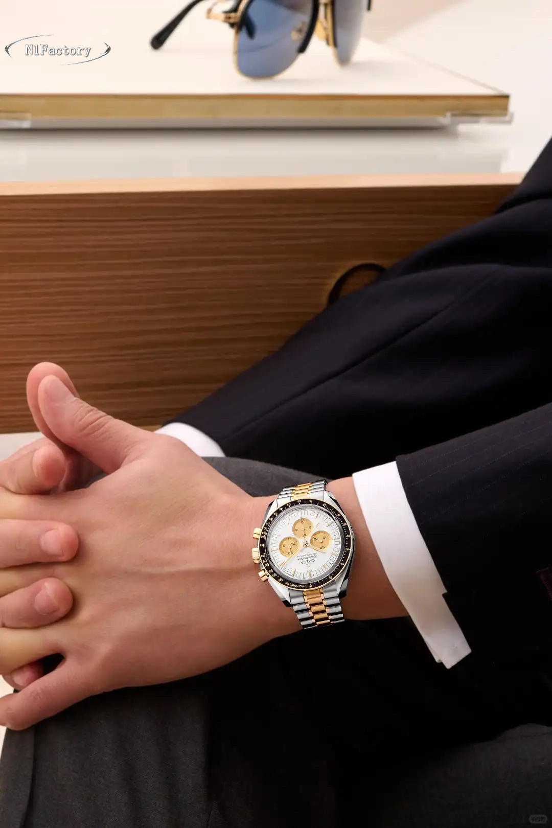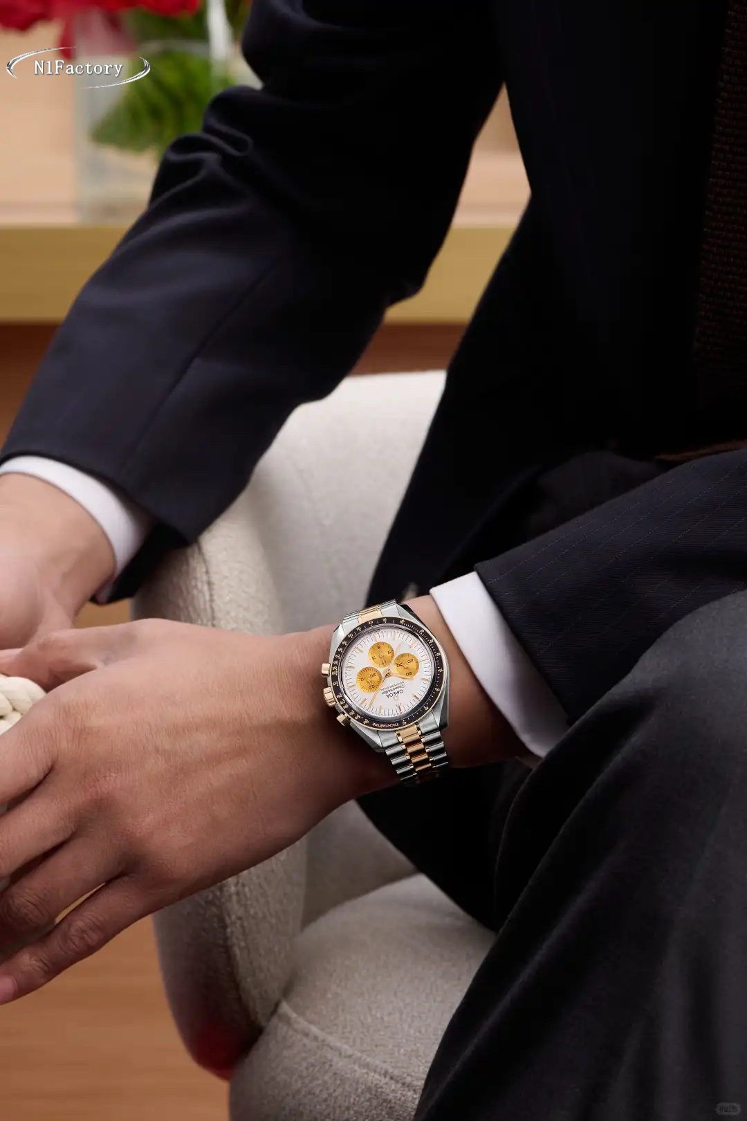 这款手表是AAAAA 1:1 质量 (非常棒). 使用了和原版一模一样的材料. 商标部分也保持了和欧米茄/Omega一样. 图片拍摄是实物手表拍摄, 您所收到的实物保证和我们图片一模一样.