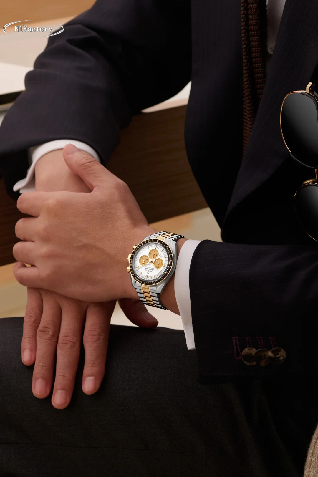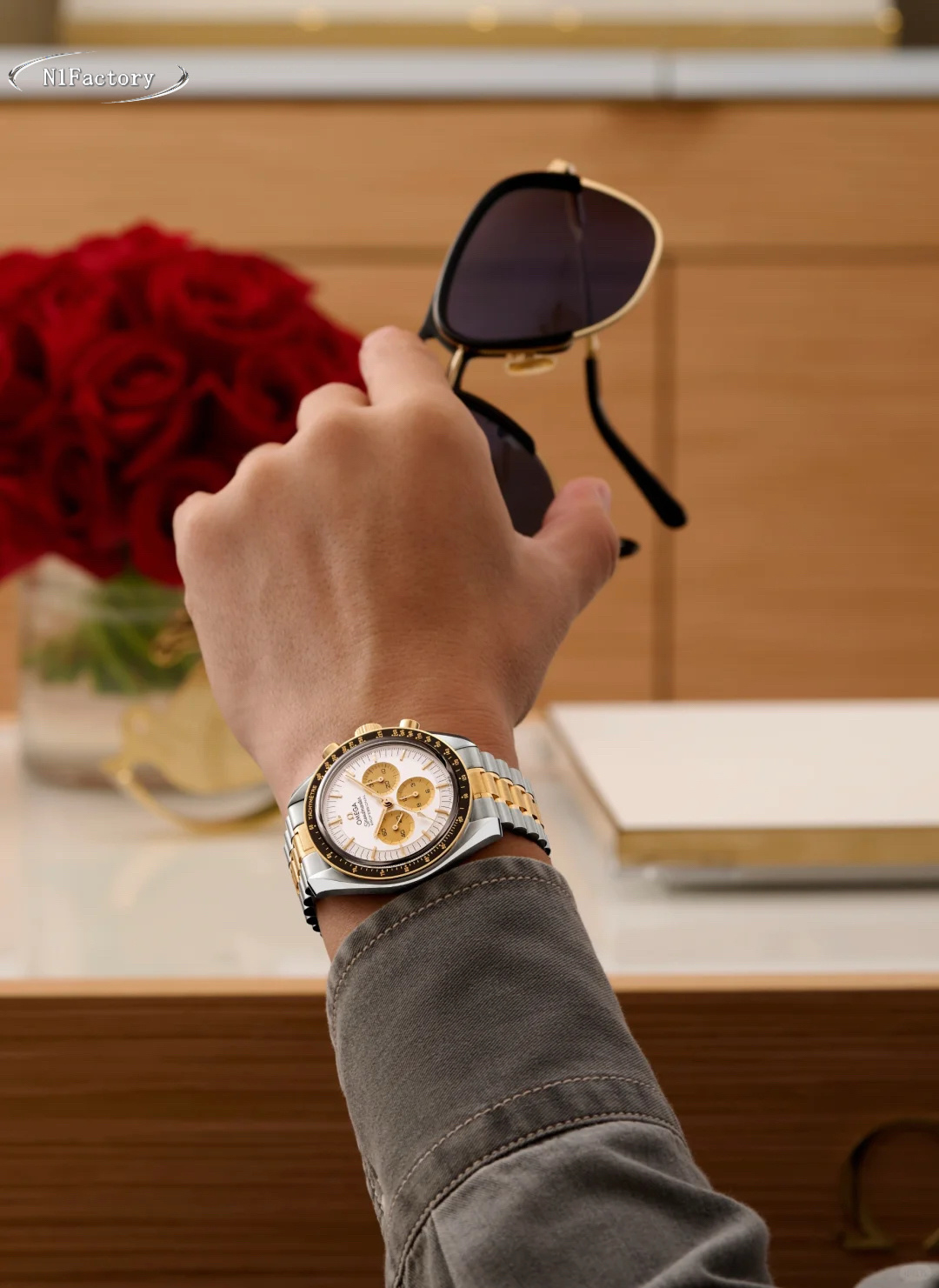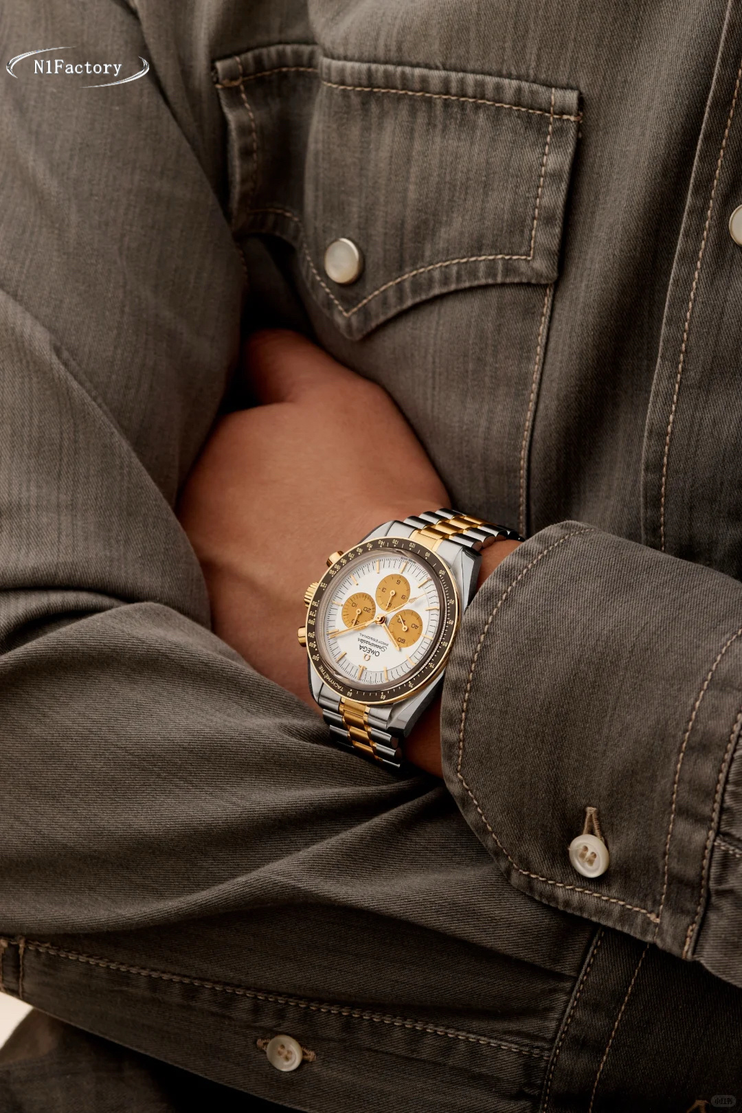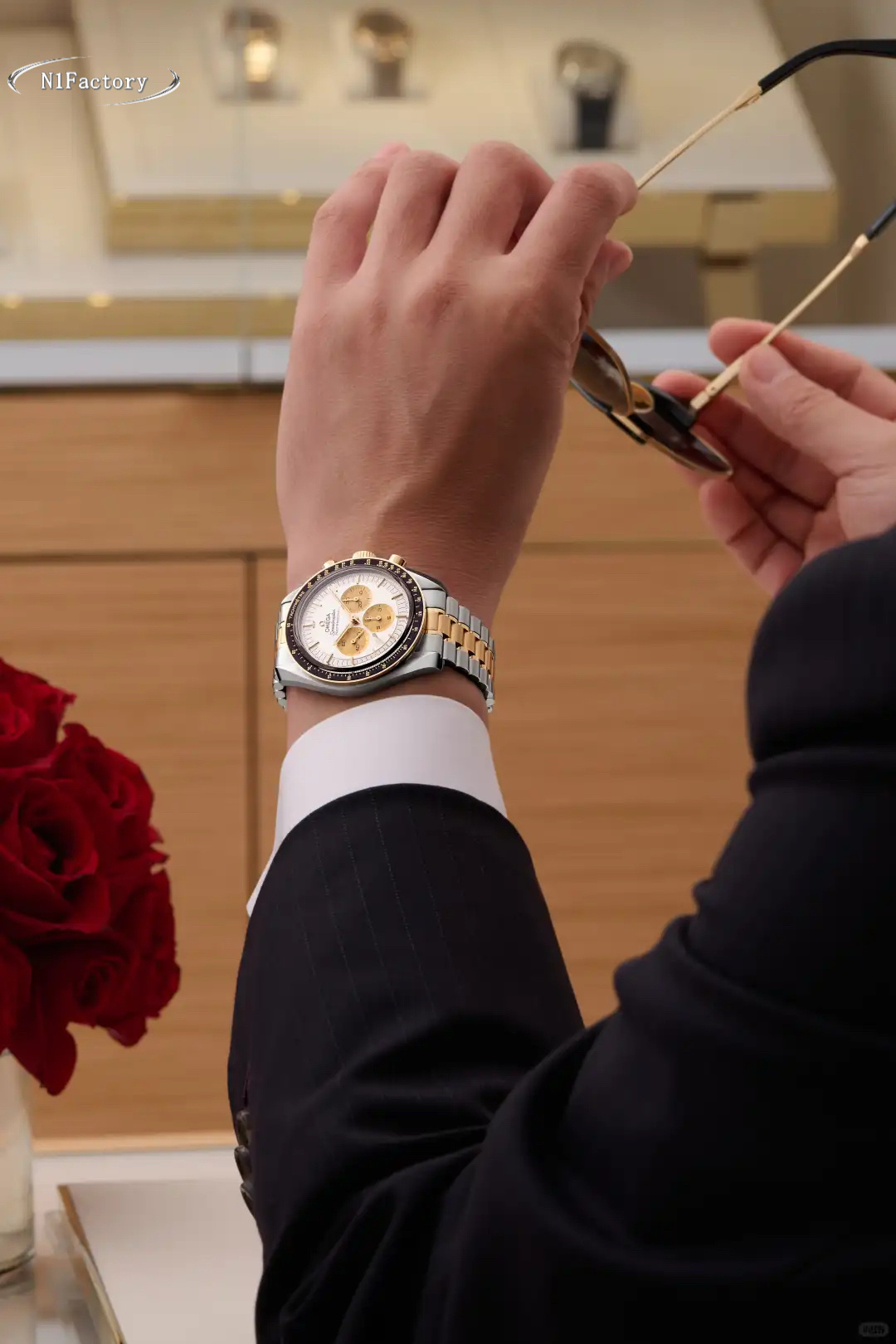 这款手表是AAAAA 1:1 质量 (非常棒). 使用了和原版一模一样的材料. 商标部分也保持了和欧米茄/Omega一样. 图片拍摄是实物手表拍摄, 您所收到的实物保证和我们图片一模一样.