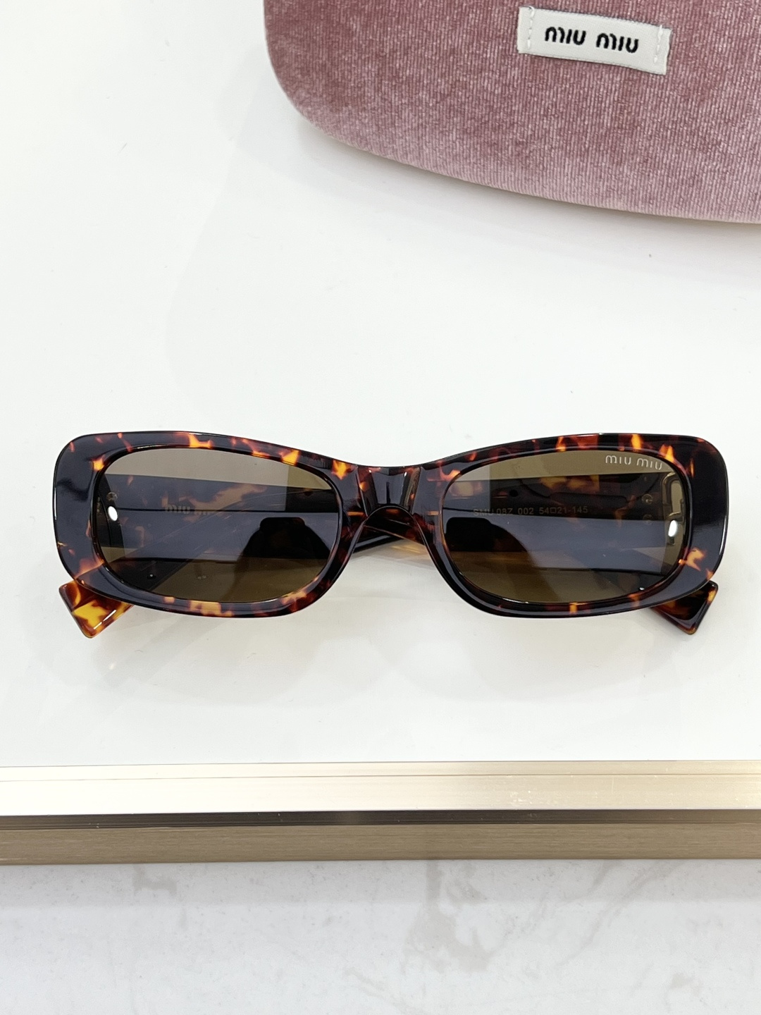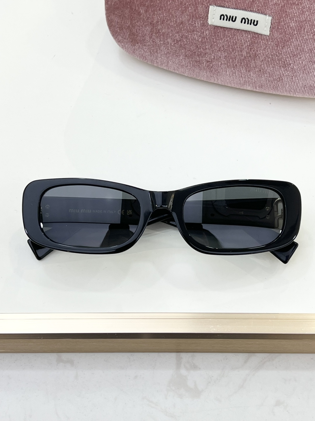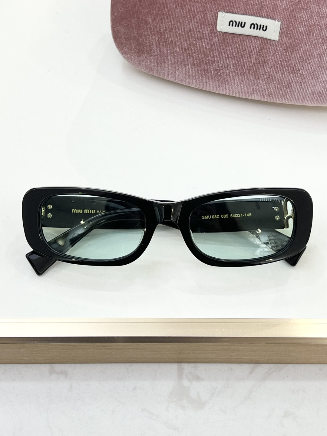 这款太阳眼镜是AAAAA 1:1 质量 (非常棒). 使用了和原版一模一样的材料. 商标部分也保持了和缪缪/Miu Miu一样. 图片拍摄是实物太阳眼镜拍摄, 您所收到的实物保证和我们图片一模一样.