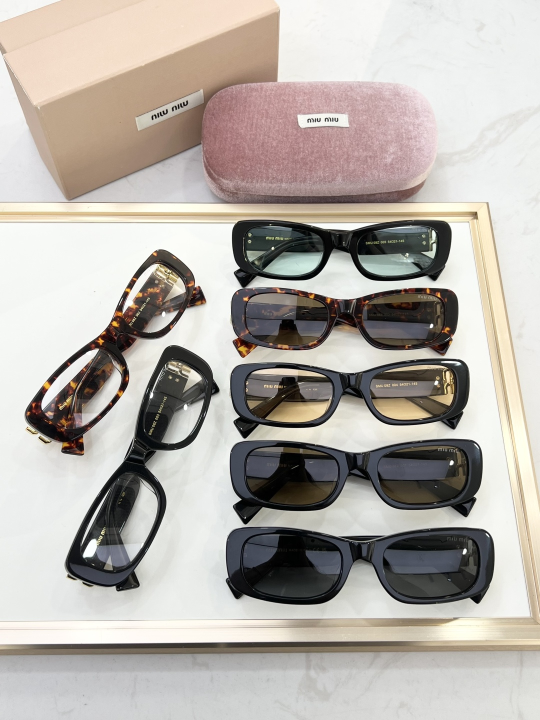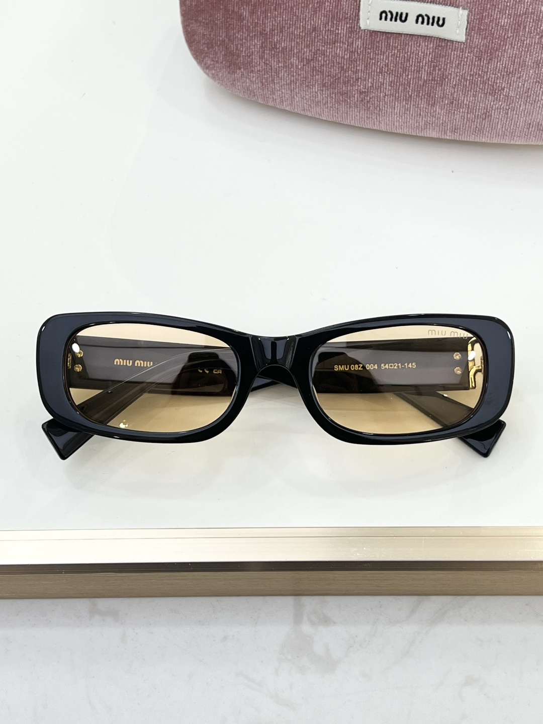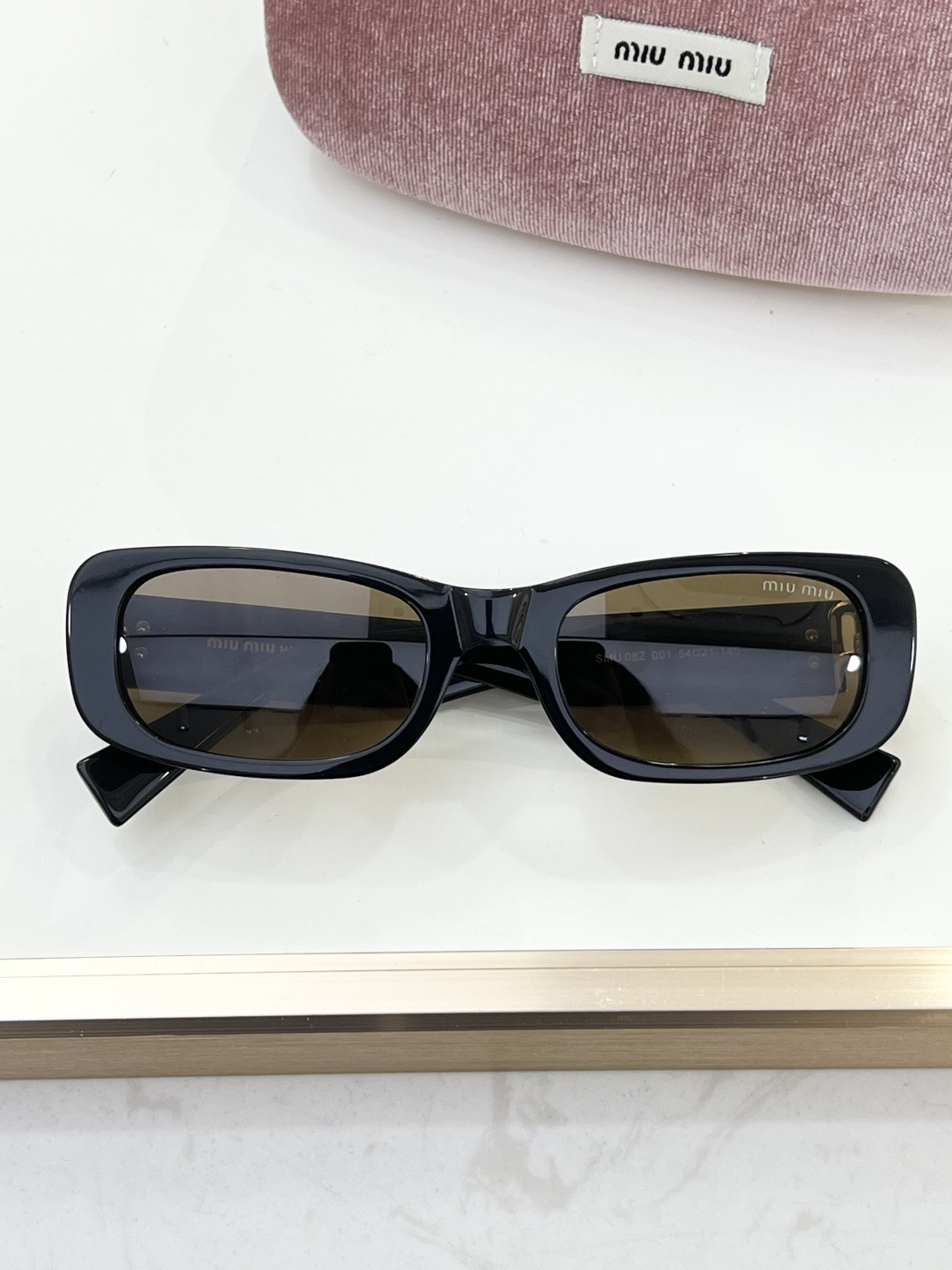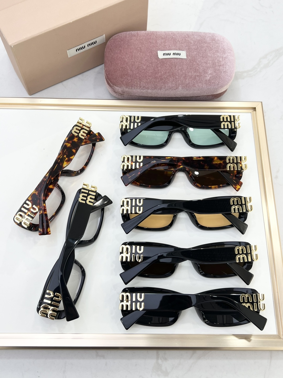 这款太阳眼镜是AAAAA 1:1 质量 (非常棒). 使用了和原版一模一样的材料. 商标部分也保持了和缪缪/Miu Miu一样. 图片拍摄是实物太阳眼镜拍摄, 您所收到的实物保证和我们图片一模一样.