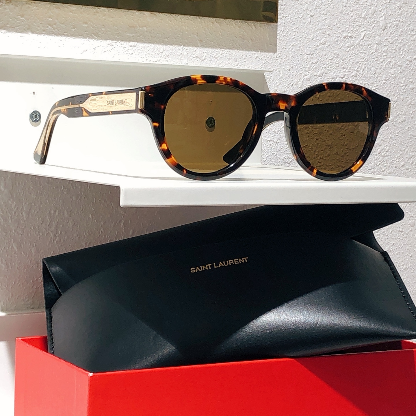 这款太阳眼镜是AAAAA 1:1 质量 (非常棒). 使用了和原版一模一样的材料. 商标部分也保持了和圣罗兰/Saint Laurent一样. 图片拍摄是实物太阳眼镜拍摄, 您所收到的实物保证和我们图片一模一样.
