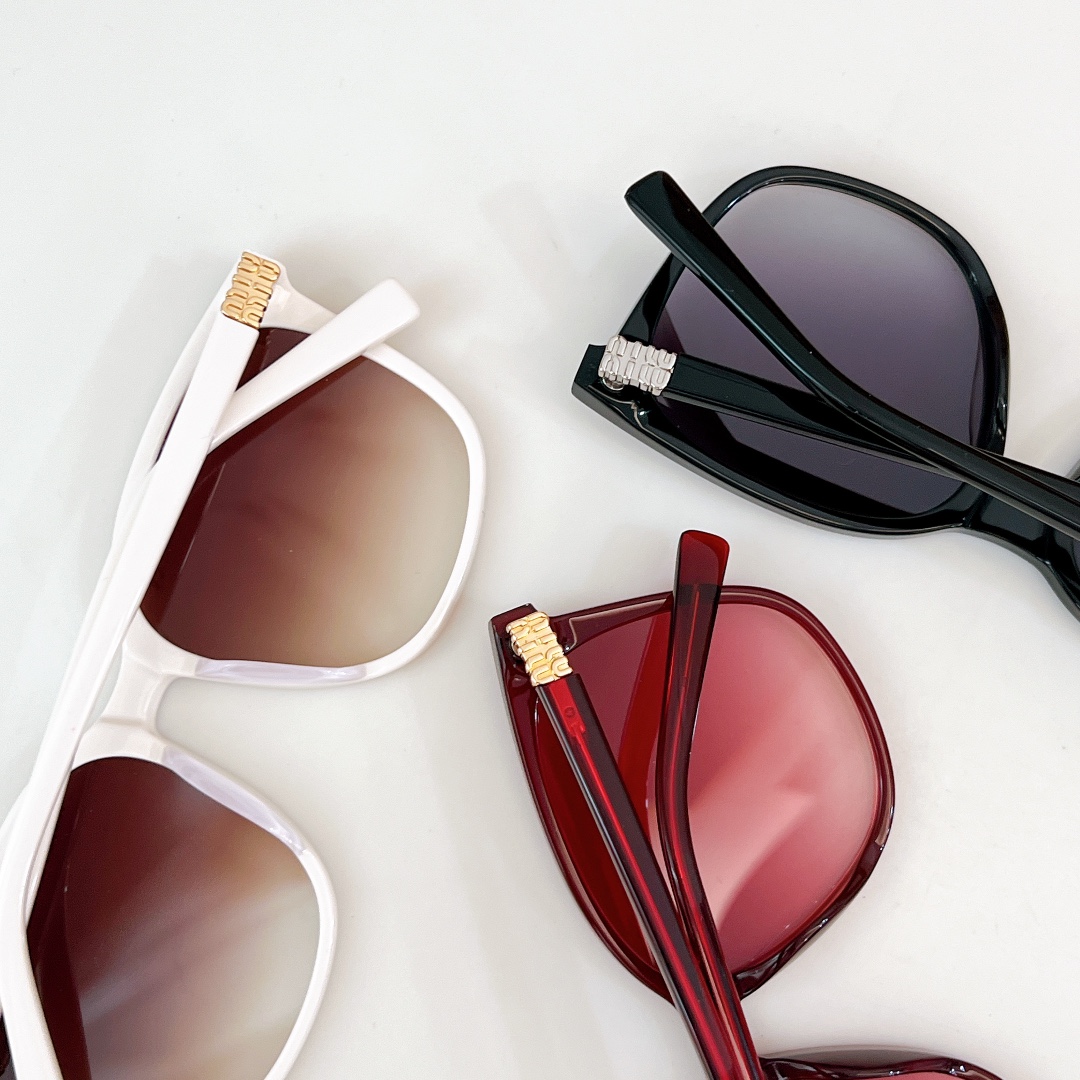 这款太阳眼镜是AAAAA 1:1 质量 (非常棒). 使用了和原版一模一样的材料. 商标部分也保持了和缪缪/Miu Miu一样. 图片拍摄是实物太阳眼镜拍摄, 您所收到的实物保证和我们图片一模一样.