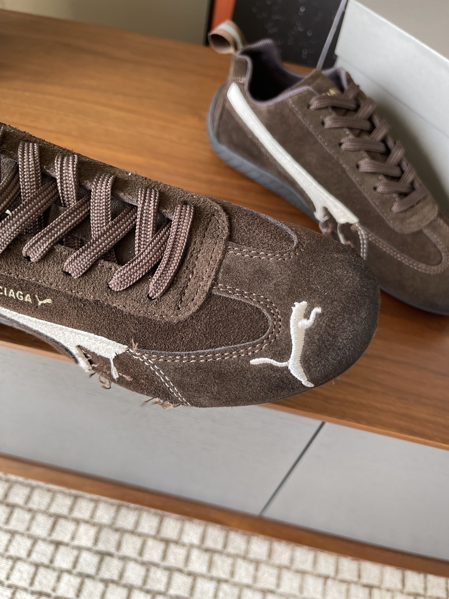 这款鞋子是AAAAA 1:1 质量 (非常棒). 使用了和原版一模一样的材料. 商标部分也保持了和彪马/PUMA一样. 图片拍摄是实物鞋子拍摄, 您所收到的实物保证和我们图片一模一样.