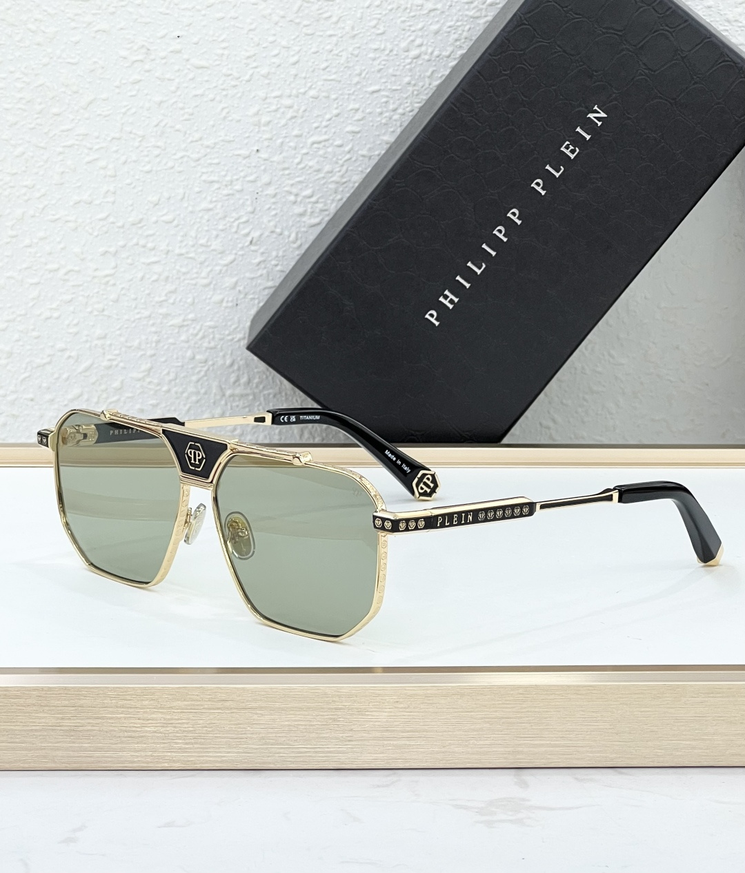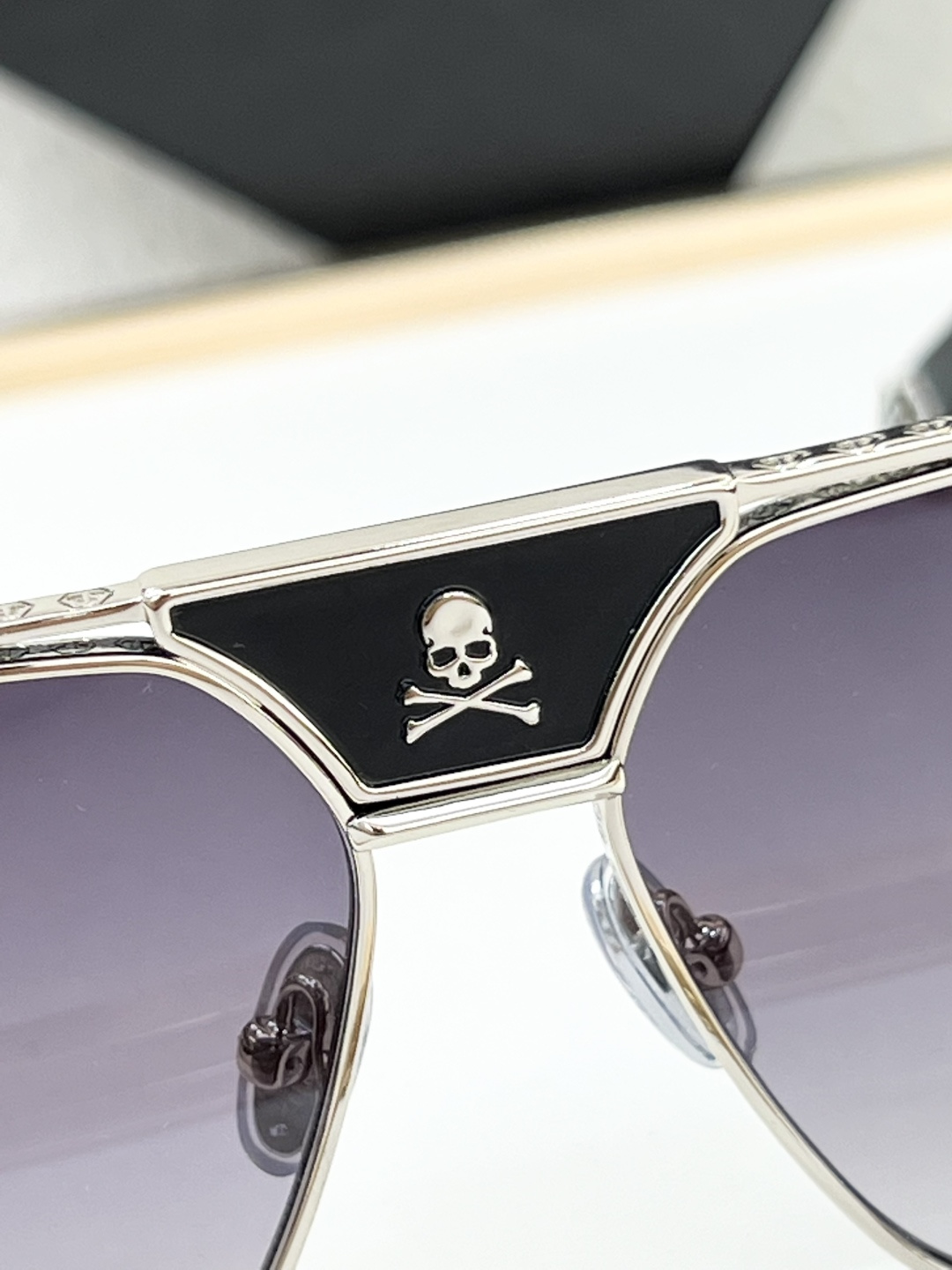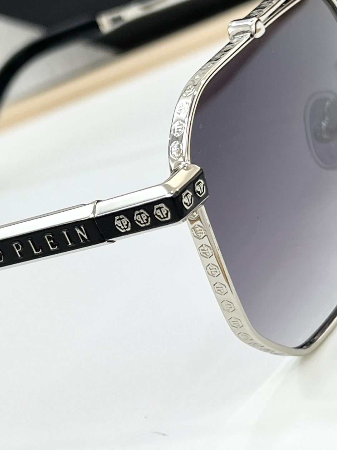 这款太阳眼镜是AAAAA 1:1 质量 (非常棒). 使用了和原版一模一样的材料. 商标部分也保持了和菲利普·普林/Philipp Plein一样. 图片拍摄是实物太阳眼镜拍摄, 您所收到的实物保证和我们图片一模一样.