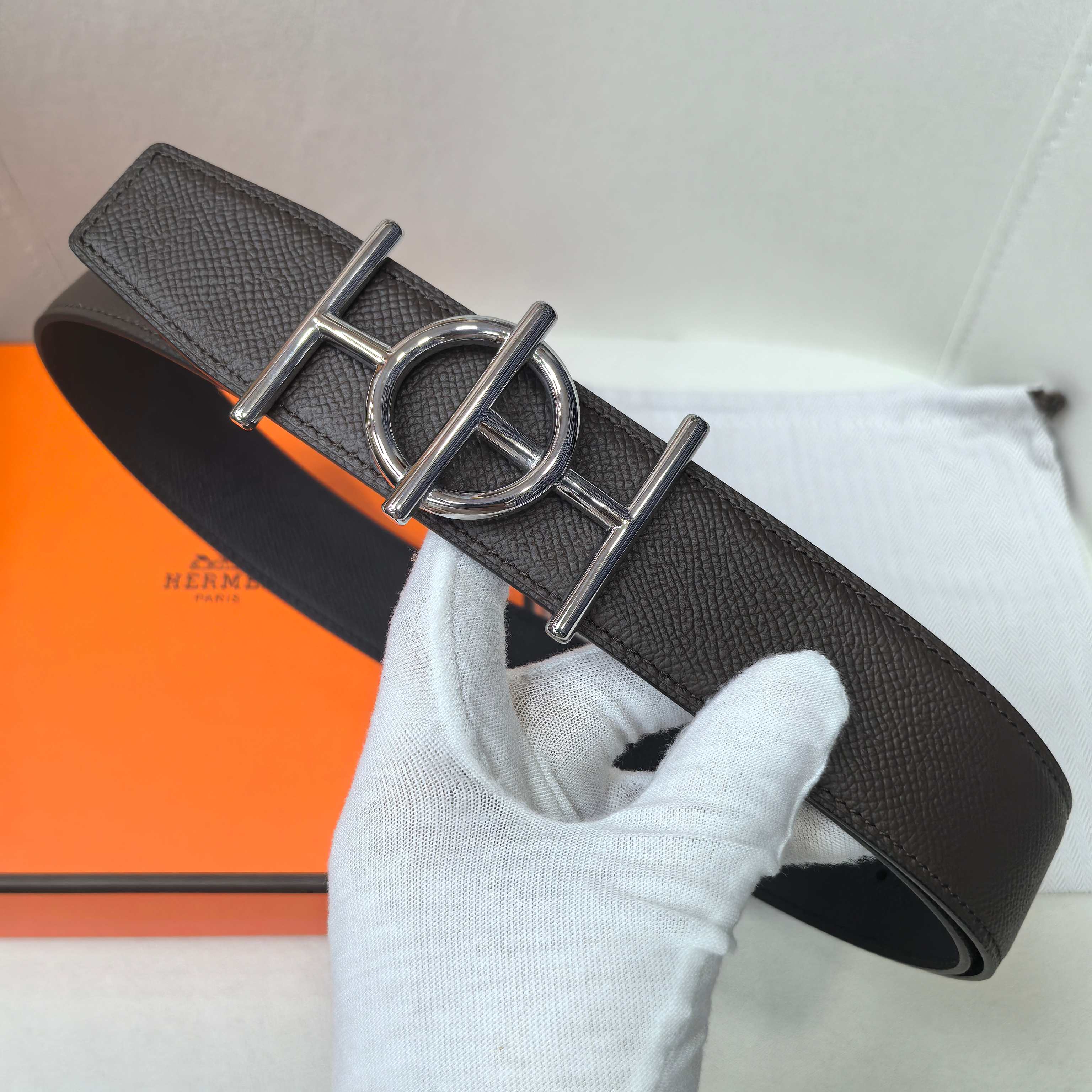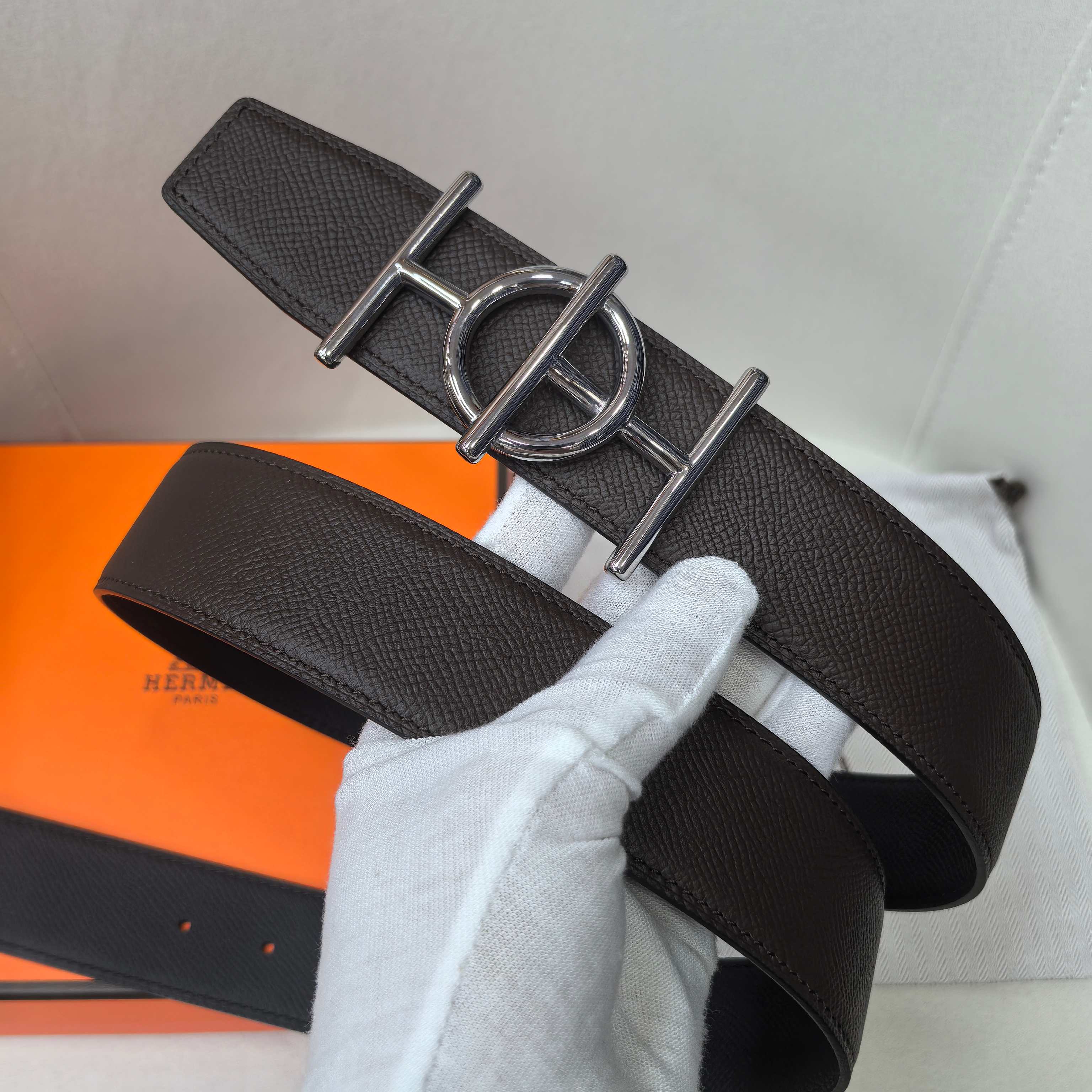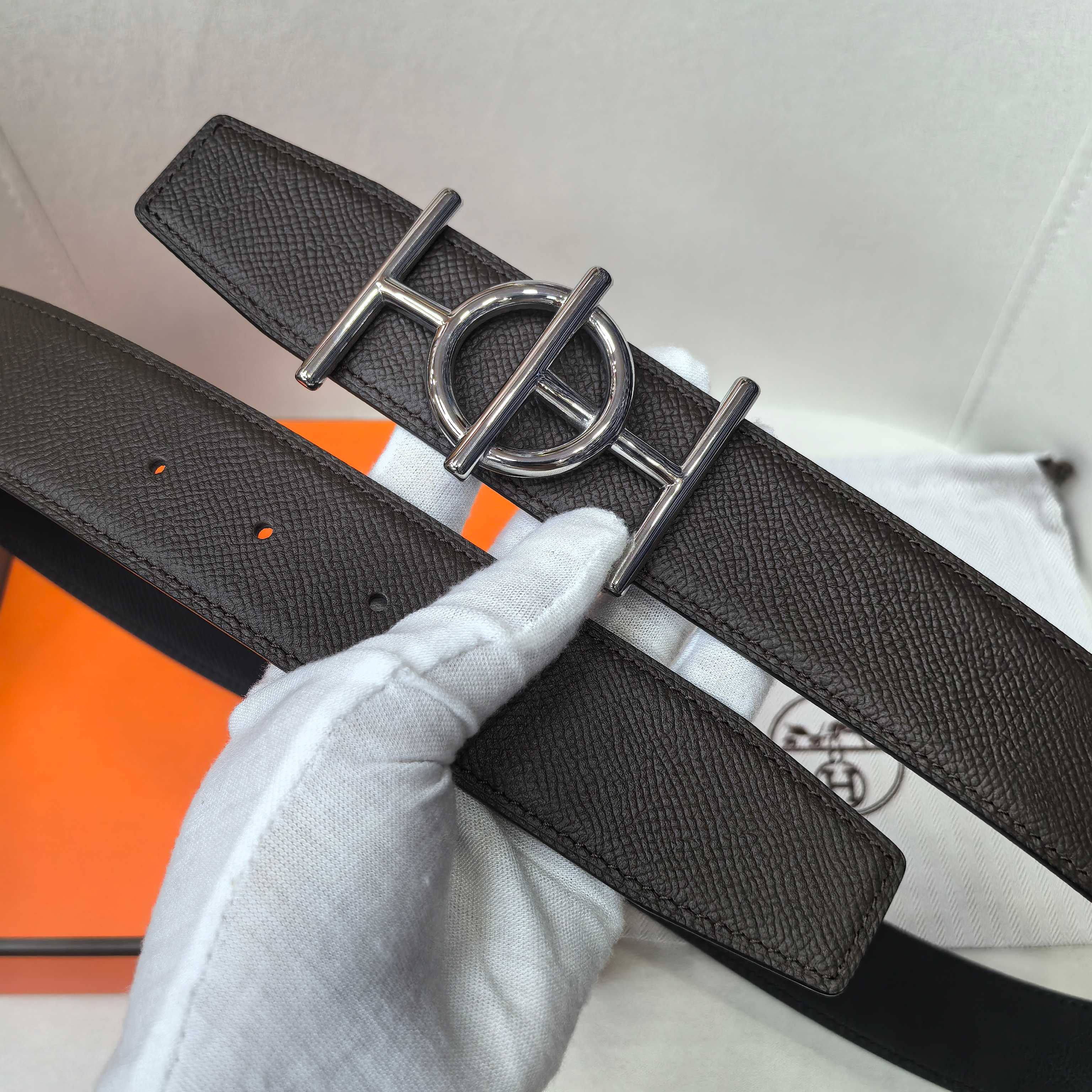 这款皮带是AAAAA 1:1 质量 (非常棒). 使用了和原版一模一样的材料. 商标部分也保持了和爱马仕/Hermes一样. 图片拍摄是实物皮带拍摄, 您所收到的实物保证和我们图片一模一样.