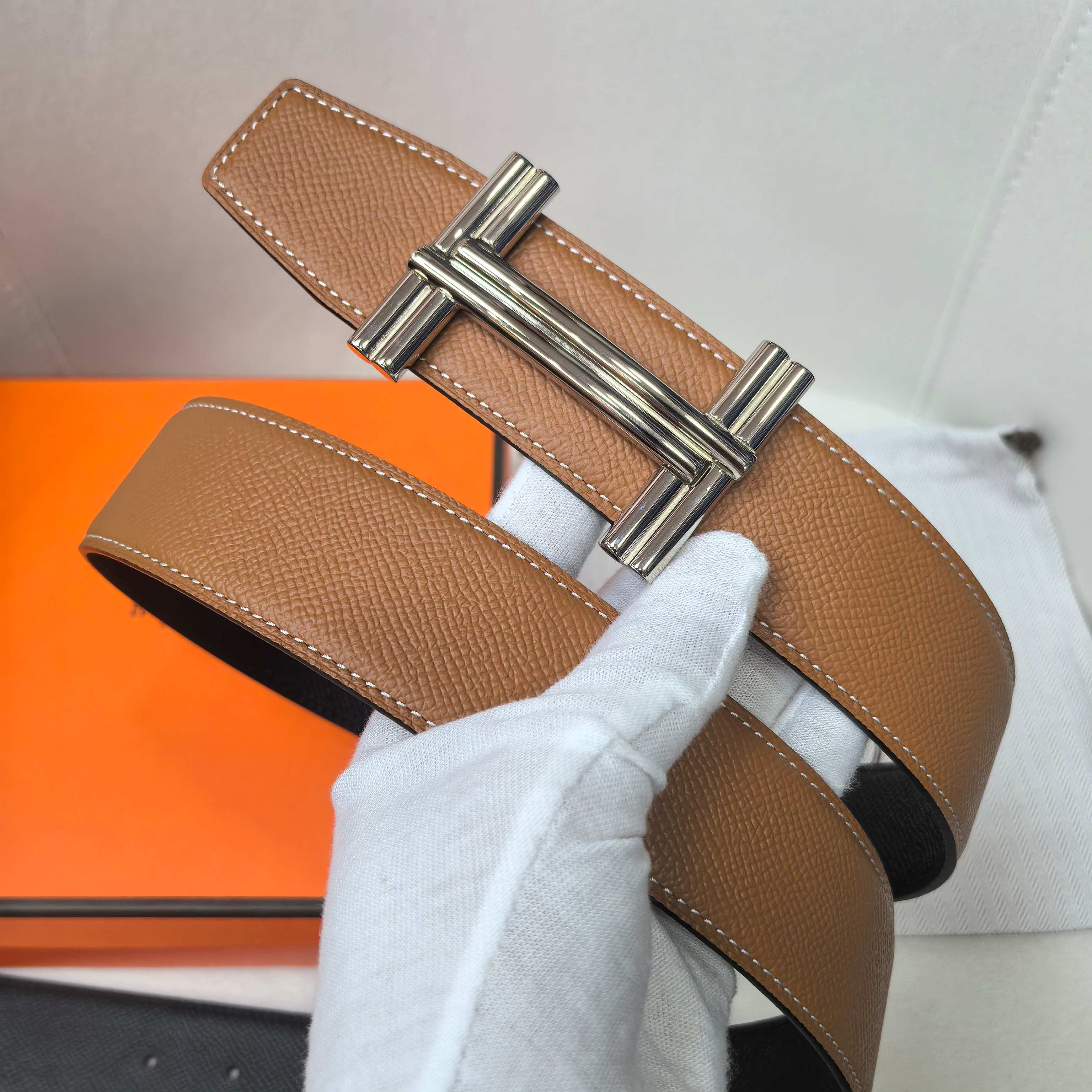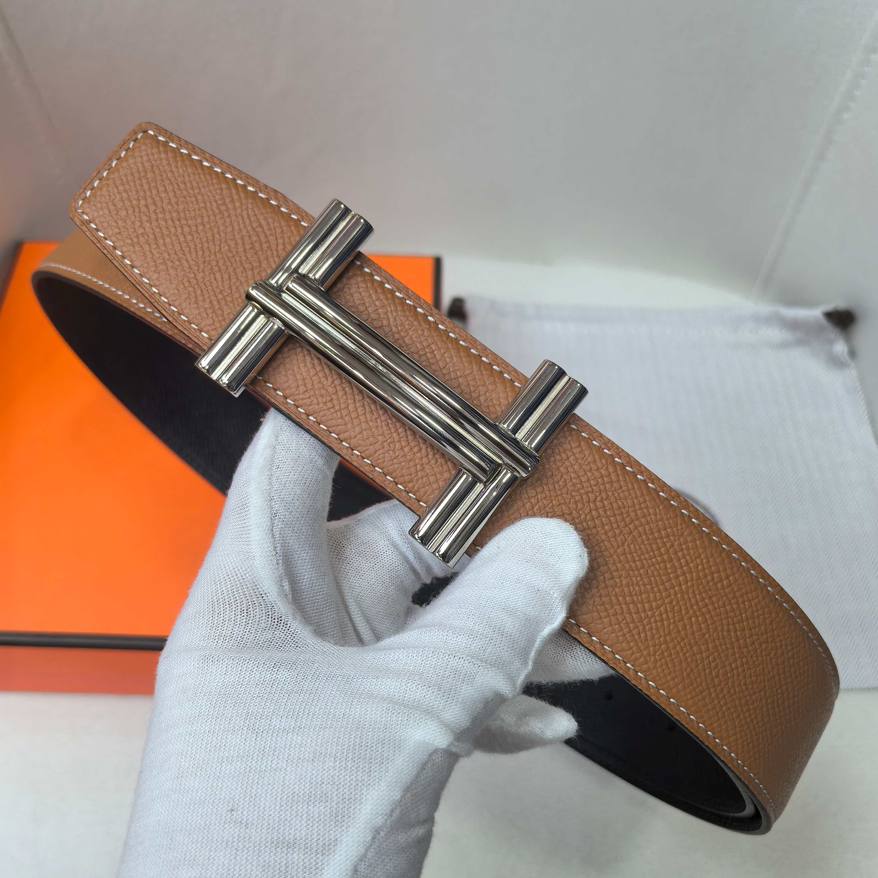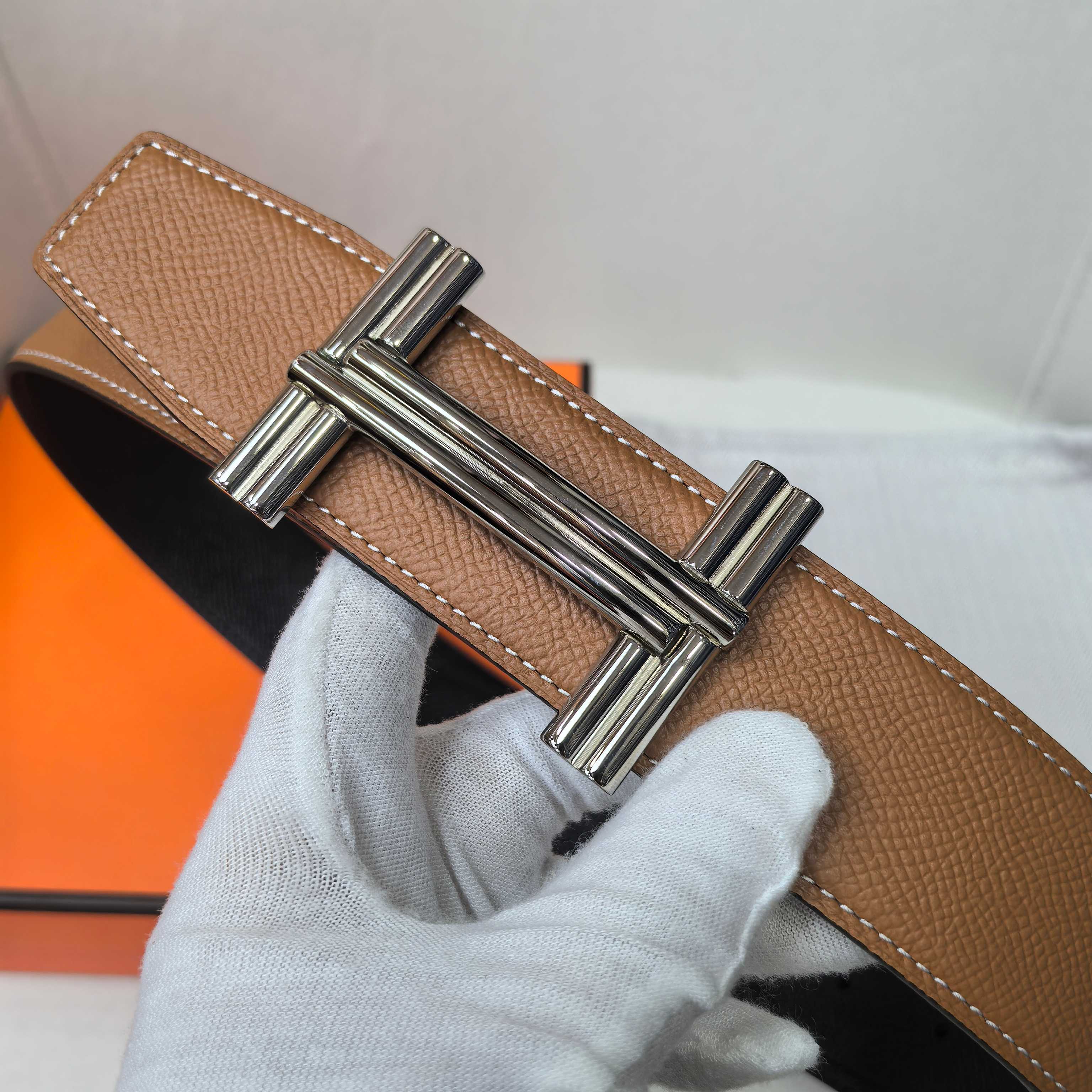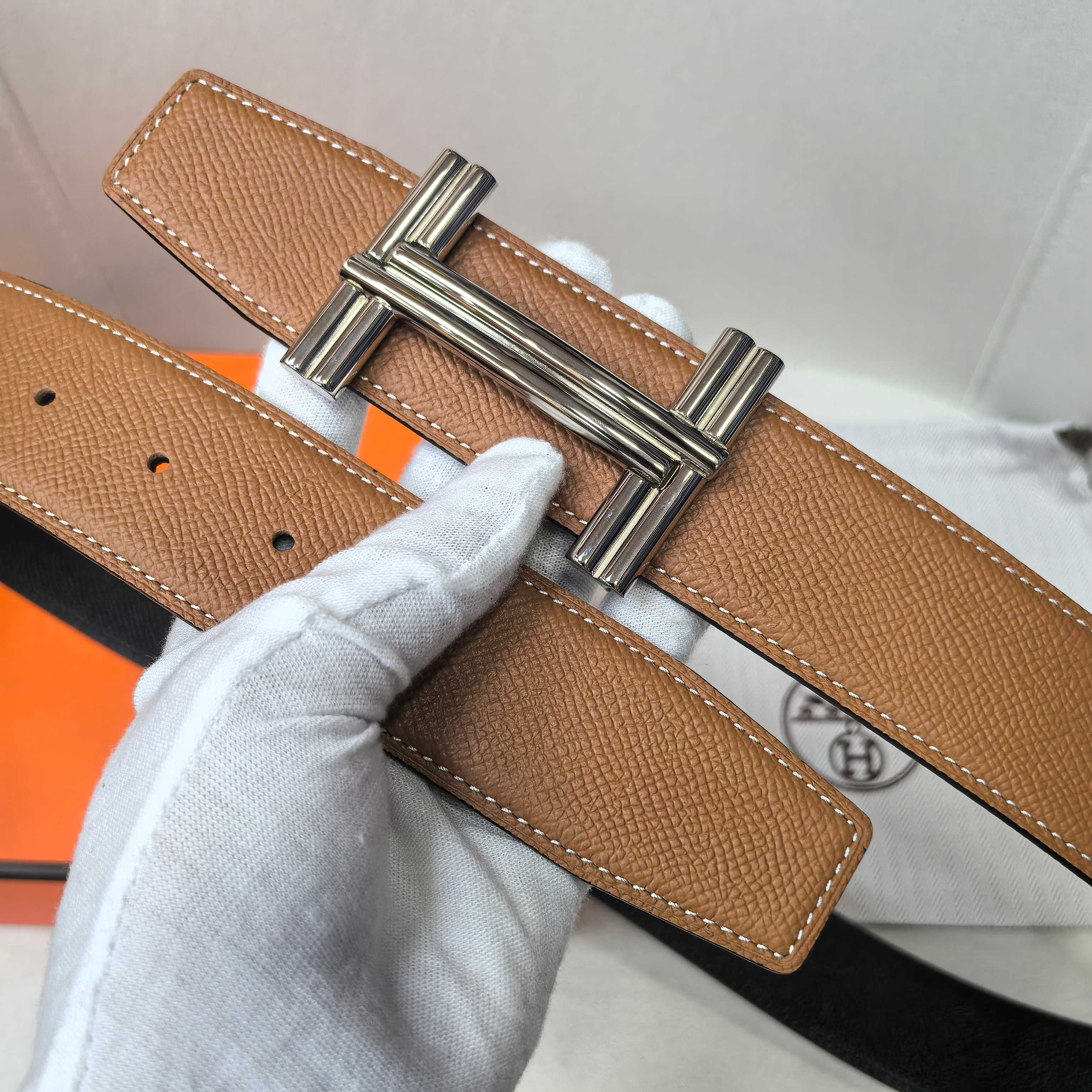 这款皮带是AAAAA 1:1 质量 (非常棒). 使用了和原版一模一样的材料. 商标部分也保持了和爱马仕/Hermes一样. 图片拍摄是实物皮带拍摄, 您所收到的实物保证和我们图片一模一样.