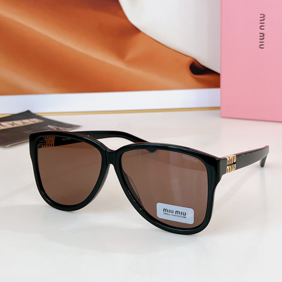 这款太阳眼镜是AAAAA 1:1 质量 (非常棒). 使用了和原版一模一样的材料. 商标部分也保持了和缪缪/Miu Miu一样. 图片拍摄是实物太阳眼镜拍摄, 您所收到的实物保证和我们图片一模一样.
