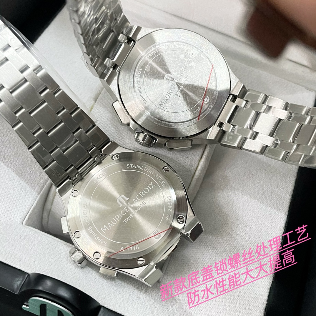 这款手表是AAAAA 1:1 质量 (非常棒). 使用了和原版一模一样的材料. 商标部分也保持了和Maurice Lacroix一样. 图片拍摄是实物手表拍摄, 您所收到的实物保证和我们图片一模一样.