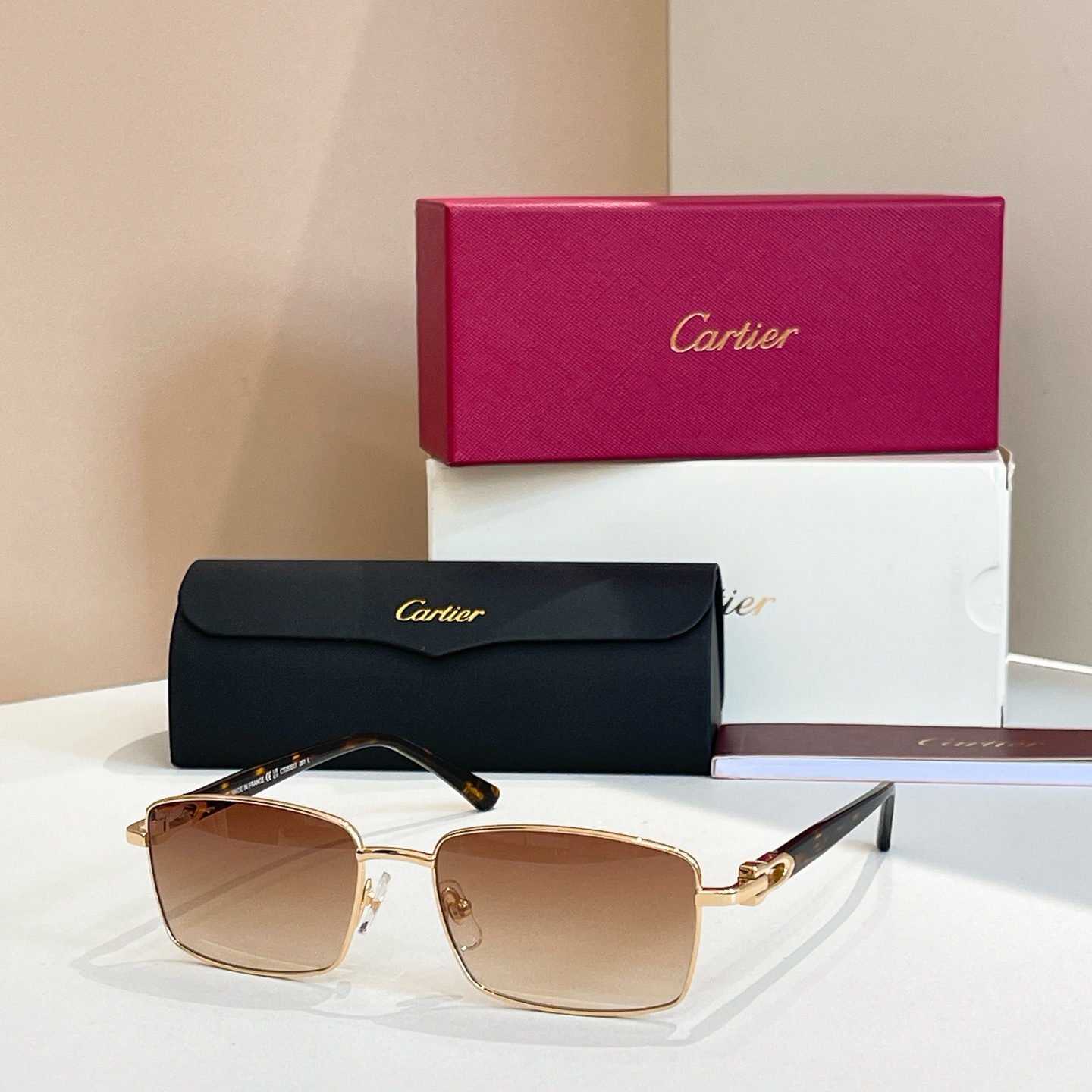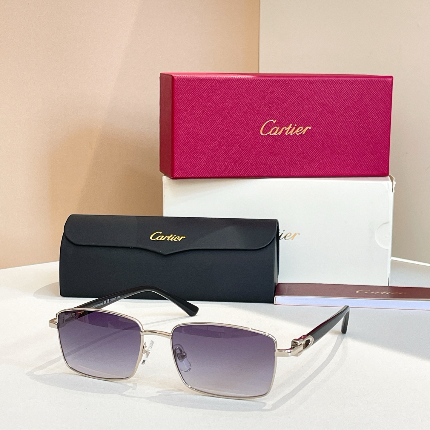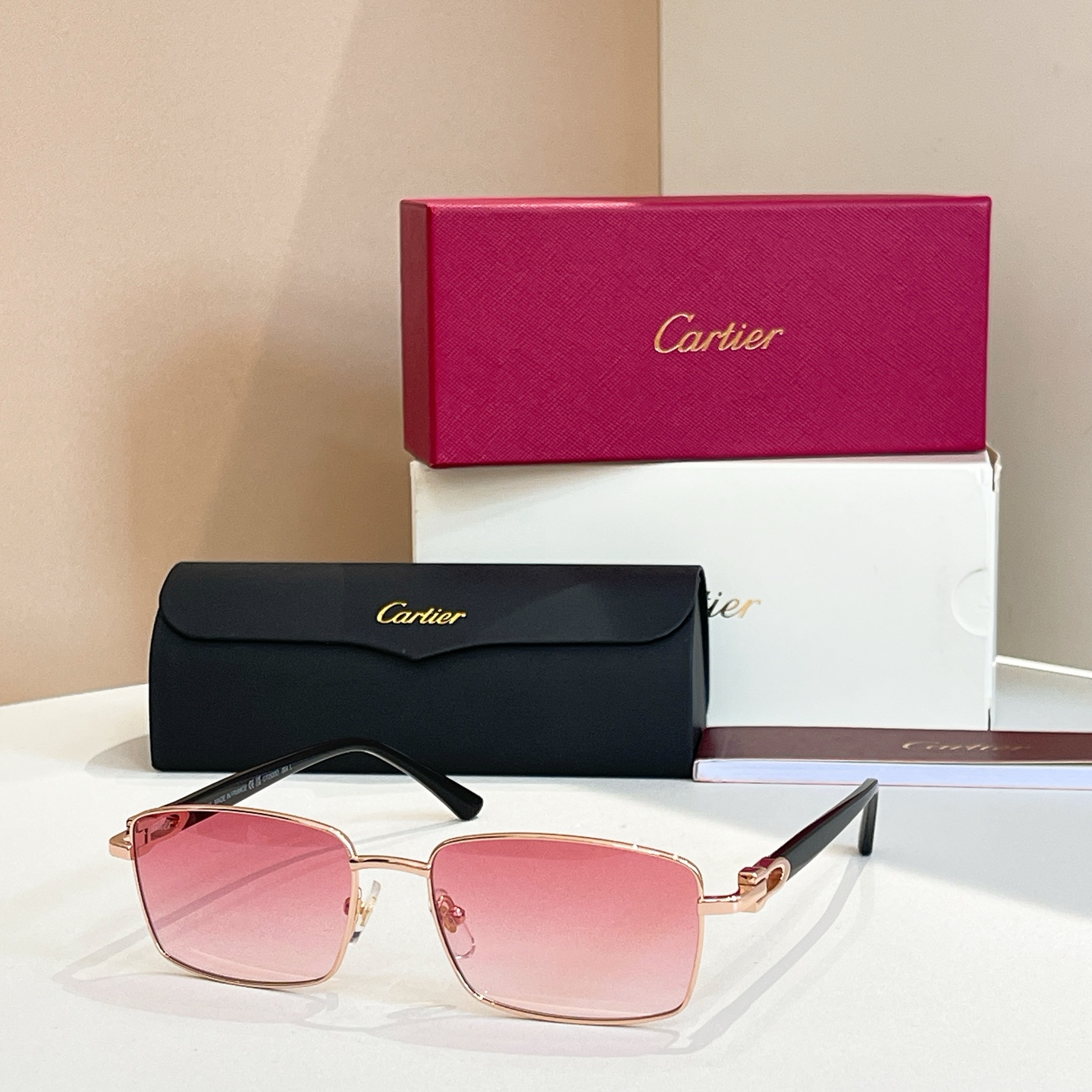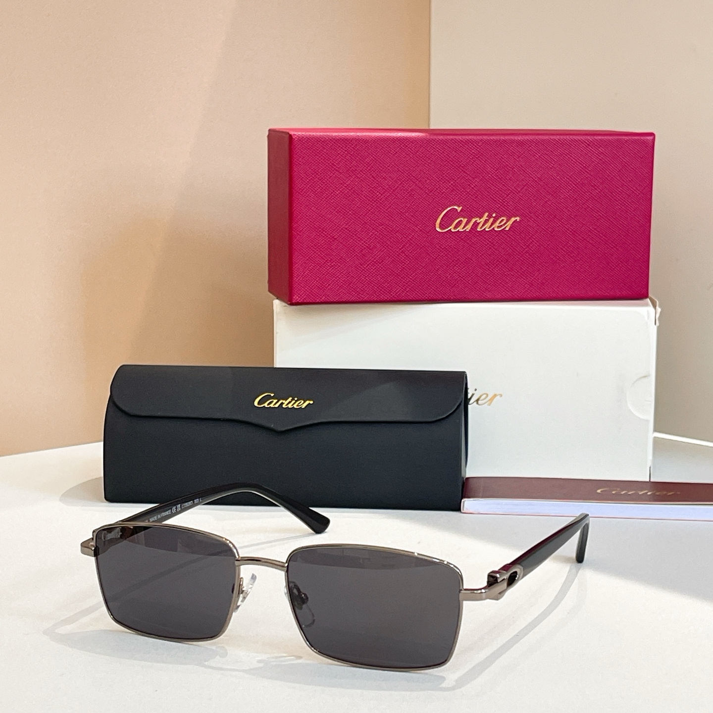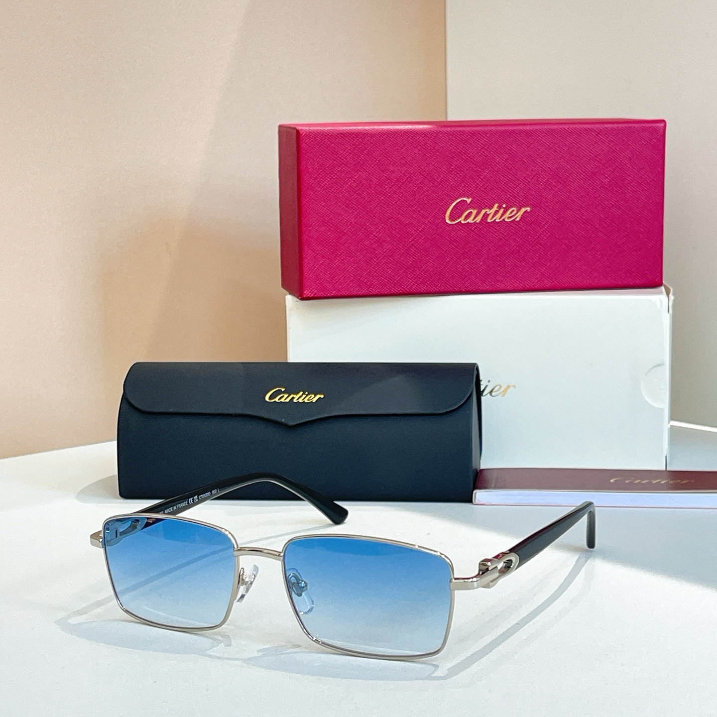 这款太阳眼镜是AAAAA 1:1 质量 (非常棒). 使用了和原版一模一样的材料. 商标部分也保持了和卡地亚/Cartier一样. 图片拍摄是实物太阳眼镜拍摄, 您所收到的实物保证和我们图片一模一样.
