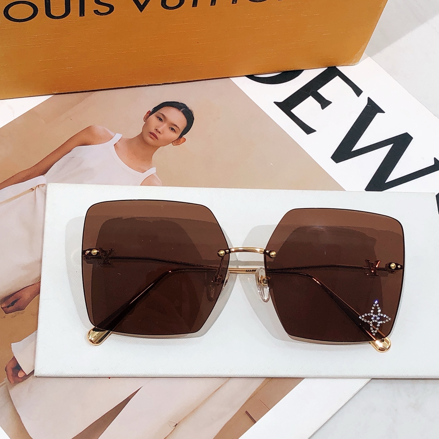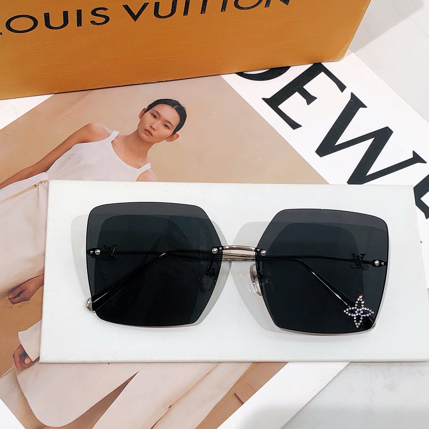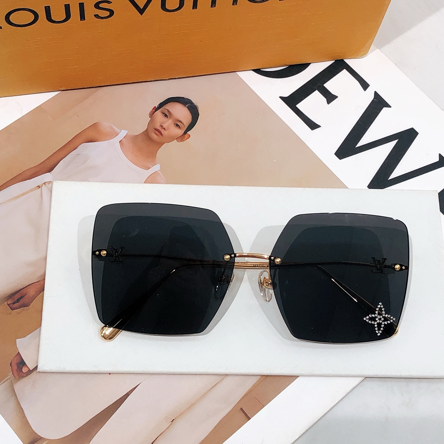 这款太阳眼镜是AAAAA 1:1 质量 (非常棒). 使用了和原版一模一样的材料. 商标部分也保持了和路易威登/Louis Vuitton一样. 图片拍摄是实物太阳眼镜拍摄, 您所收到的实物保证和我们图片一模一样.