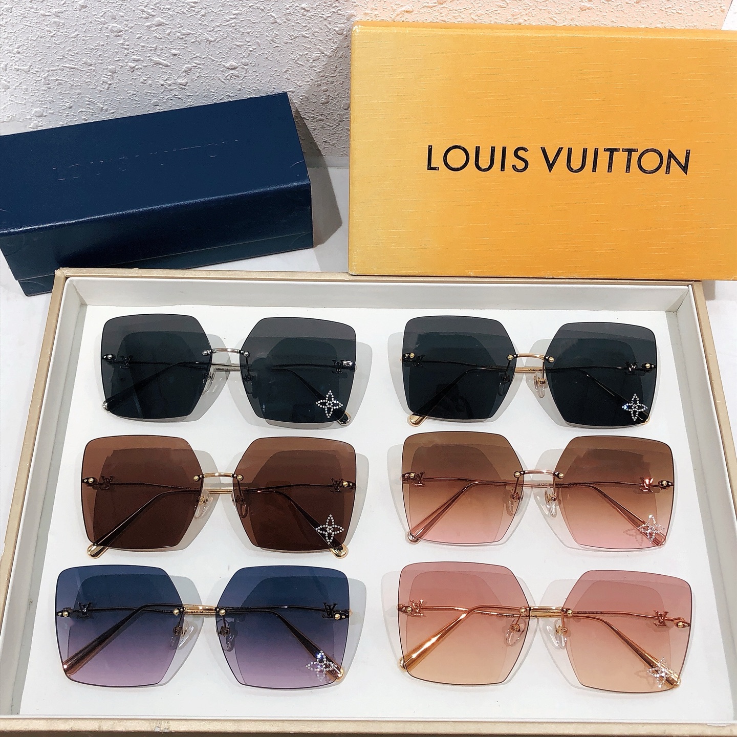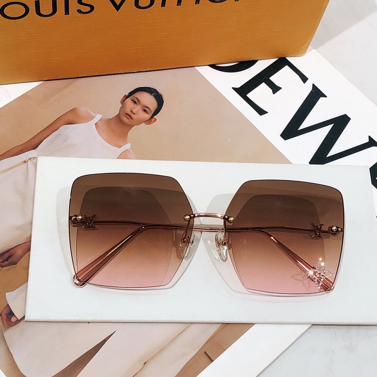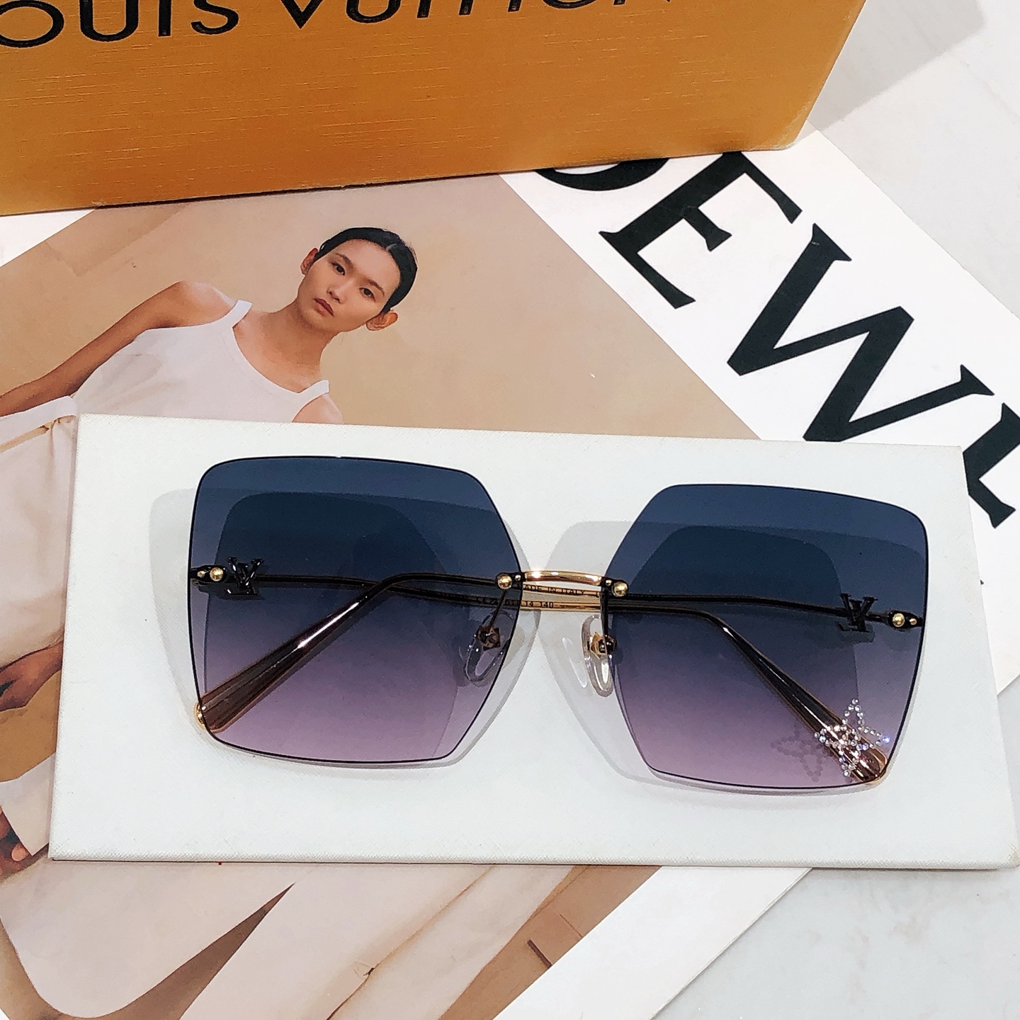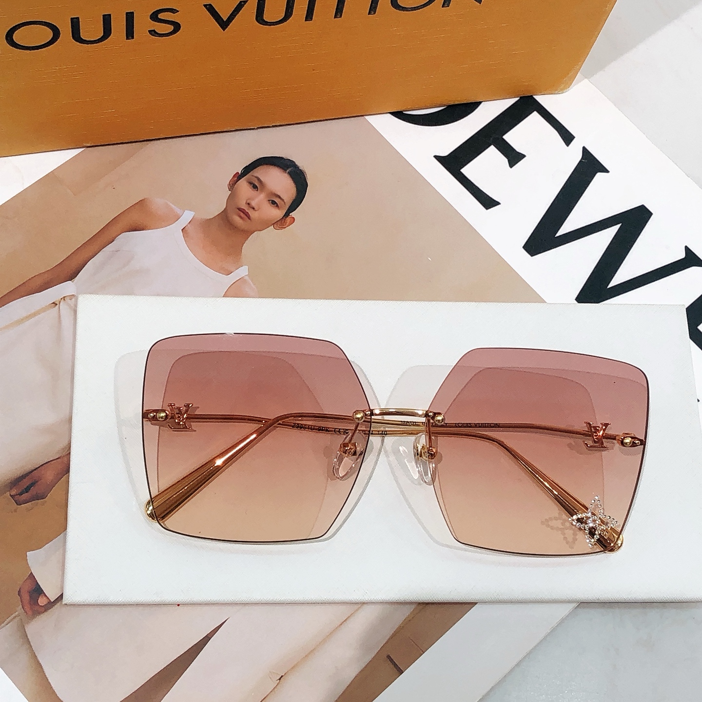 这款太阳眼镜是AAAAA 1:1 质量 (非常棒). 使用了和原版一模一样的材料. 商标部分也保持了和路易威登/Louis Vuitton一样. 图片拍摄是实物太阳眼镜拍摄, 您所收到的实物保证和我们图片一模一样.