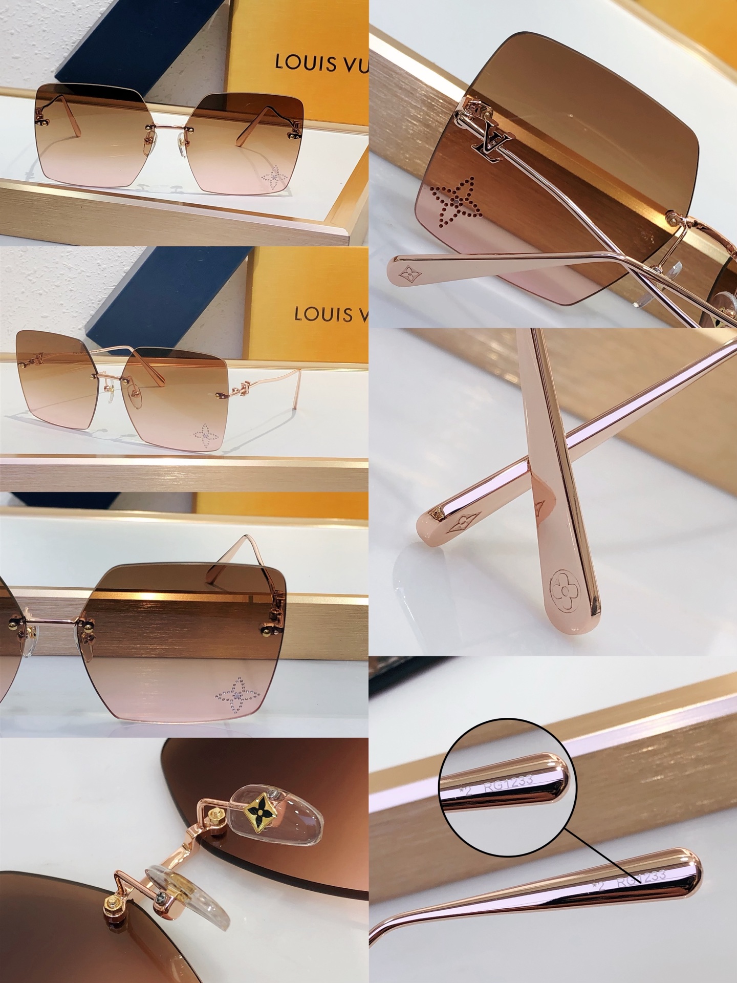 这款太阳眼镜是AAAAA 1:1 质量 (非常棒). 使用了和原版一模一样的材料. 商标部分也保持了和路易威登/Louis Vuitton一样. 图片拍摄是实物太阳眼镜拍摄, 您所收到的实物保证和我们图片一模一样.