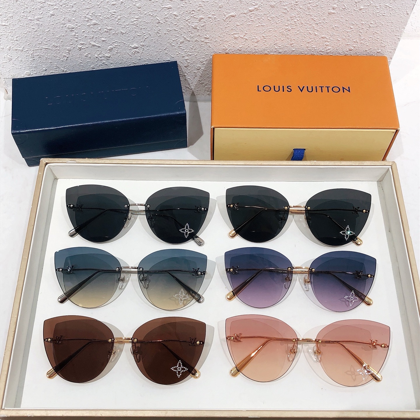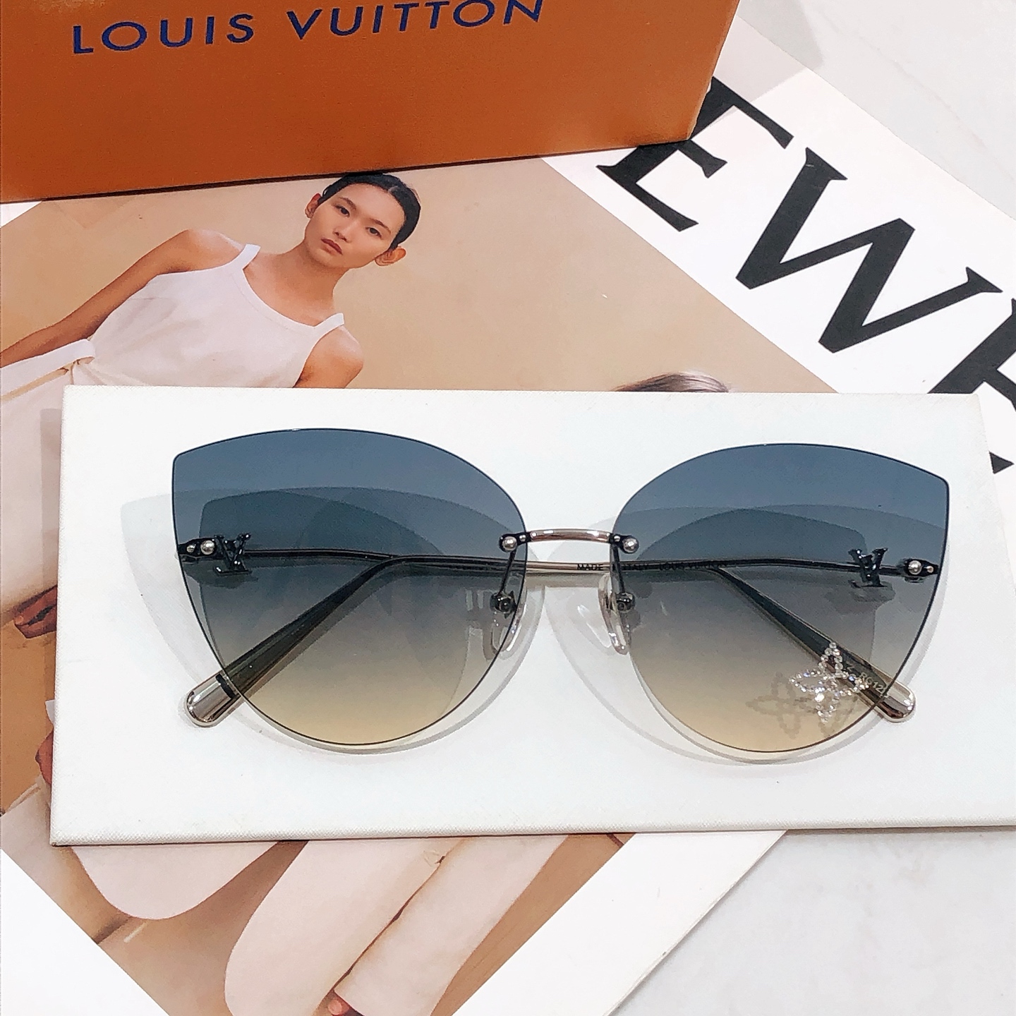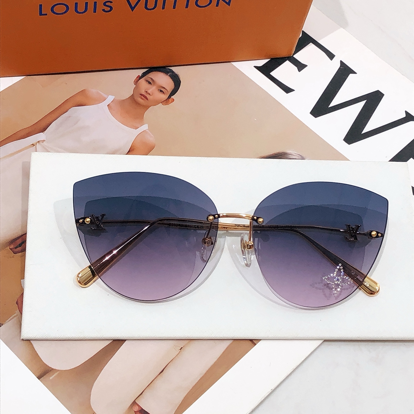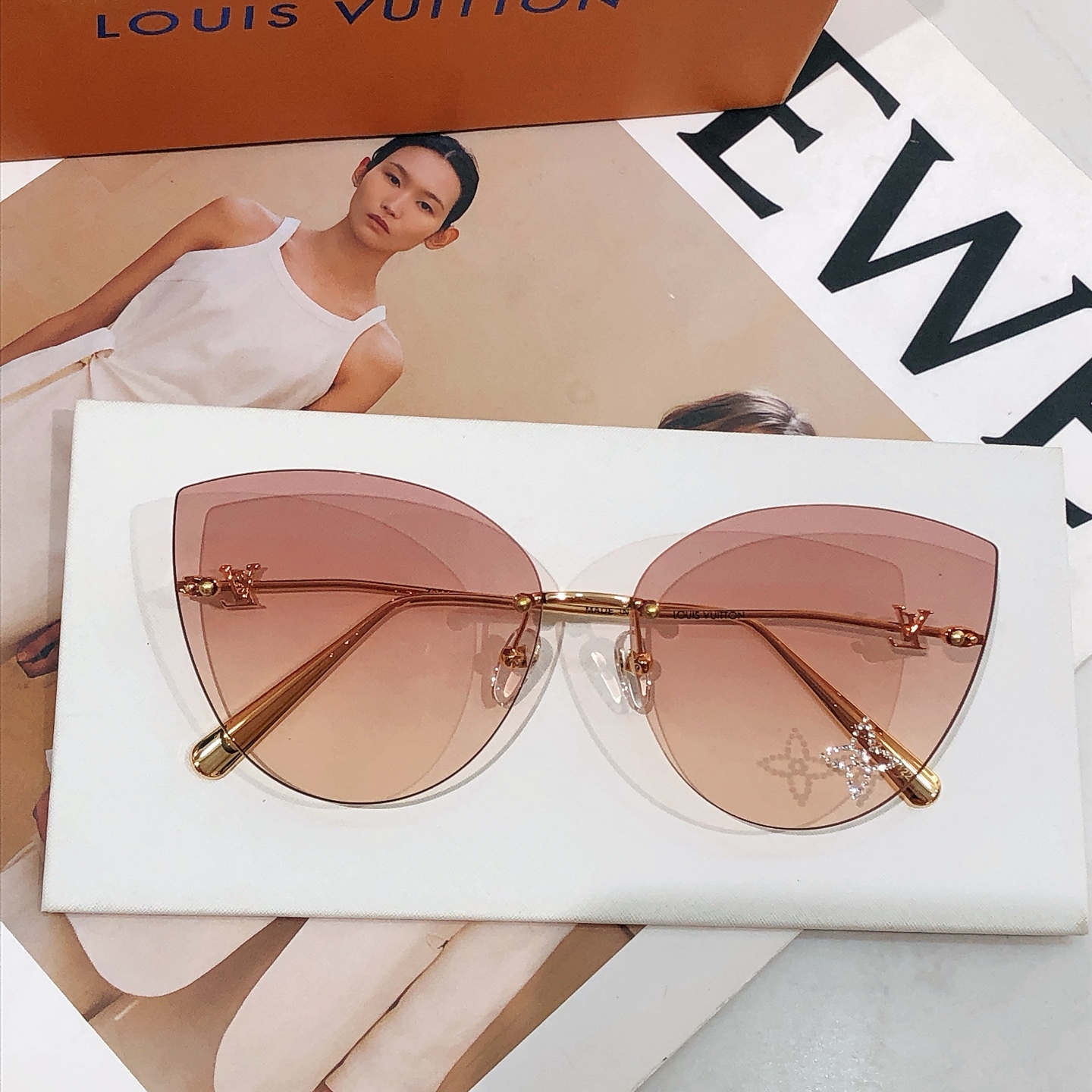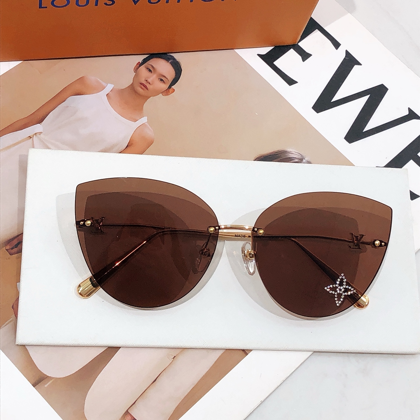 这款太阳眼镜是AAAAA 1:1 质量 (非常棒). 使用了和原版一模一样的材料. 商标部分也保持了和路易威登/Louis Vuitton一样. 图片拍摄是实物太阳眼镜拍摄, 您所收到的实物保证和我们图片一模一样.