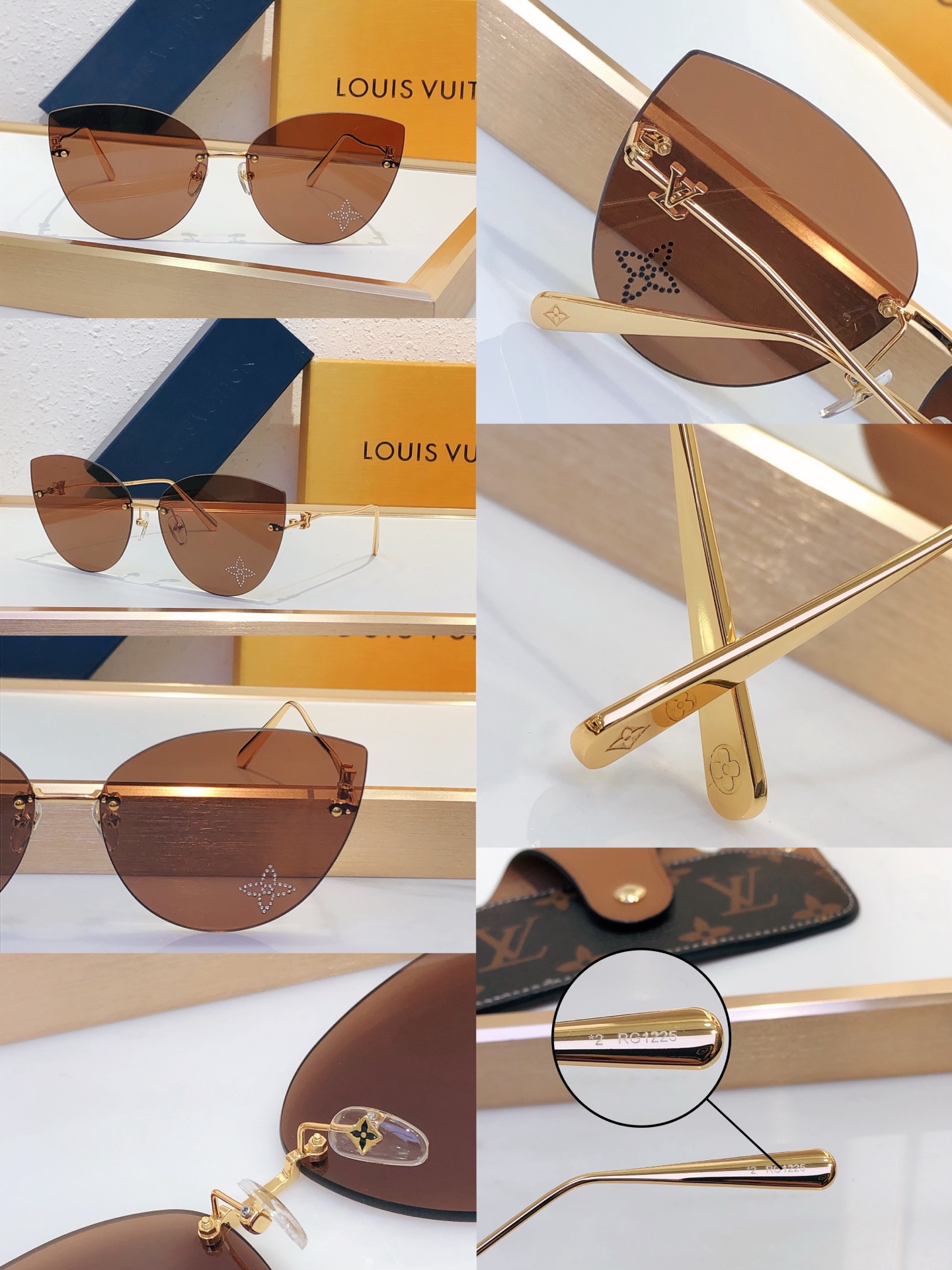 这款太阳眼镜是AAAAA 1:1 质量 (非常棒). 使用了和原版一模一样的材料. 商标部分也保持了和路易威登/Louis Vuitton一样. 图片拍摄是实物太阳眼镜拍摄, 您所收到的实物保证和我们图片一模一样.