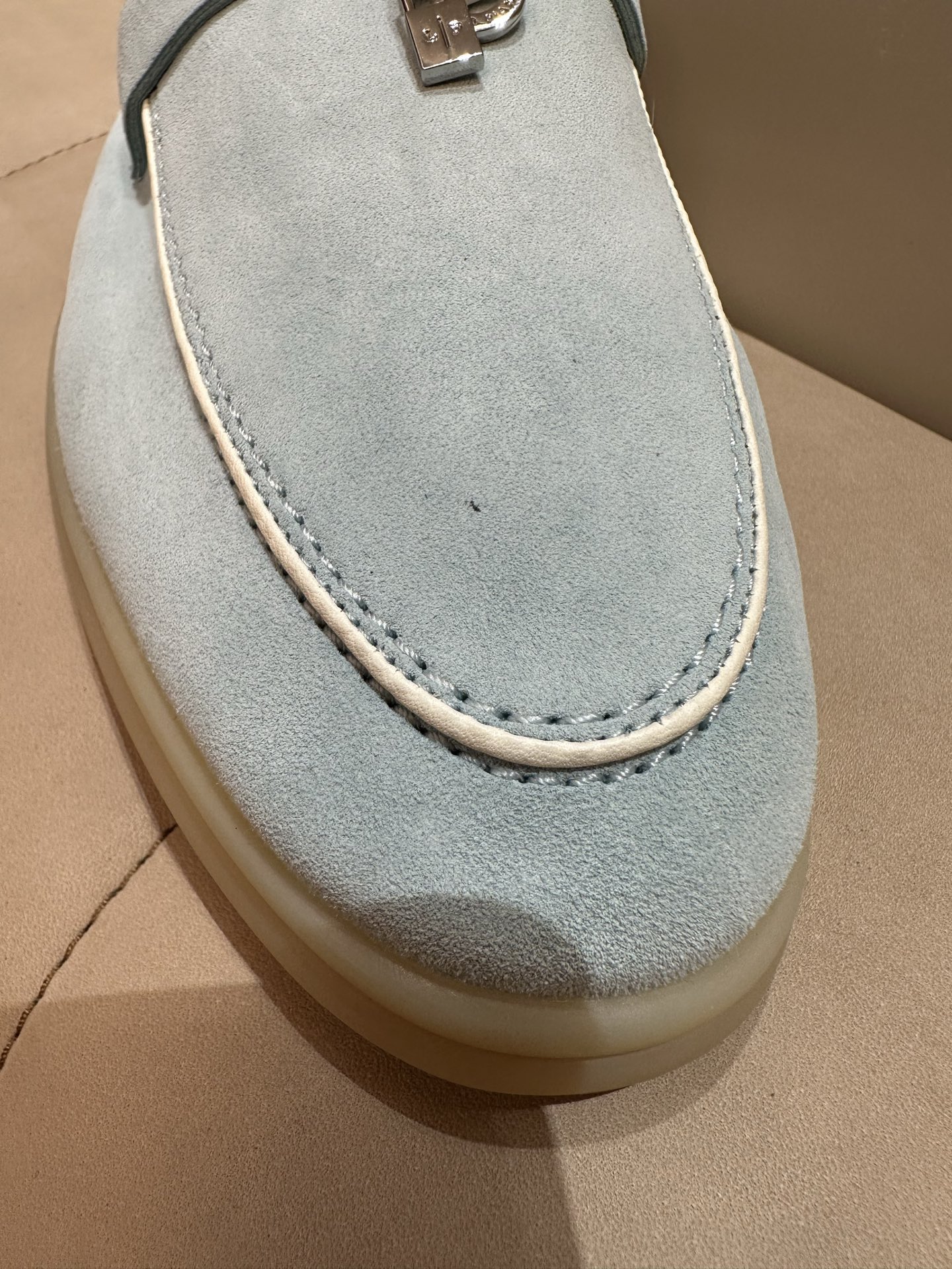 这款鞋子是AAAAA 1:1 质量 (非常棒). 使用了和原版一模一样的材料. 商标部分也保持了和洛罗皮亚纳/Loro Piana一样. 图片拍摄是实物鞋子拍摄, 您所收到的实物保证和我们图片一模一样.
