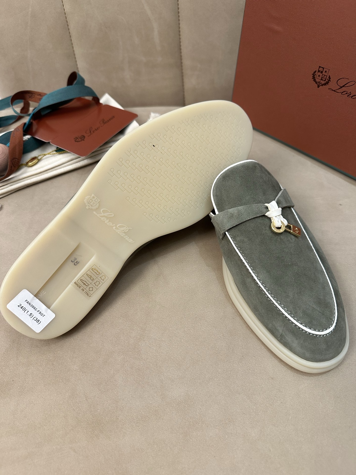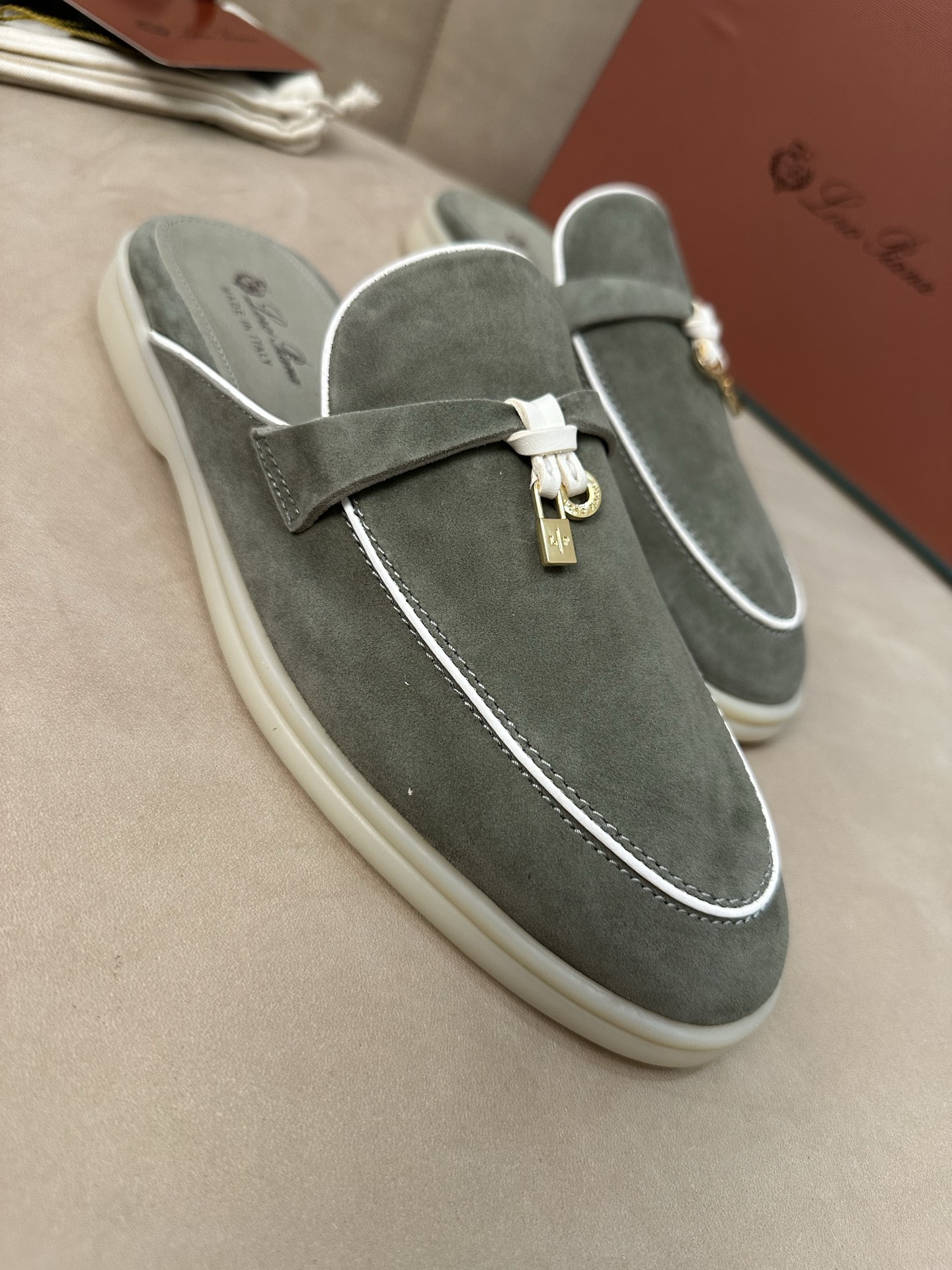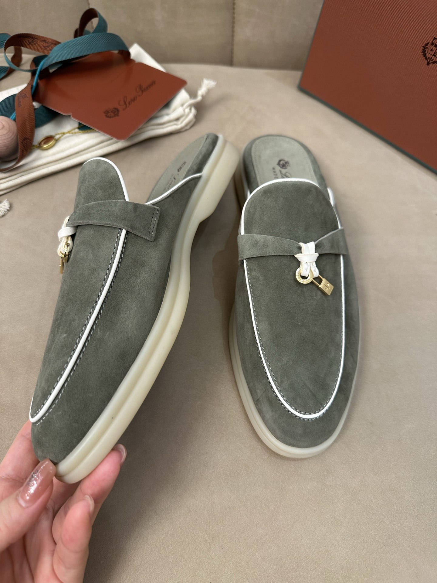 这款鞋子是AAAAA 1:1 质量 (非常棒). 使用了和原版一模一样的材料. 商标部分也保持了和洛罗皮亚纳/Loro Piana一样. 图片拍摄是实物鞋子拍摄, 您所收到的实物保证和我们图片一模一样.