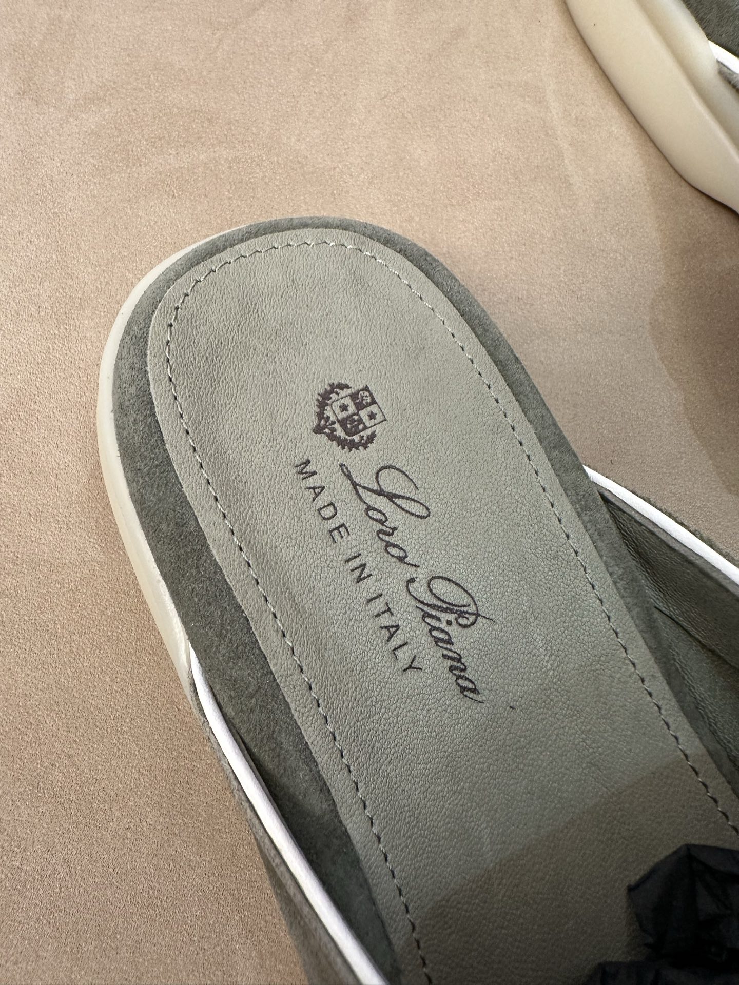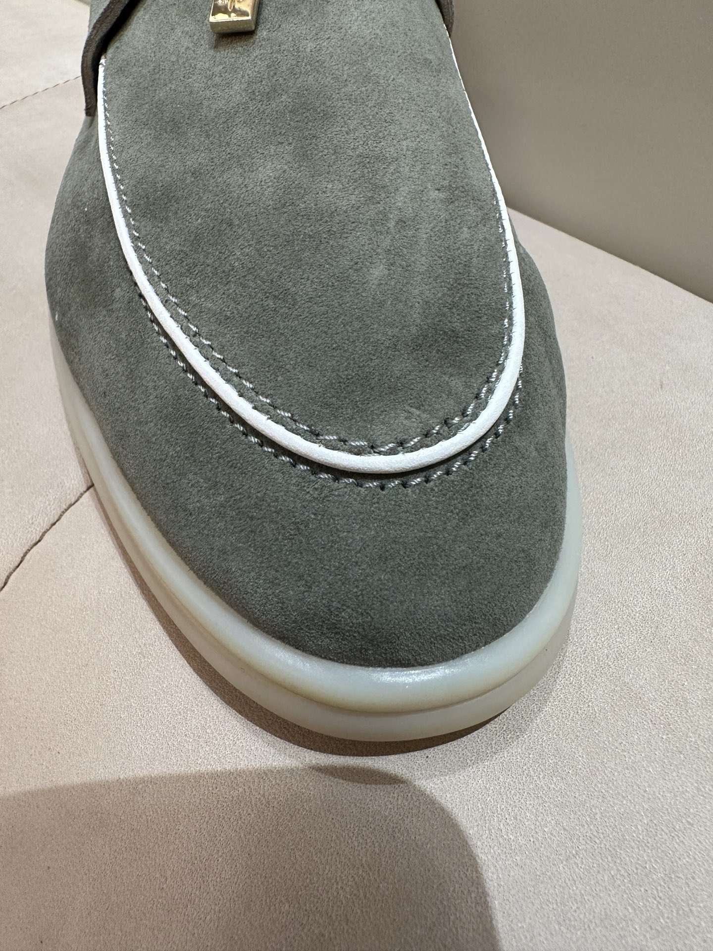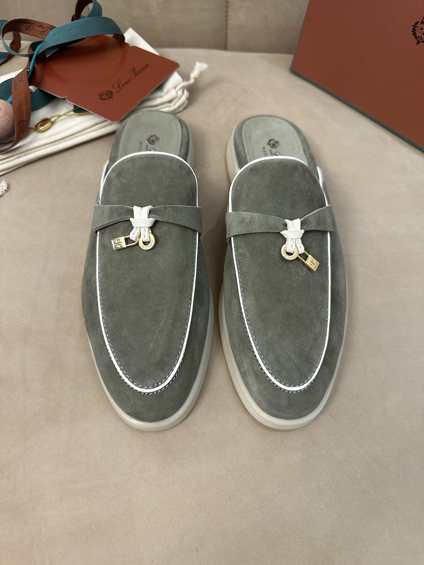 这款鞋子是AAAAA 1:1 质量 (非常棒). 使用了和原版一模一样的材料. 商标部分也保持了和洛罗皮亚纳/Loro Piana一样. 图片拍摄是实物鞋子拍摄, 您所收到的实物保证和我们图片一模一样.