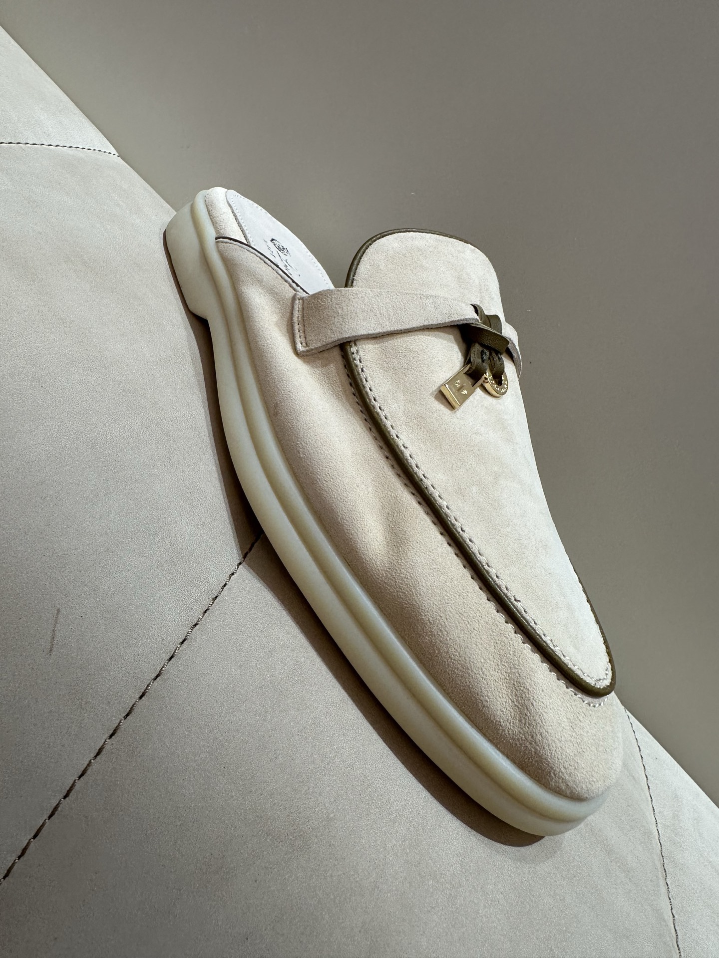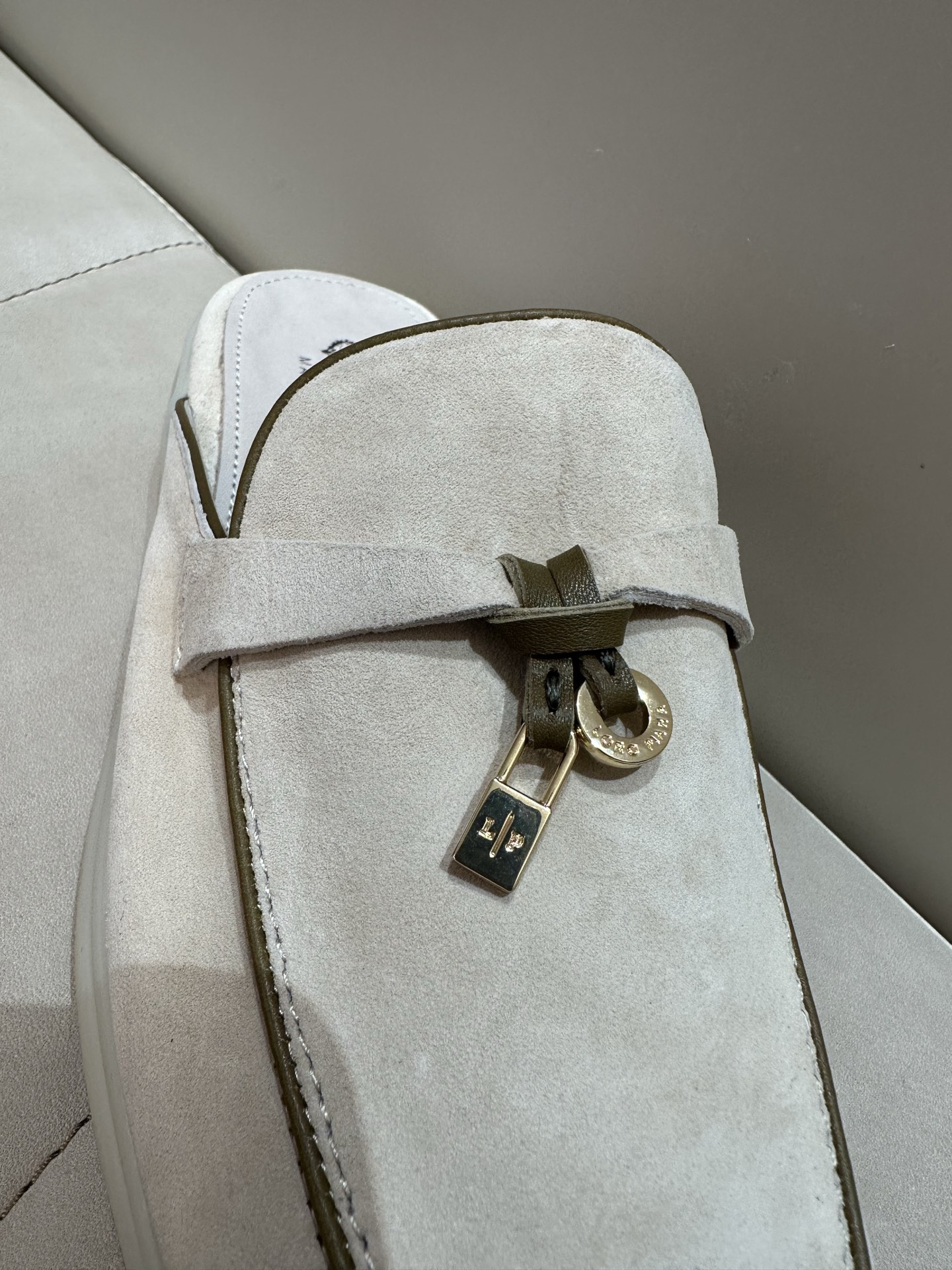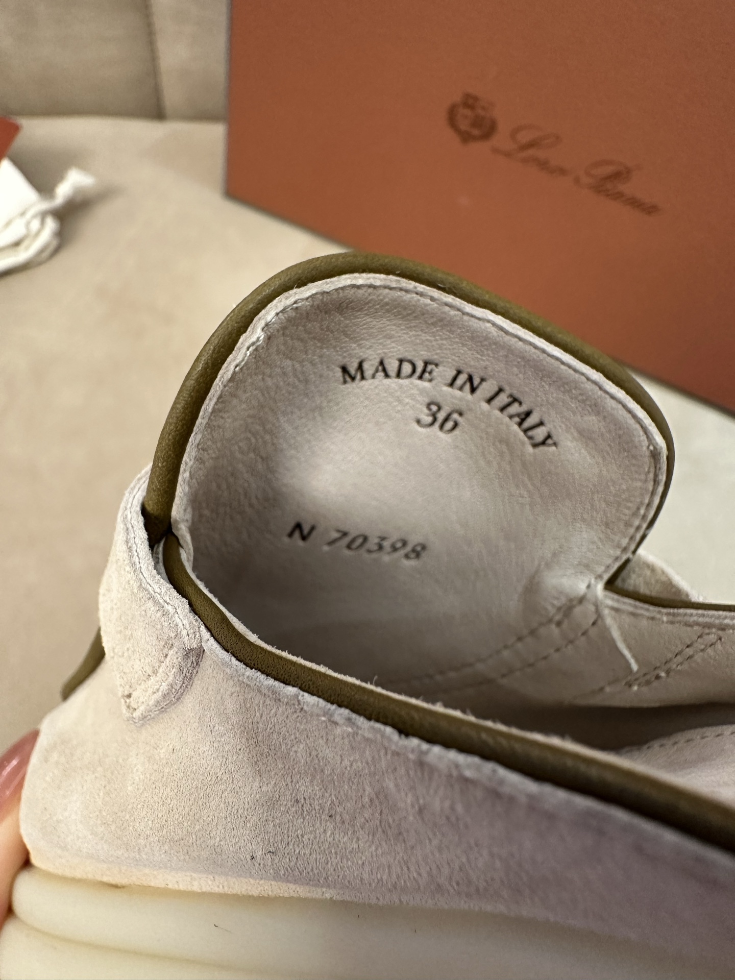 这款鞋子是AAAAA 1:1 质量 (非常棒). 使用了和原版一模一样的材料. 商标部分也保持了和洛罗皮亚纳/Loro Piana一样. 图片拍摄是实物鞋子拍摄, 您所收到的实物保证和我们图片一模一样.