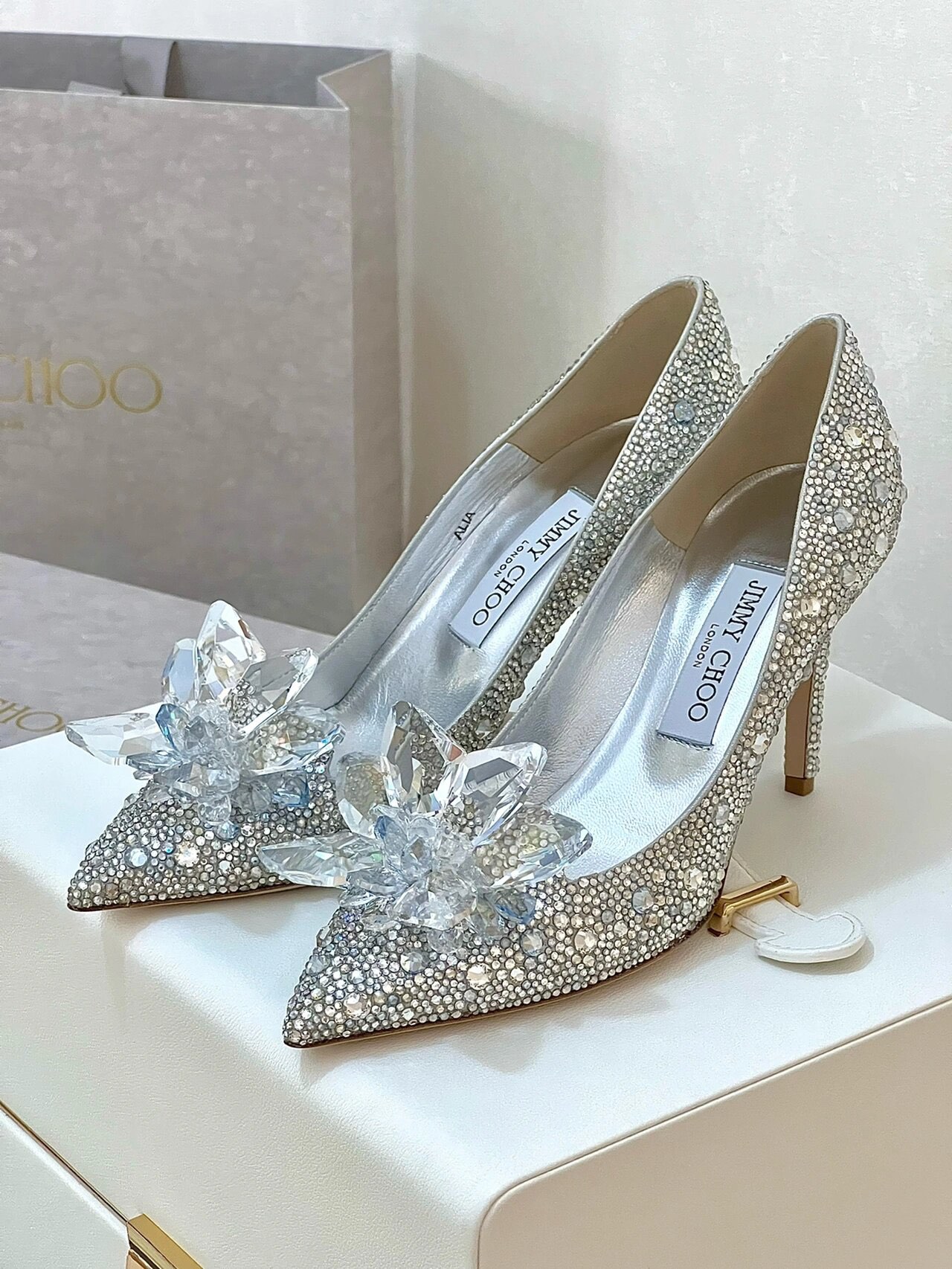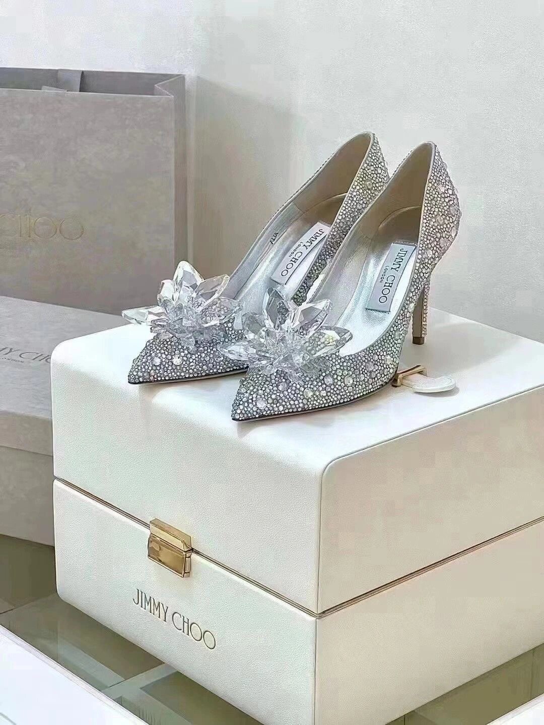 这款鞋子是AAAAA 1:1 质量 (非常棒). 使用了和原版一模一样的材料. 商标部分也保持了和吉米乔/JIMMY CHOO一样. 图片拍摄是实物鞋子拍摄, 您所收到的实物保证和我们图片一模一样.