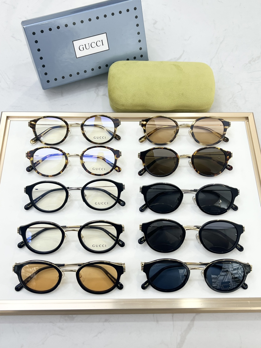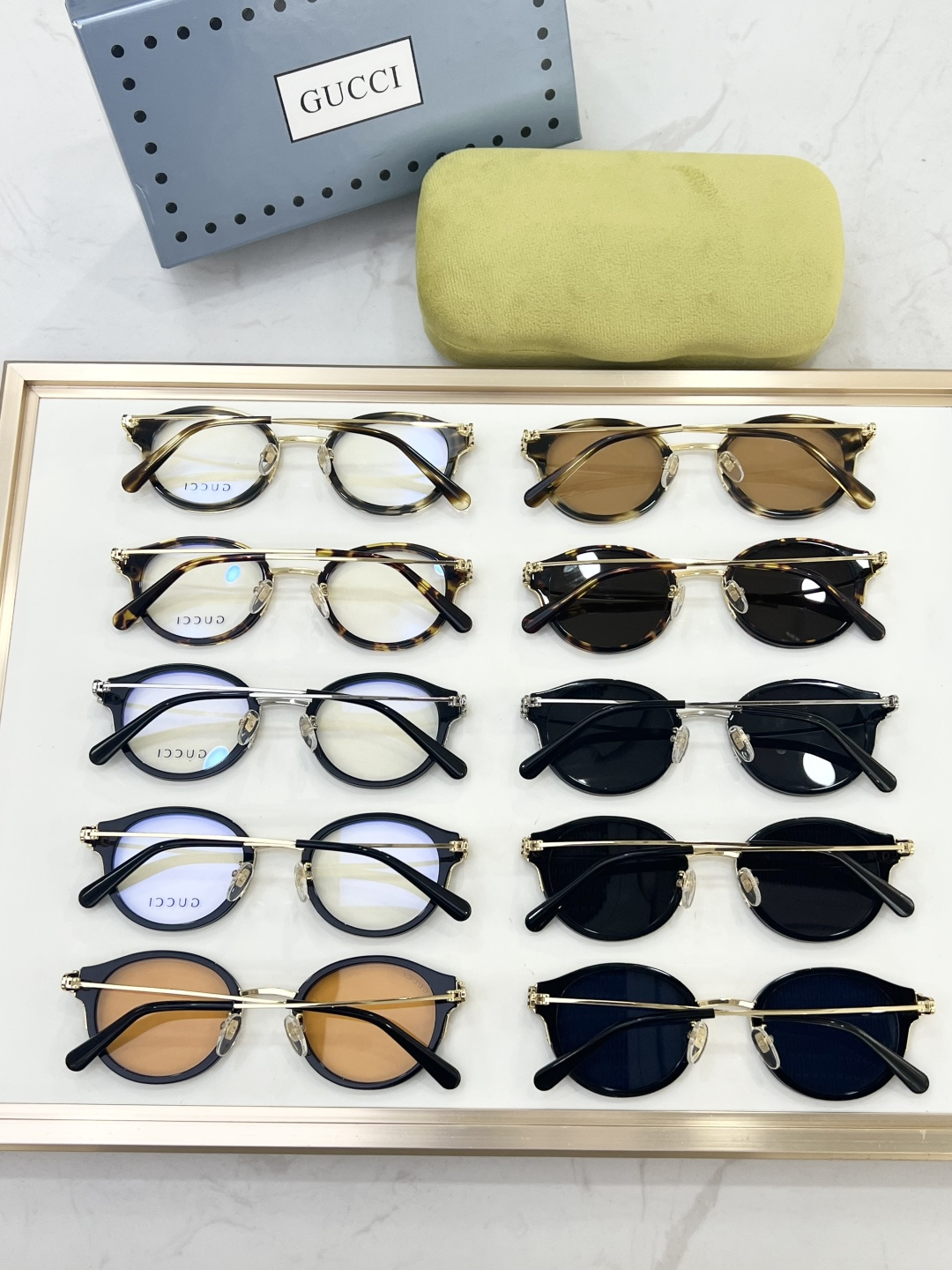 这款太阳眼镜是AAAAA 1:1 质量 (非常棒). 使用了和原版一模一样的材料. 商标部分也保持了和古奇/Gucci一样. 图片拍摄是实物太阳眼镜拍摄, 您所收到的实物保证和我们图片一模一样.