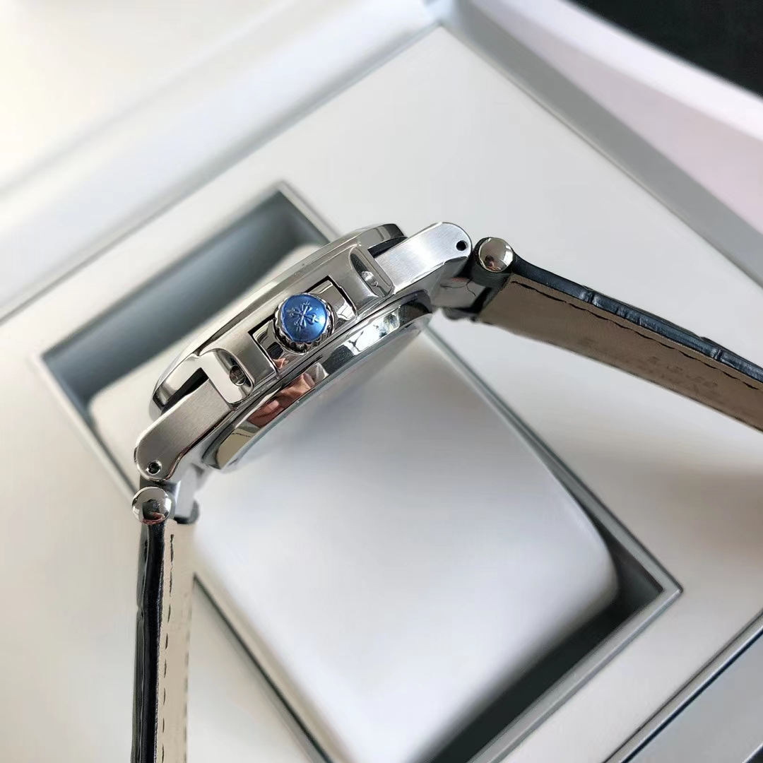 这款手表是AAAAA 1:1 质量 (非常棒). 使用了和原版一模一样的材料. 商标部分也保持了和百达翡丽/Patek Philippe一样. 图片拍摄是实物手表拍摄, 您所收到的实物保证和我们图片一模一样.