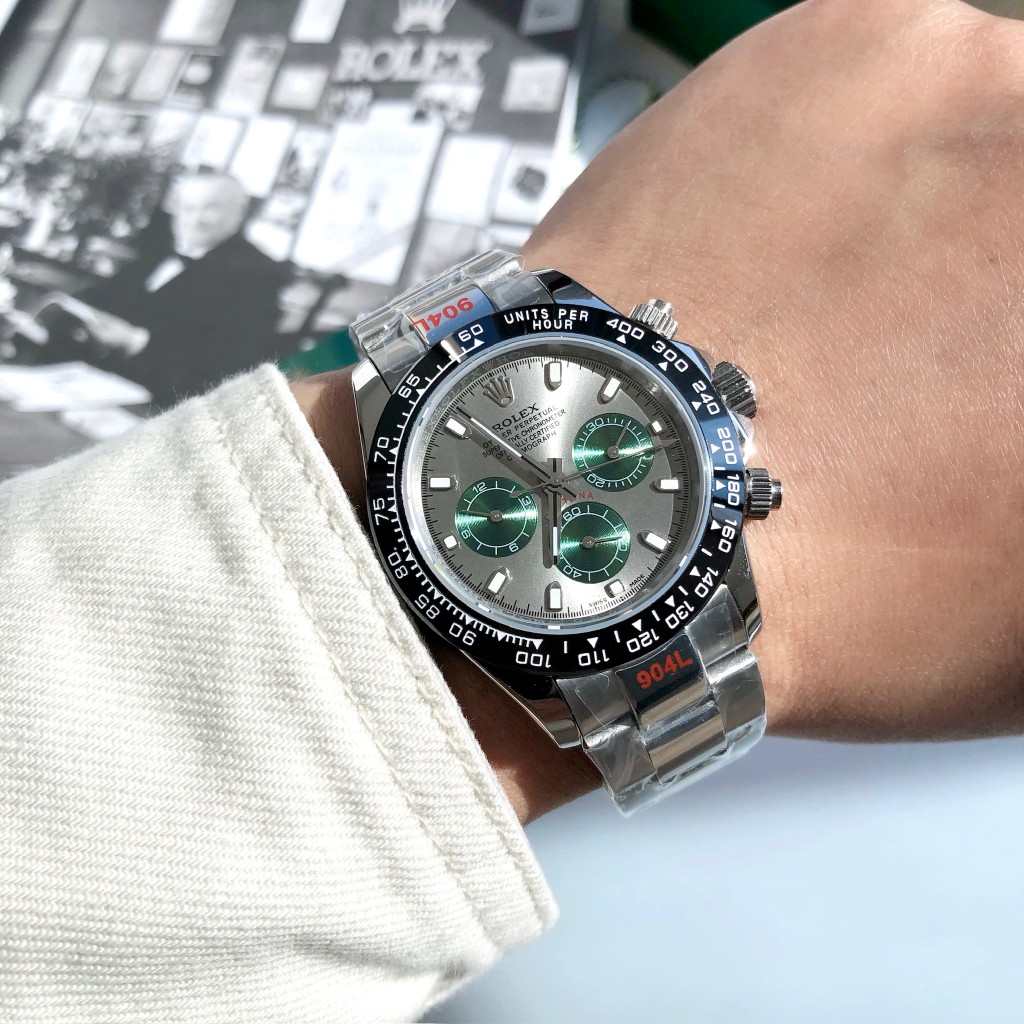 这款手表是AAAAA 1:1 质量 (非常棒). 使用了和原版一模一样的材料. 商标部分也保持了和劳力士/Rolex一样. 图片拍摄是实物手表拍摄, 您所收到的实物保证和我们图片一模一样.